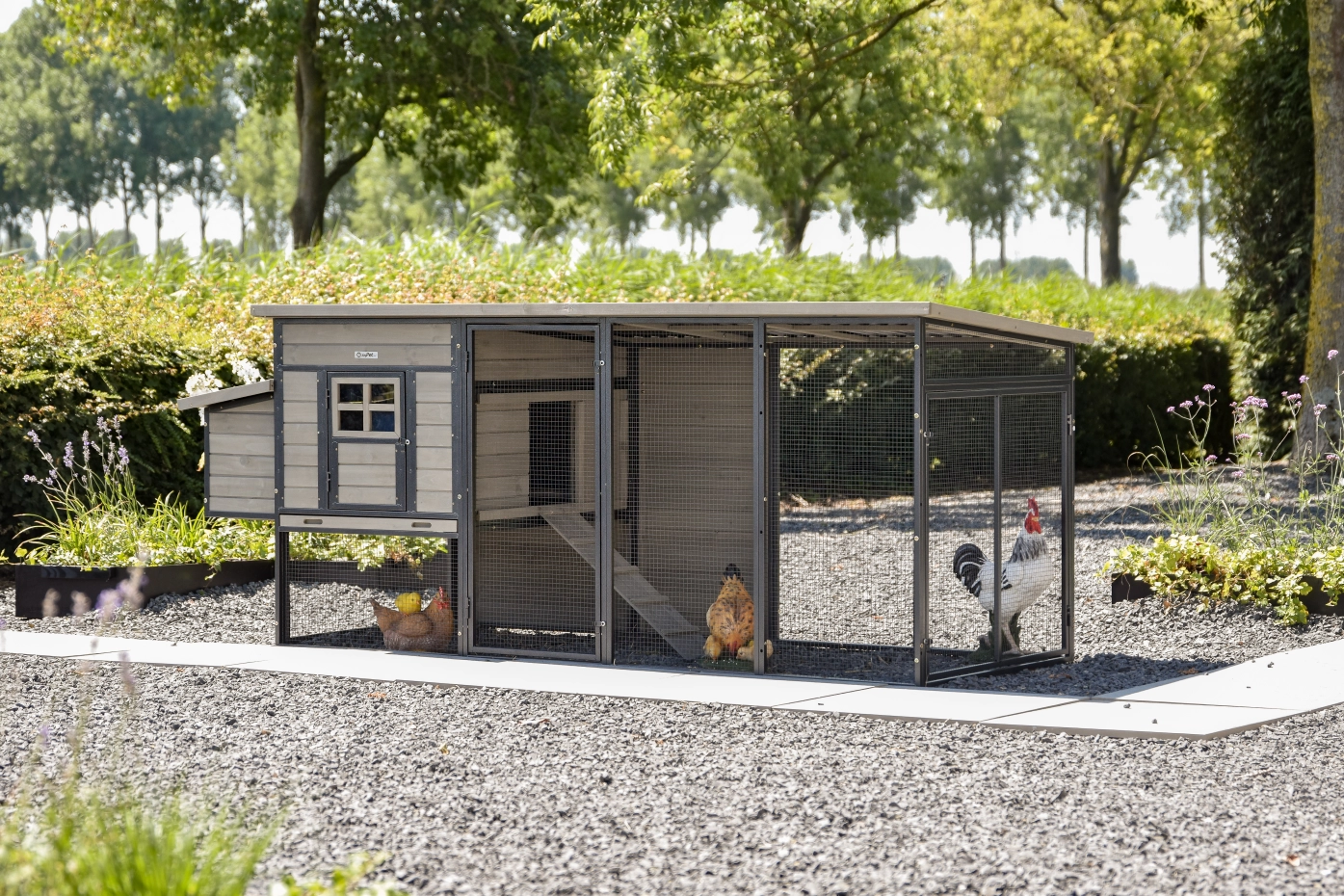 Hühnerstall Judy ist sehr geräumig und praktisch. Er bietet Ihren Hühnern ein komfortables Zuhause und verfügt über einen großen Schlafbereich für zusätzlichen Schutz. Mit einer praktischen Reinigungsschublade, einem geräumigen Legenest und einem großen Auslauf ist er ideal für 4 große oder bis zu 9 kleine Hühner.