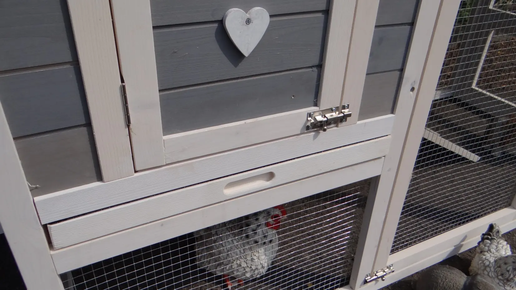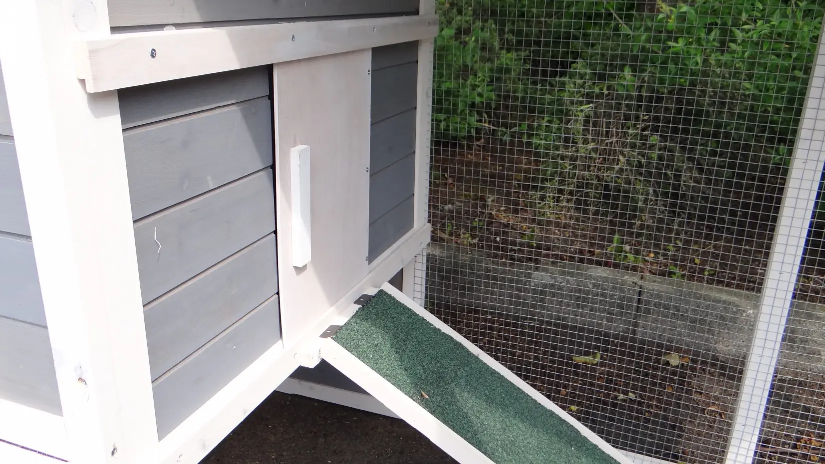 - Die Türen dieses Kaninchenstalls sind mit doppelten Schieberiegeln ausgestattet