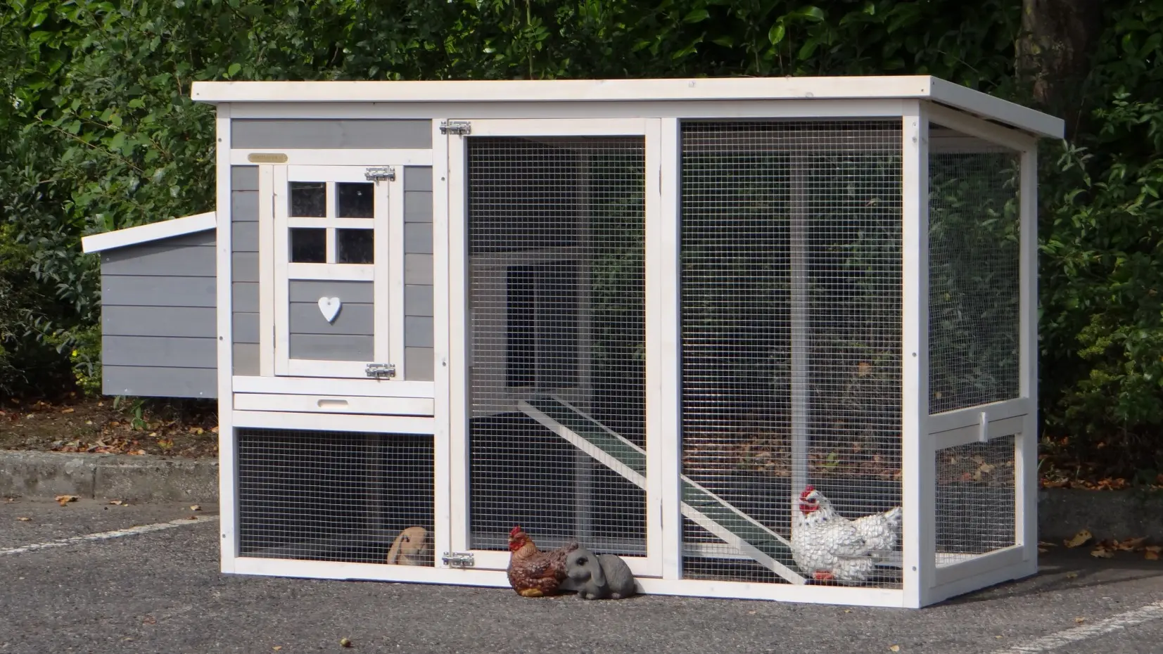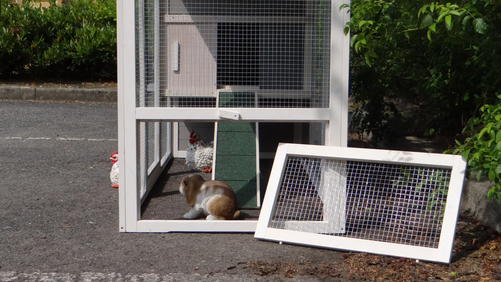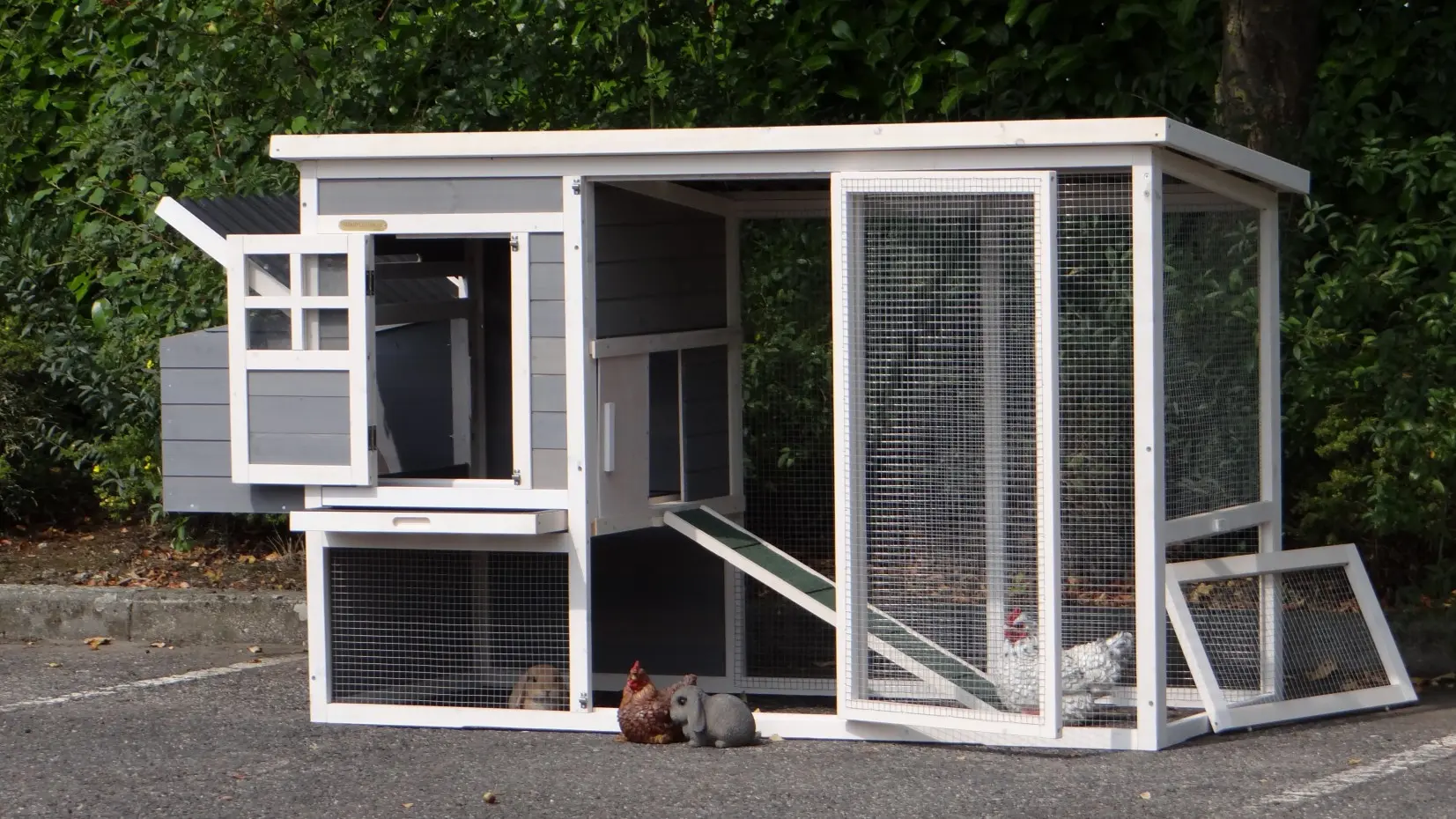 - Das Dach dieses Kaninchenstalls ist von Kunststof.