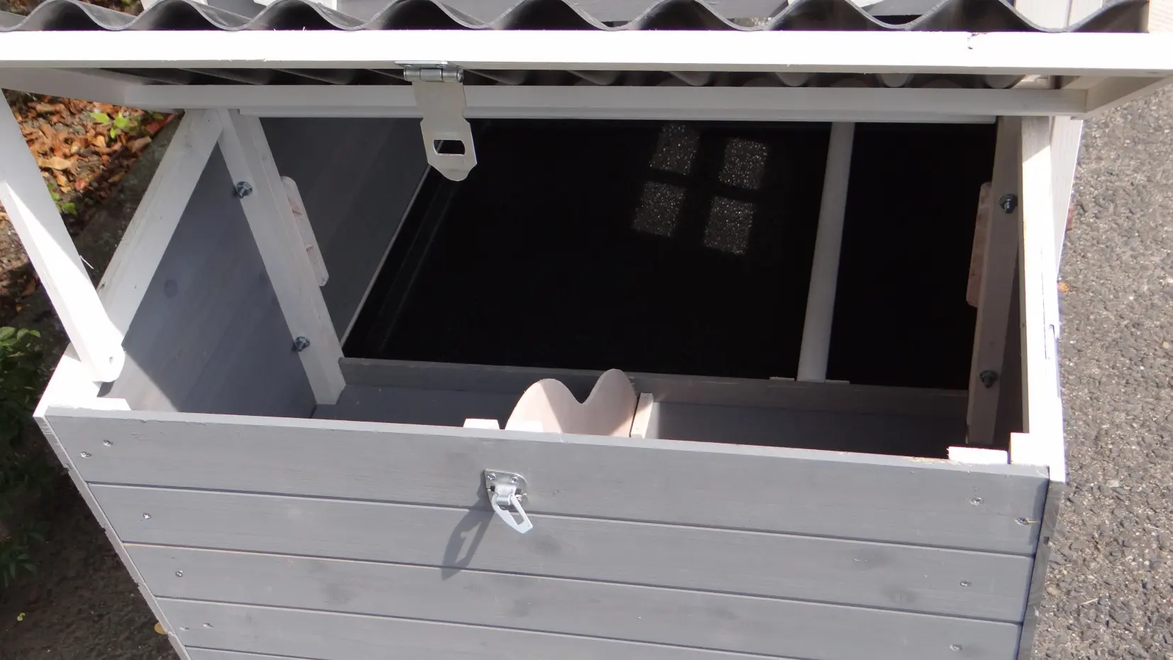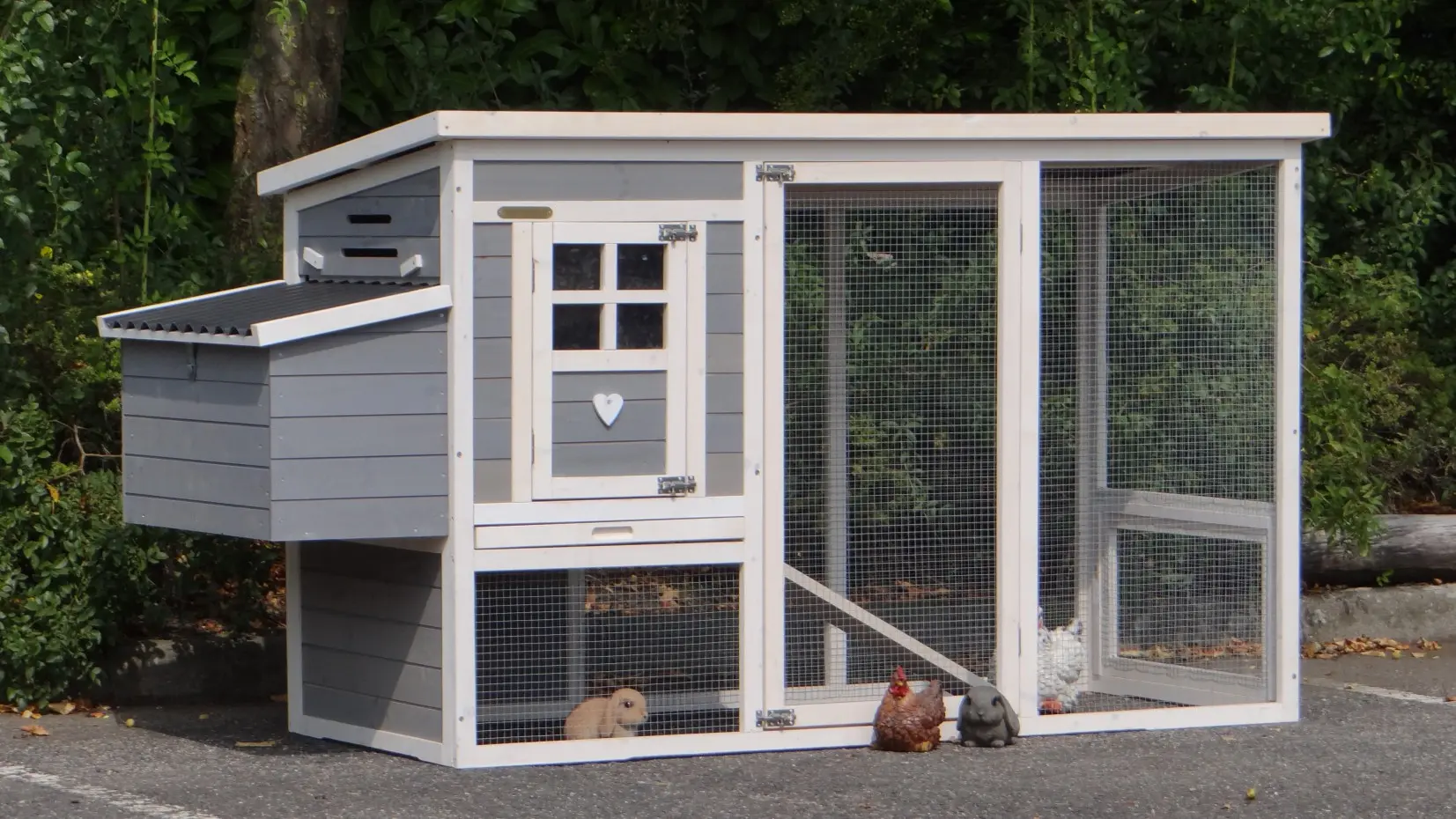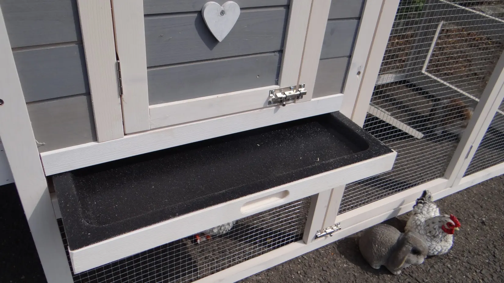- Das Dach dieses Kaninchenstalls ist von Kunststof.