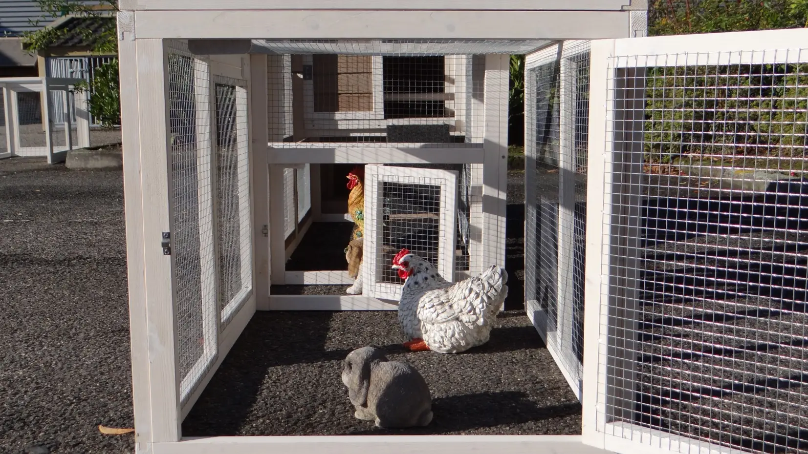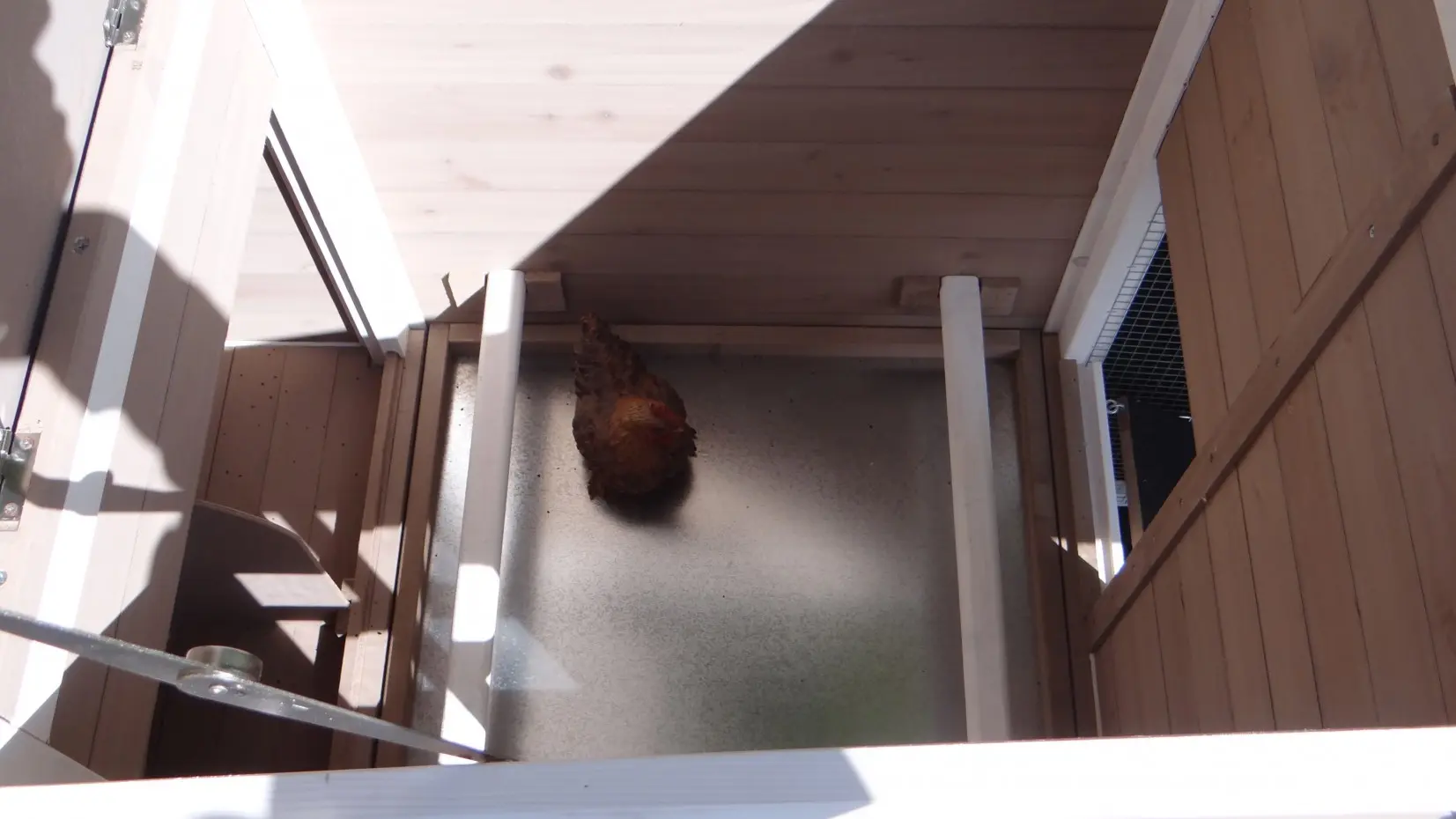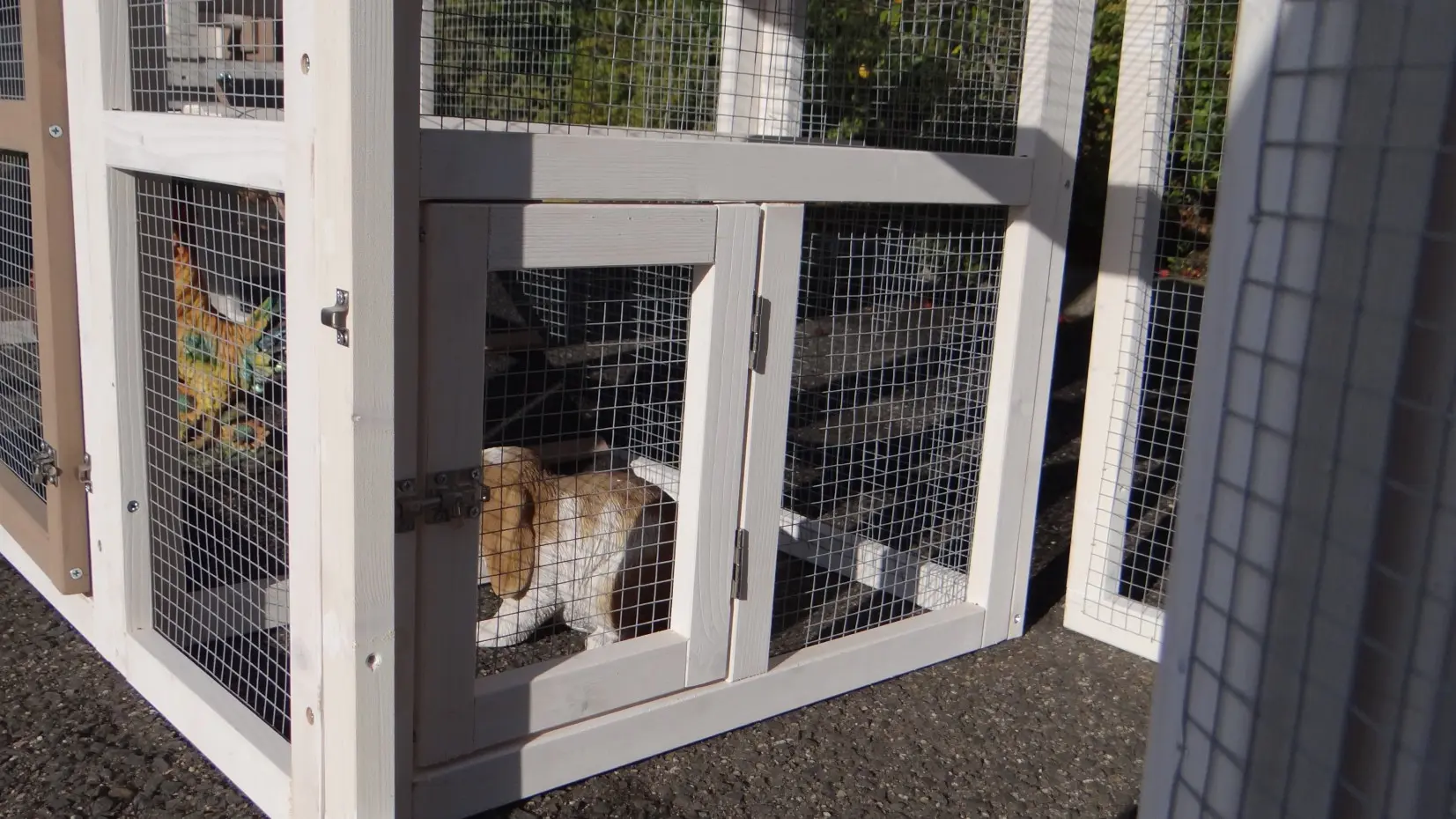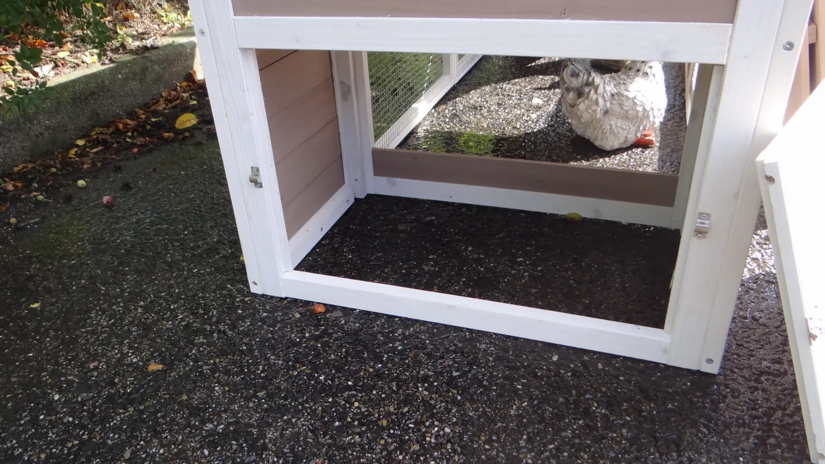 - Der Auslauf hat ein Dach aus Gitter (ca. 12x12mm)