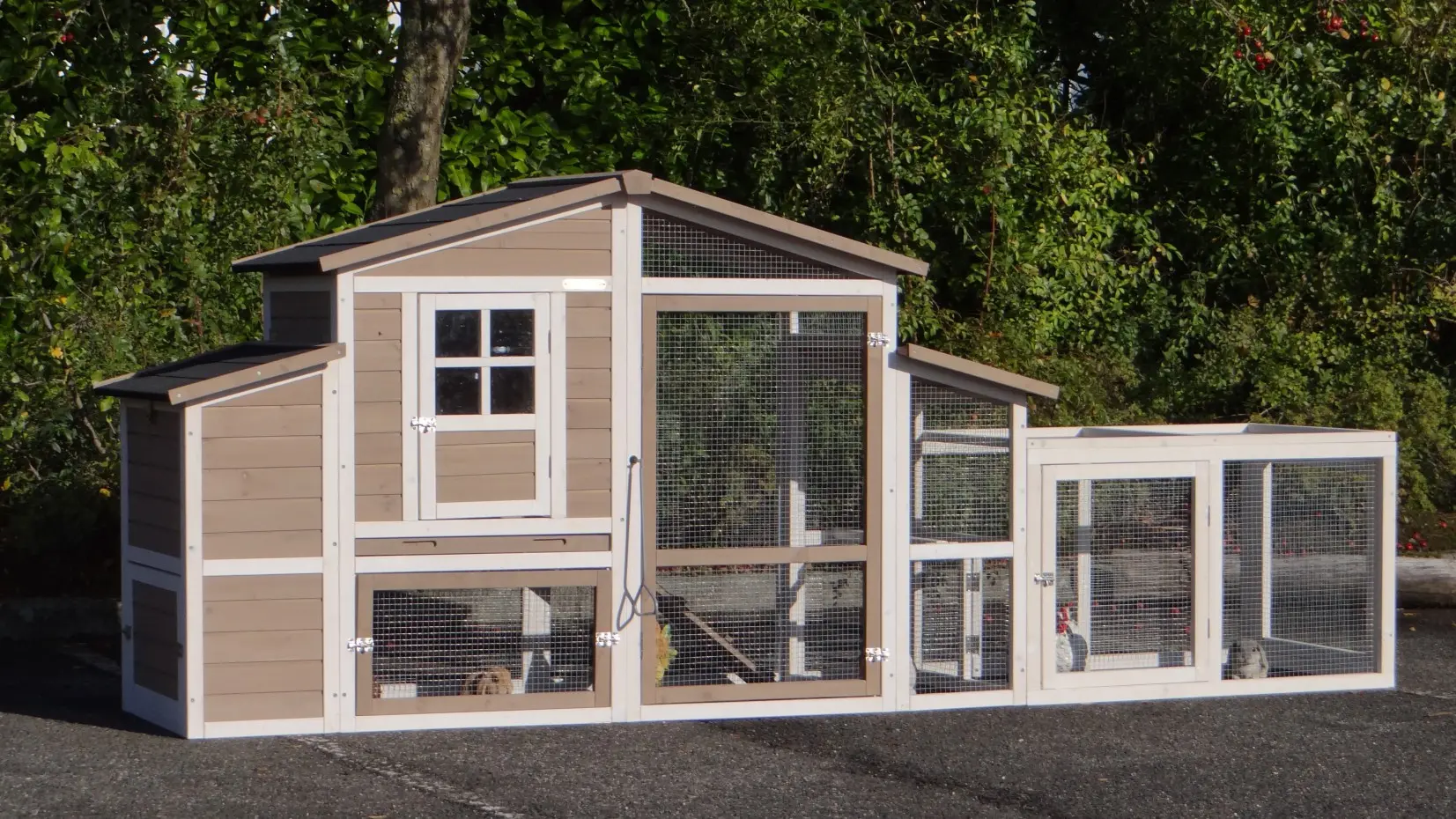 - Das Dach dieses Kaninchenstalls ist mit Dachpappe versehen.