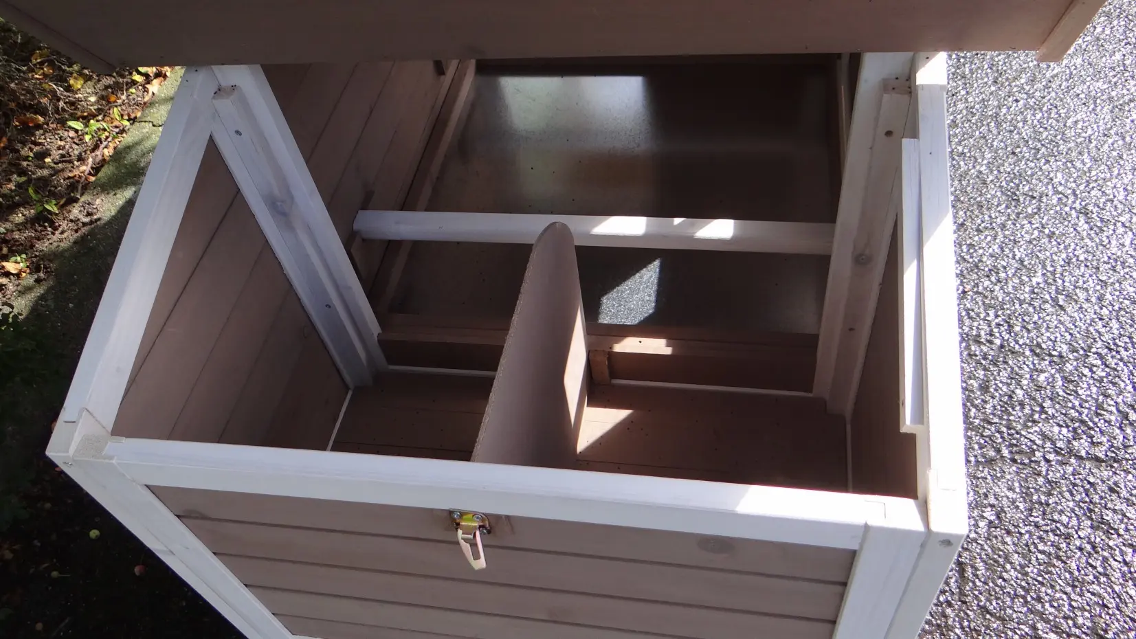 Hühnerstall Leah ist ein schöner Stall mit einem Legenest. Sie können diesen Hühnerstall leicht mit einem oder mehreren Anbauausläufen Ambiance Small erweitern. Mit der Schiebetür schützen Sie die Hühner nachts besser vor Raubtieren. Die Schublade erleichtert die Reinigung sehr! Unter dem Schlafbereich des Hühnerstalls Leah haben die Hühner Platz, um sich etwas mehr geschützt aufzuhalten.