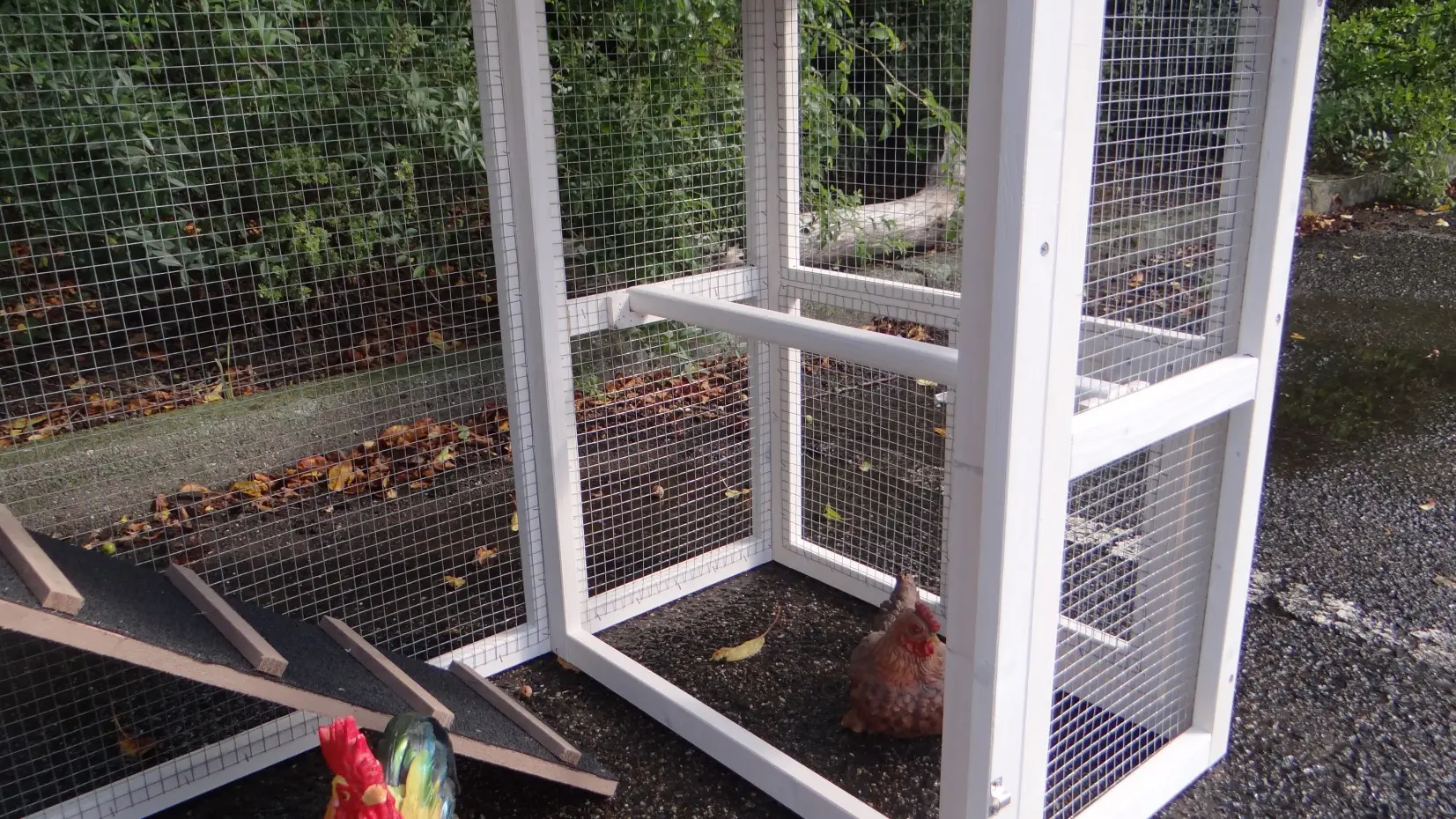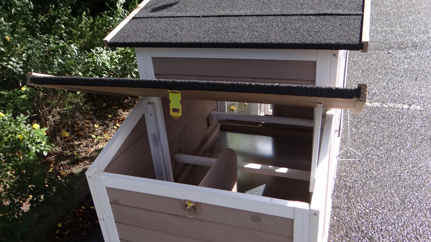 - Das Dach dieses Kaninchenstalls ist mit Dachpappe versehen.