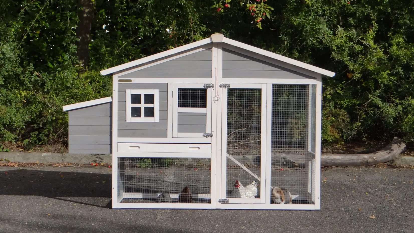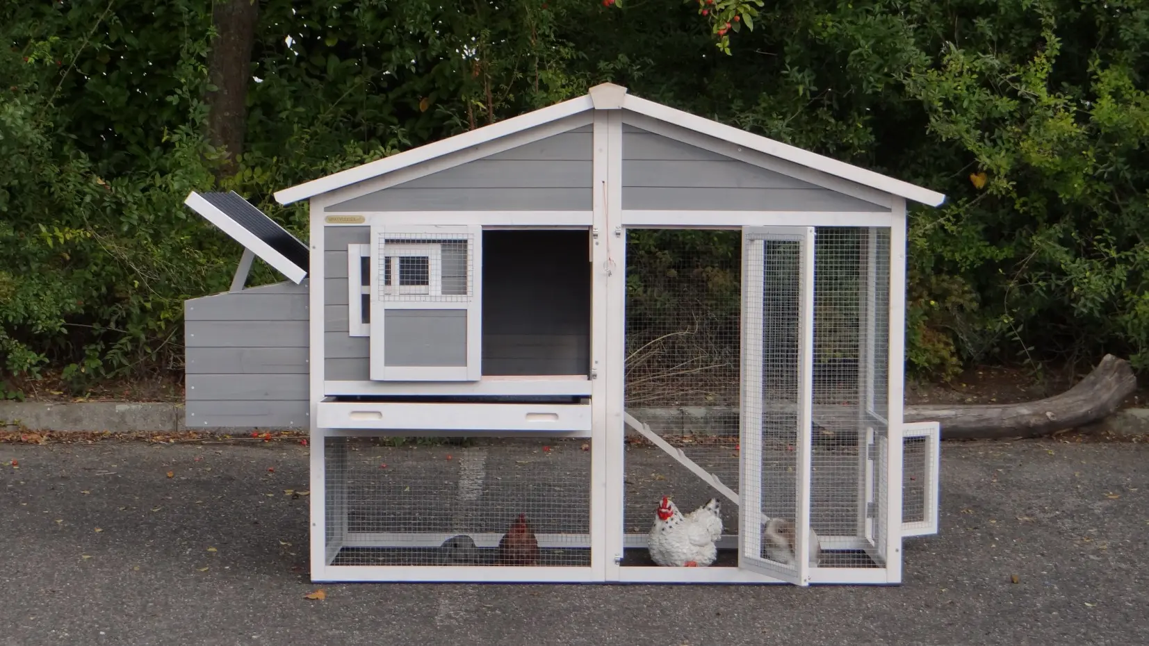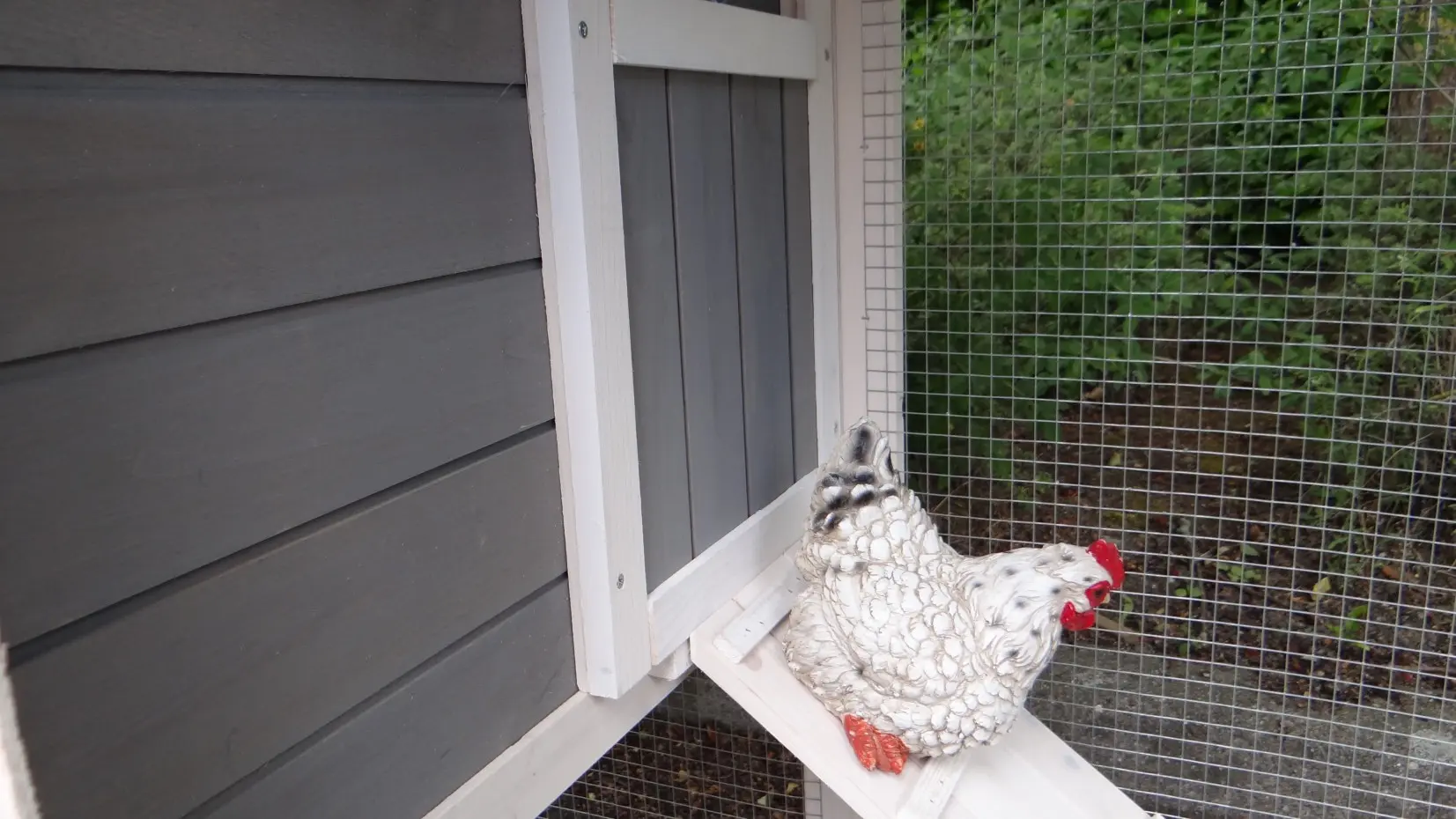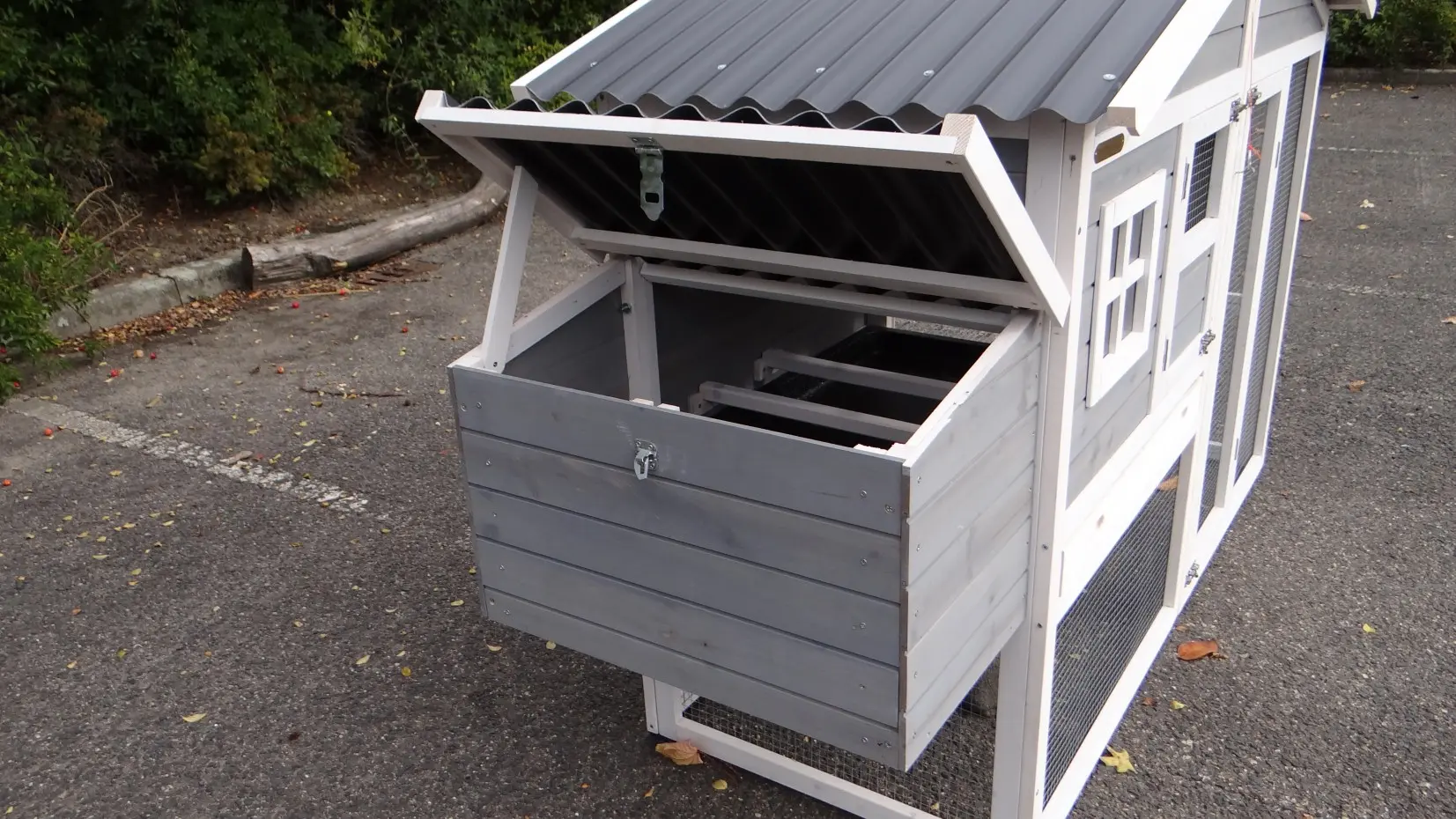 • Dieser Hühnerstall ist mit einem Legenest ausgestattet.