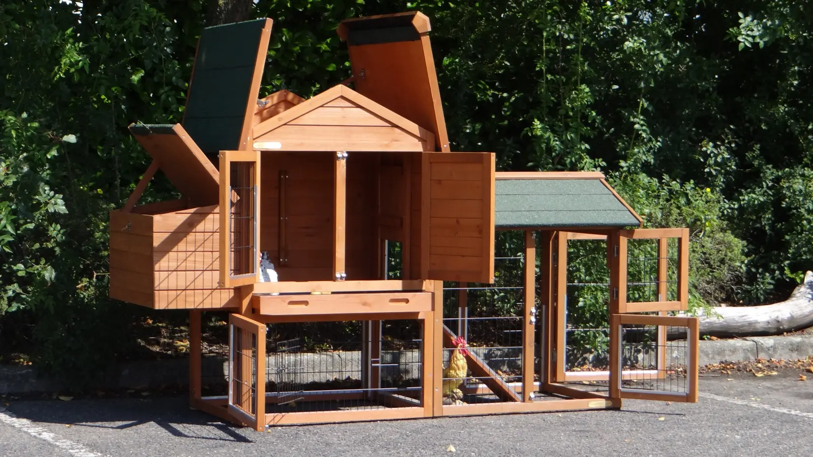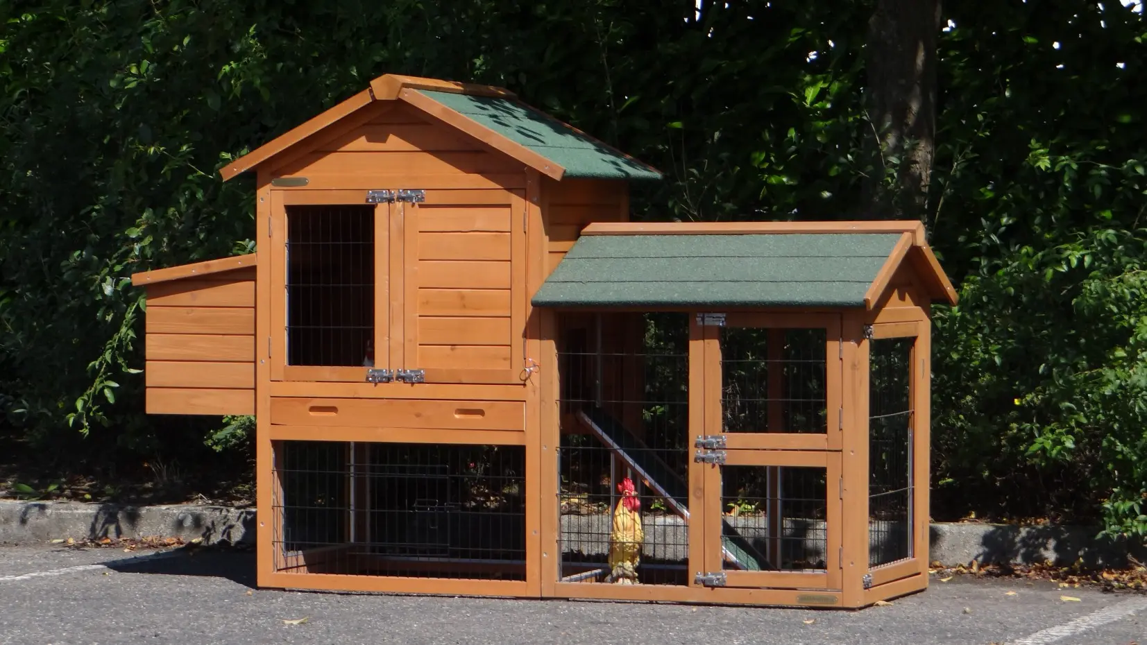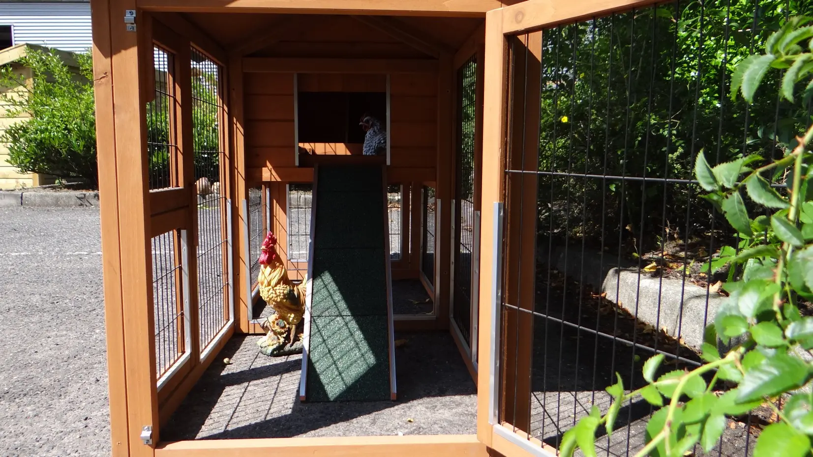 - Dieser Hühnerstall ist mit einem Legenest ausgestattet.