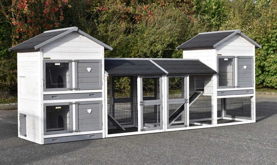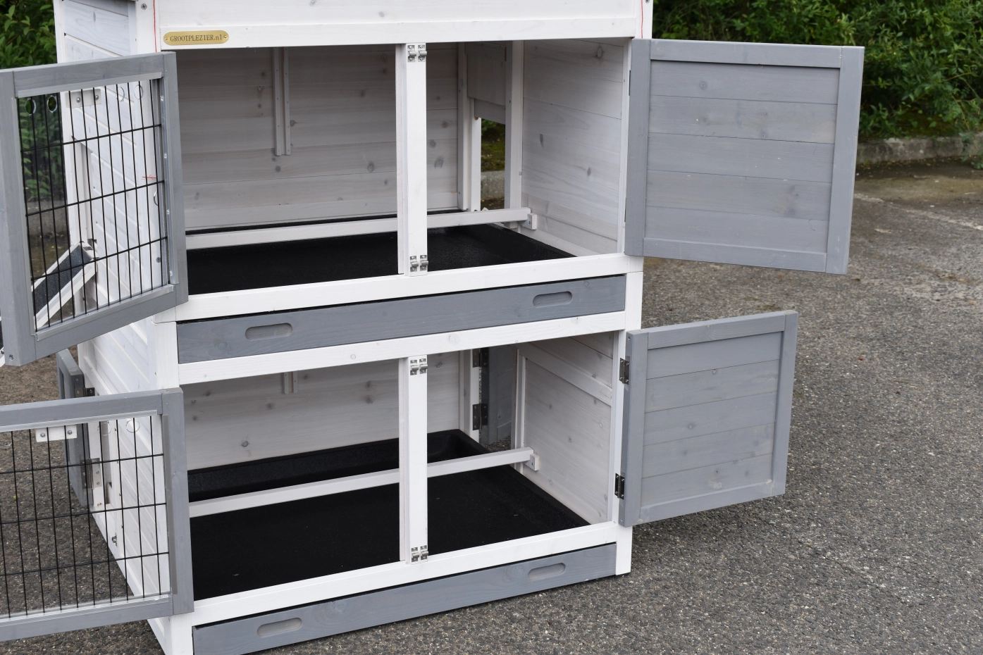 - Die Türen dieses Kaninchenstalls sind mit doppelten Schieberiegeln ausgestattet