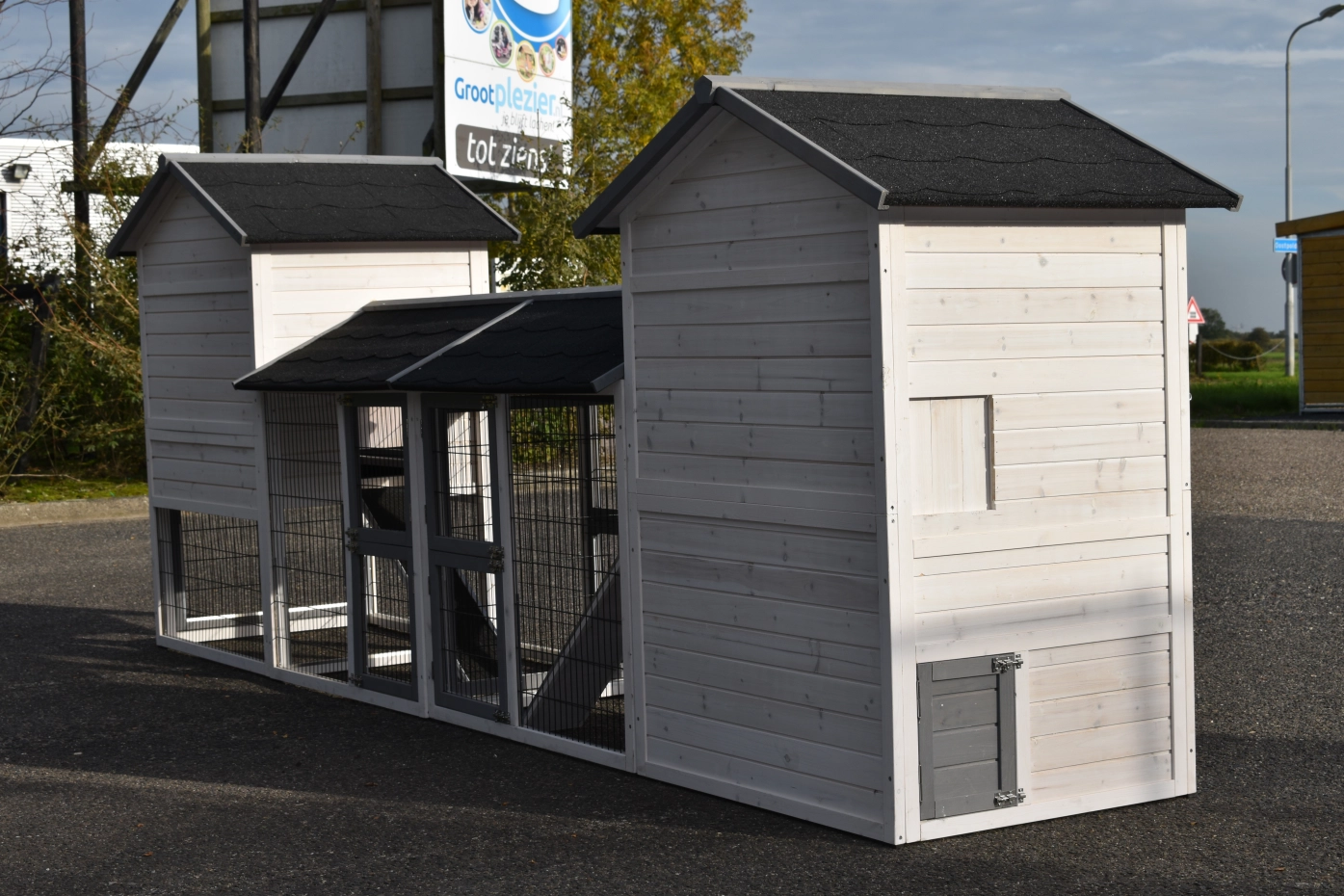 Hühnerstall Prestige Medium wurde mit zwei Ausläufen erweitert – ein wunderschöner Stall für Ihre Hühner.