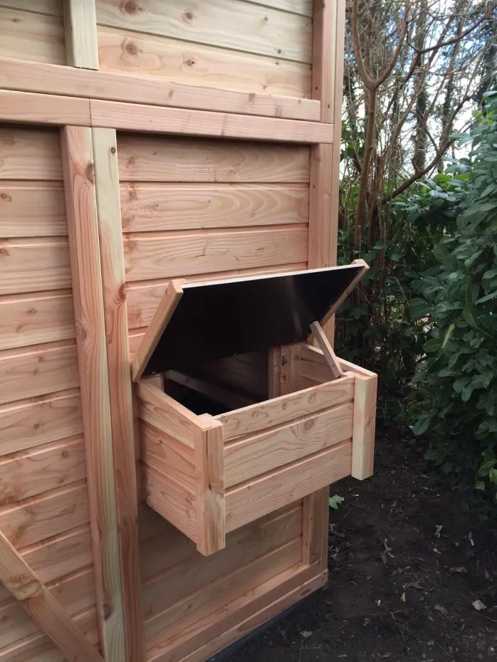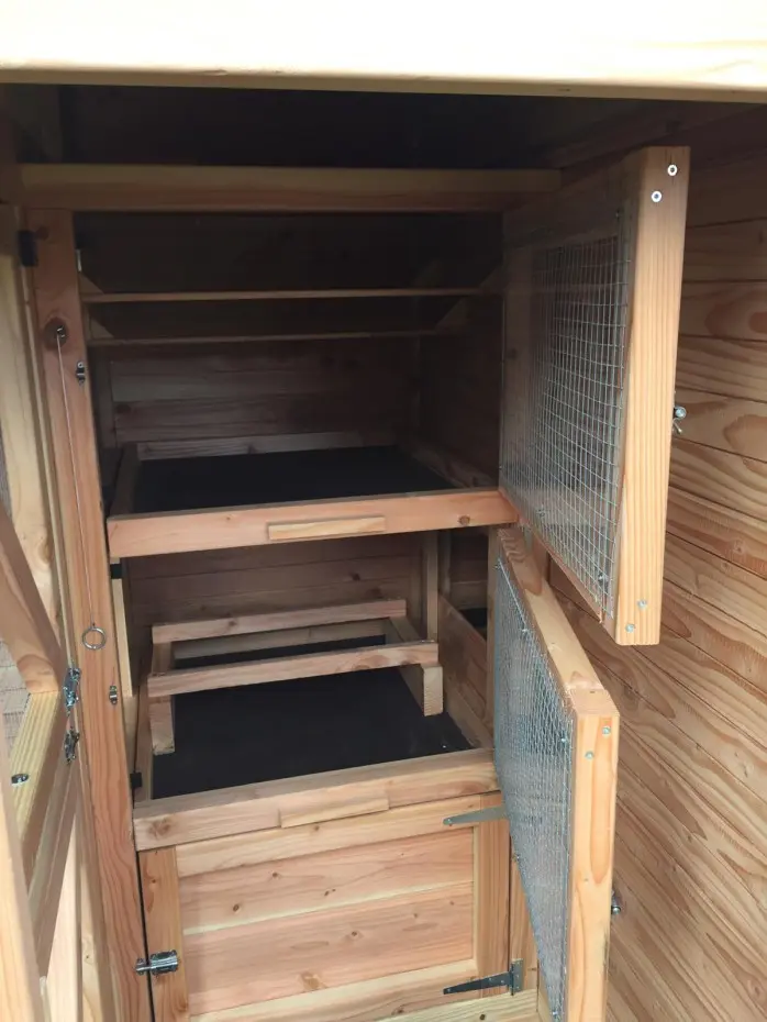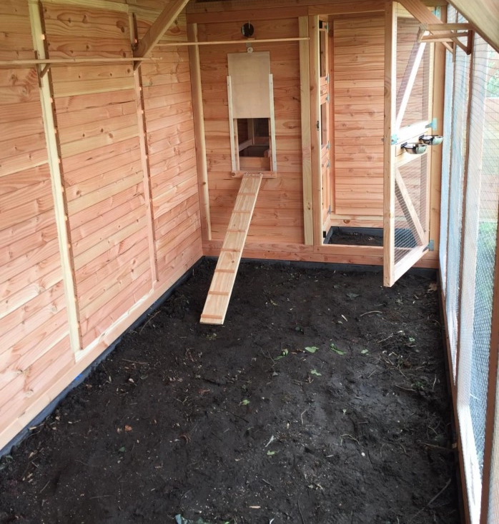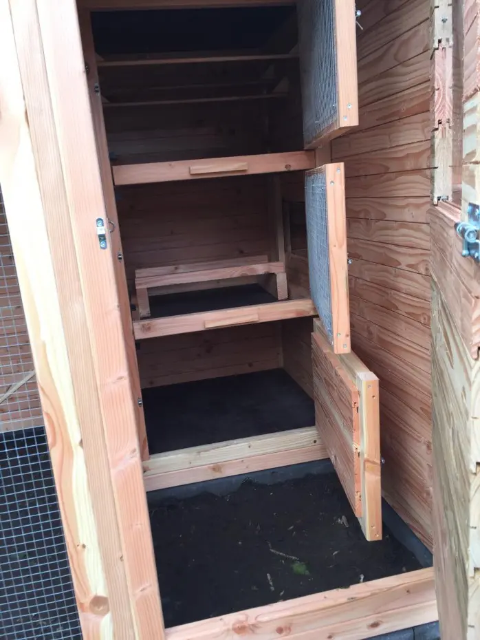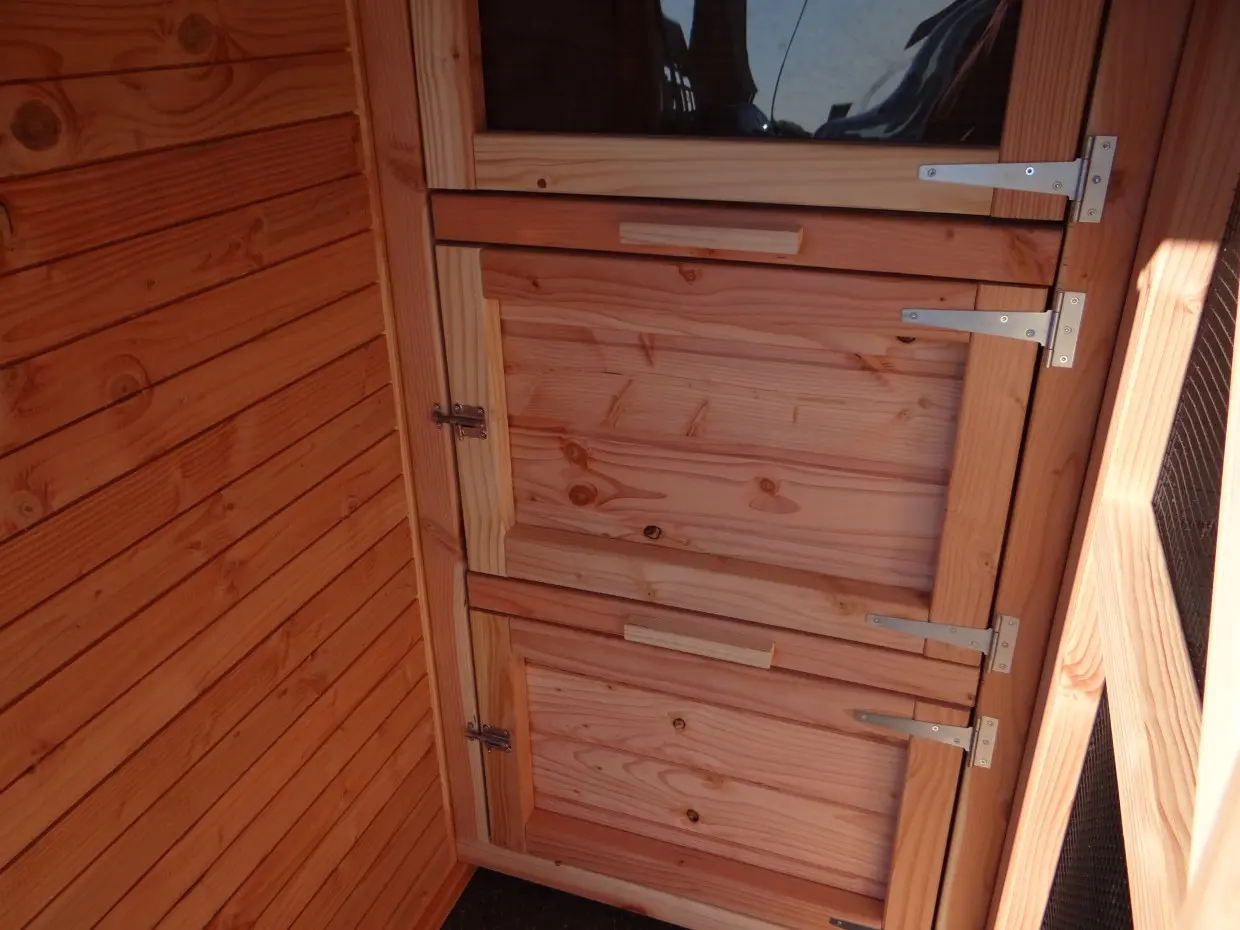 Auch für Sie als Benutzer ist dieses Tiergehege sehr komfortabel – Sie können hineingehen und alles bequem erreichen. Das Hühnerhaus ist mit vielen praktischen Details ausgestattet. Eier einsammeln, Schlafhäuser reinigen, das Gehege säubern – alles ist kinderleicht.