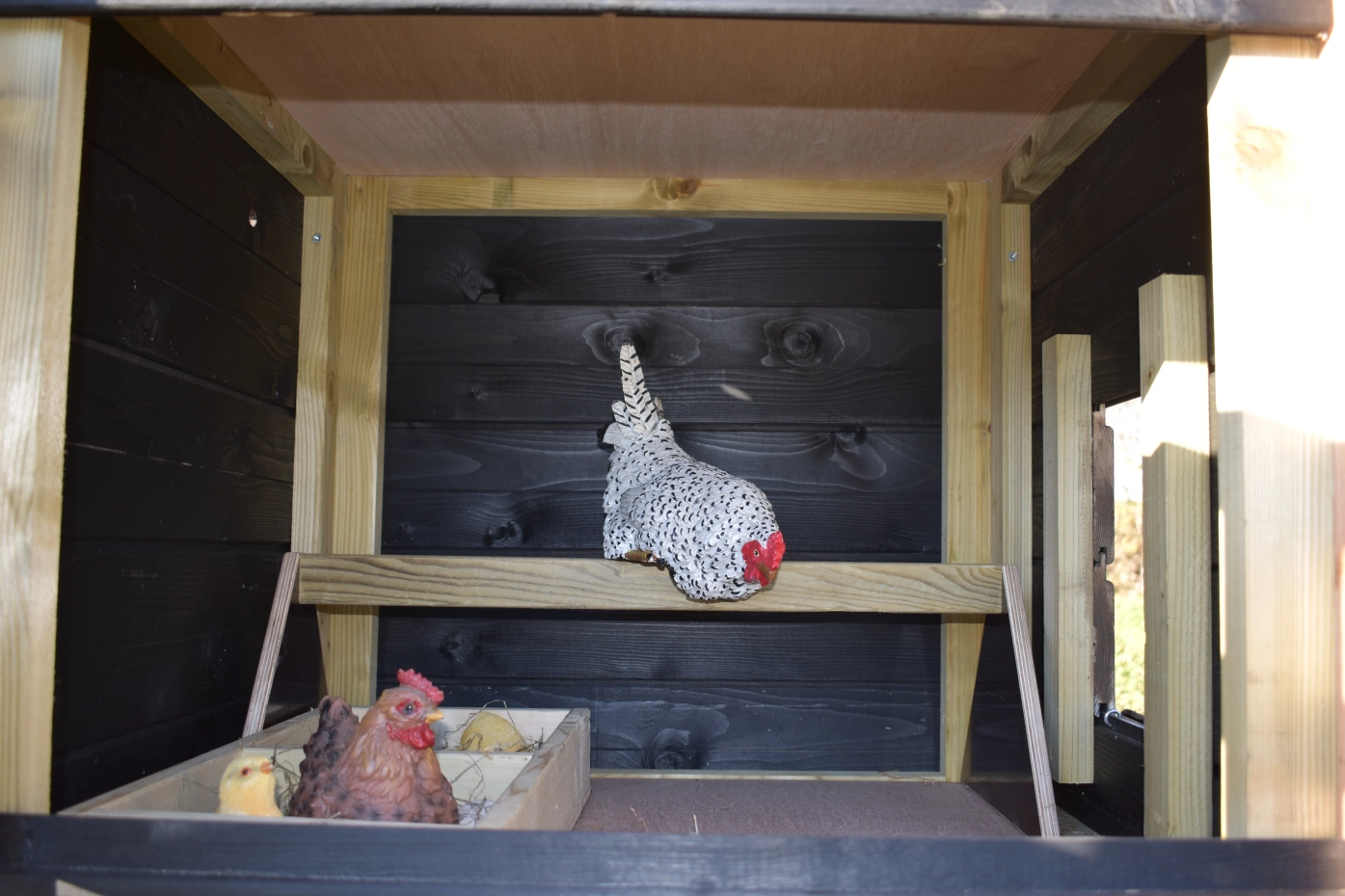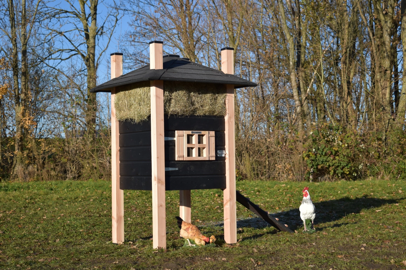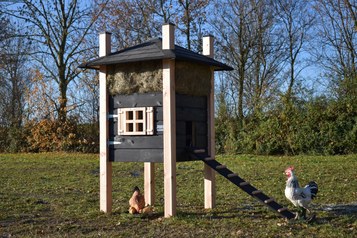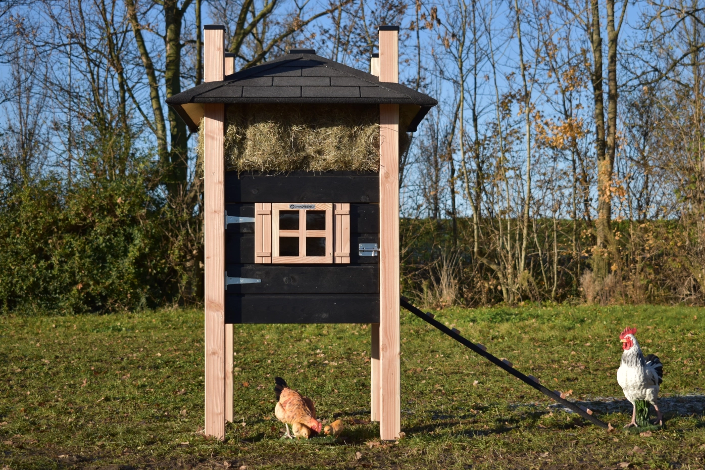 - Dieser Hühnerstall ist mit Kunststofffüßen ausgestattet