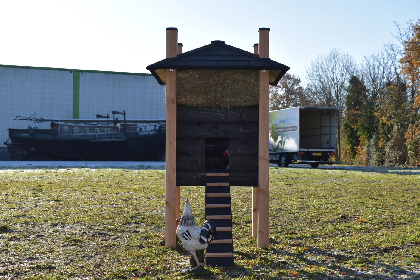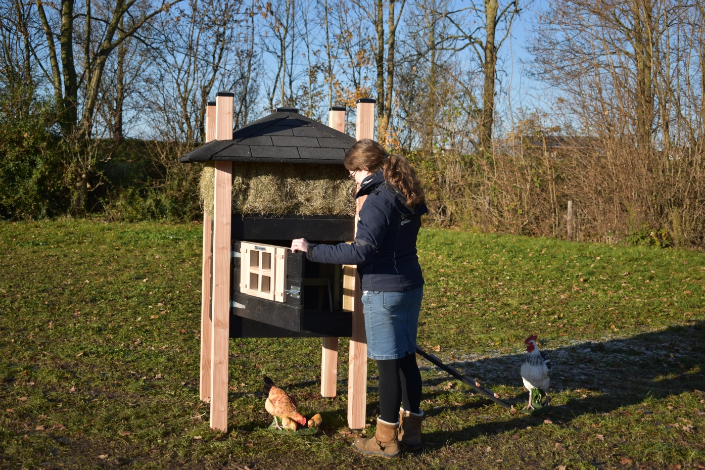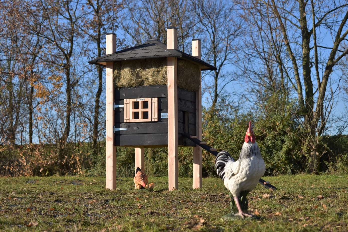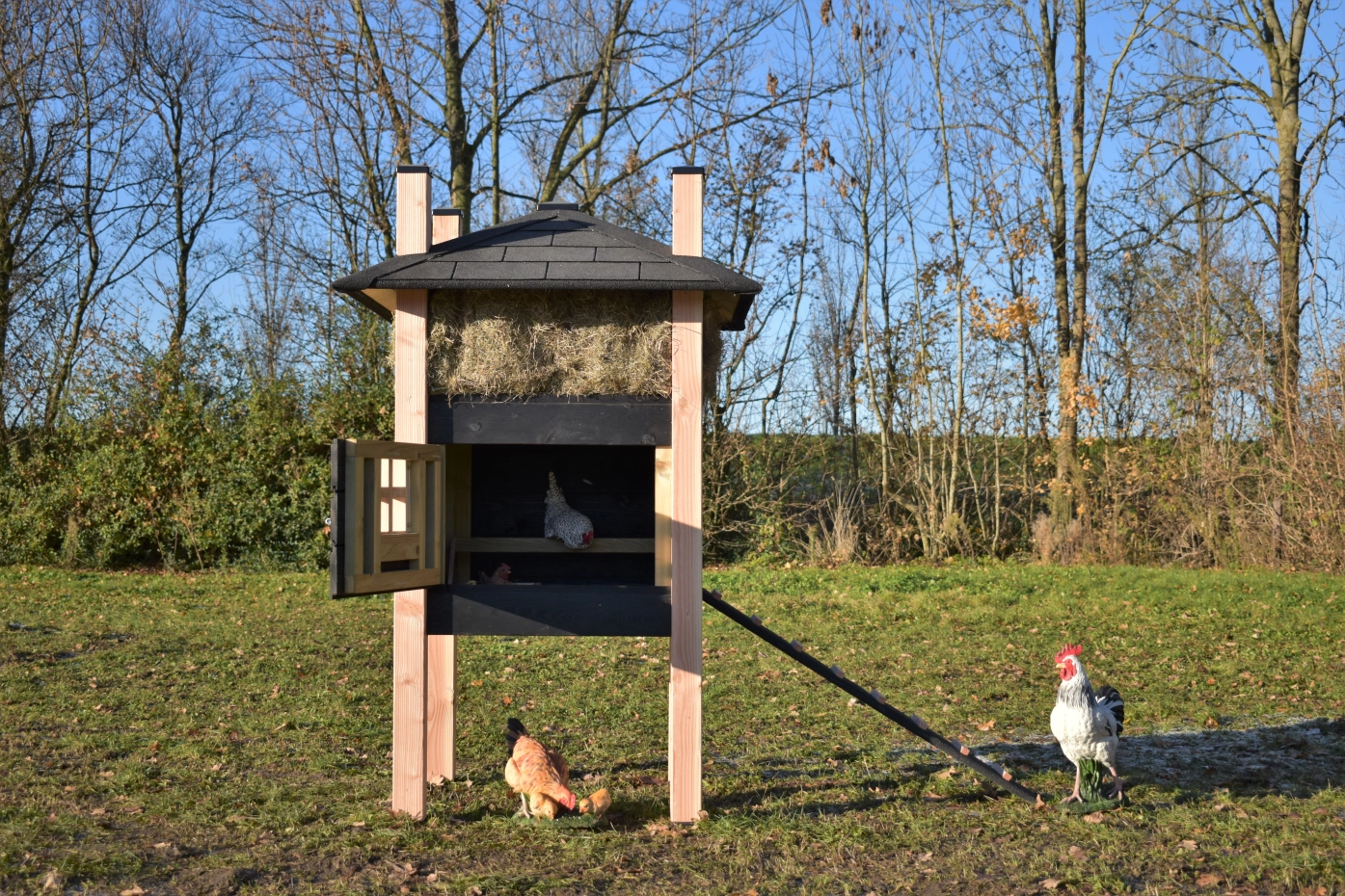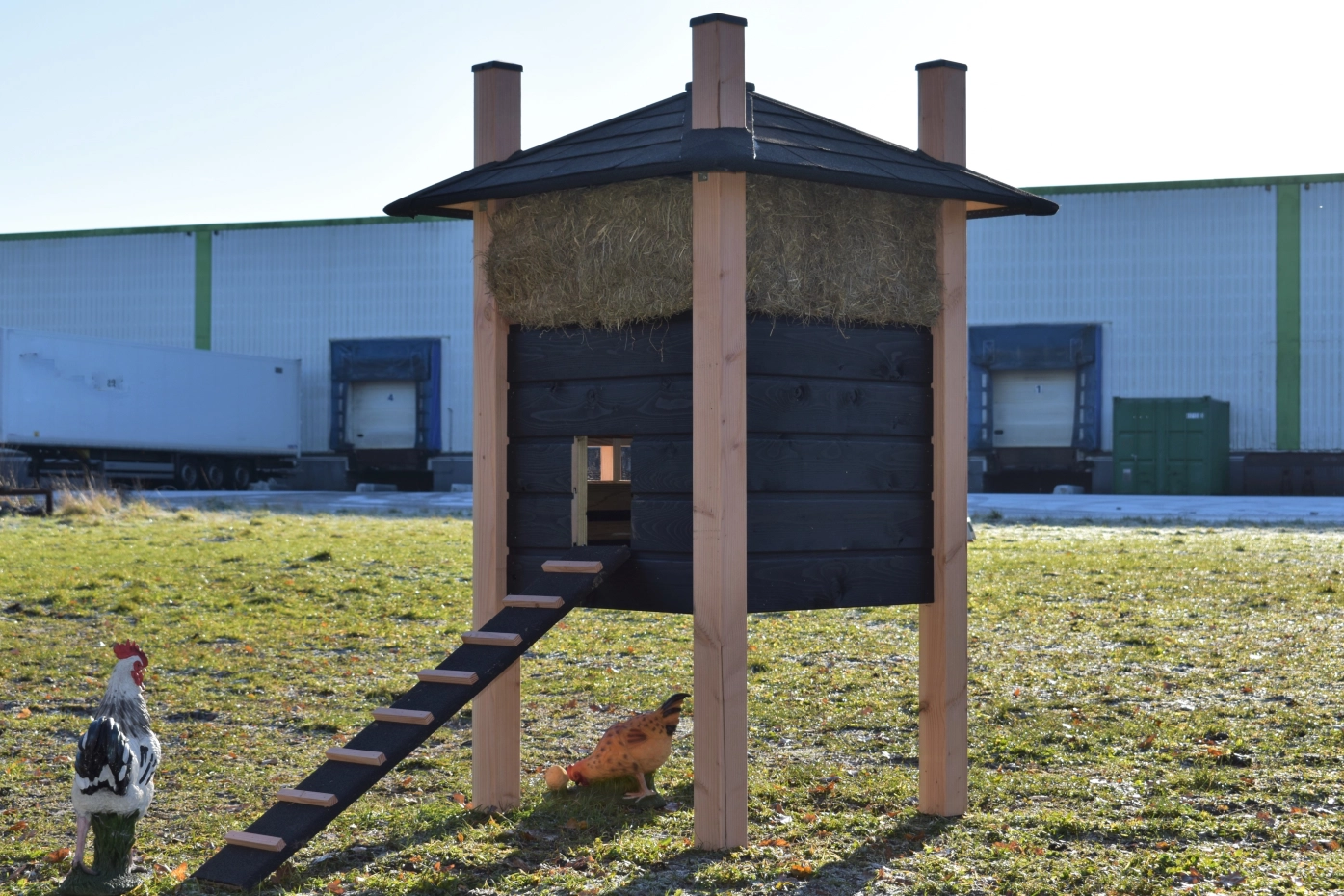 - Dieser Hühnerstall ist mit Kunststofffüßen ausgestattet