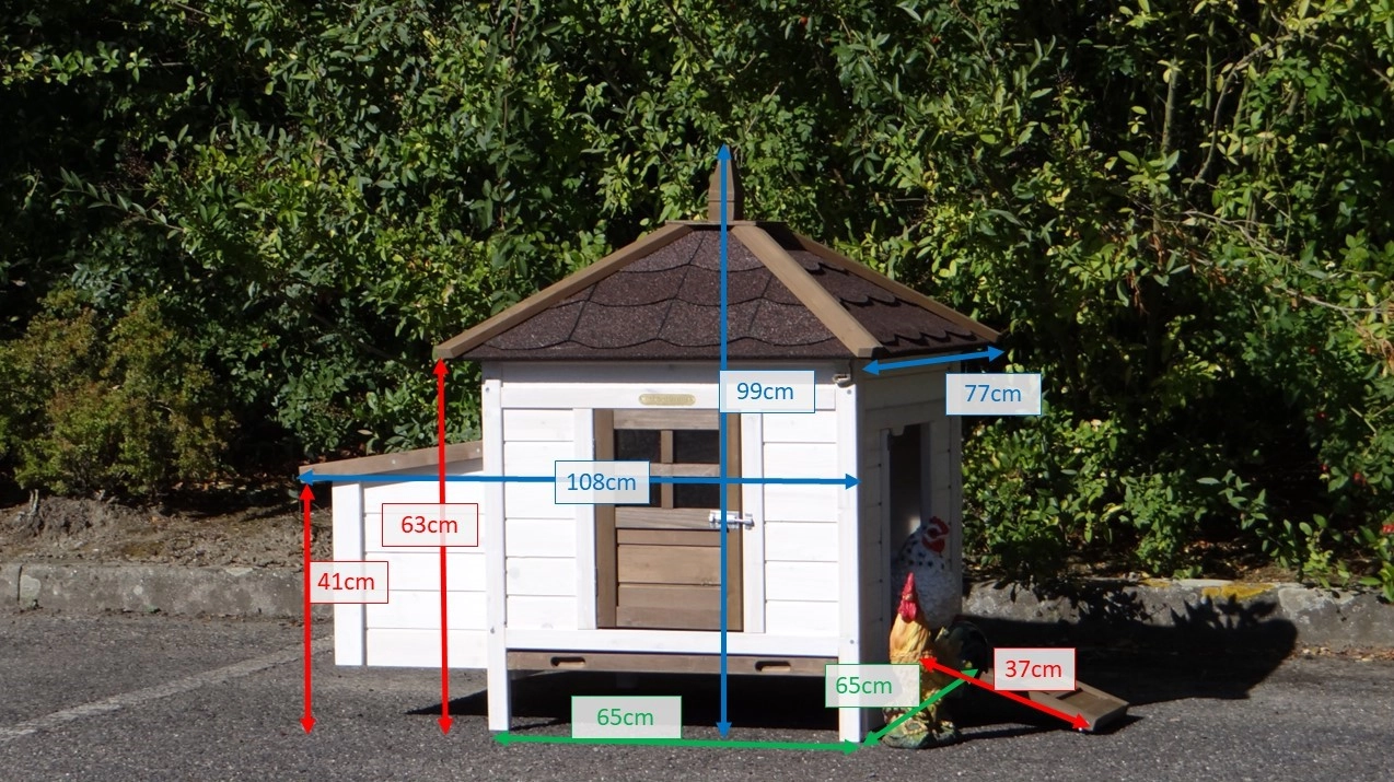 Außenabmessungen einschl. Dach und Nistkasten (BxTxH) 108x77x99cm