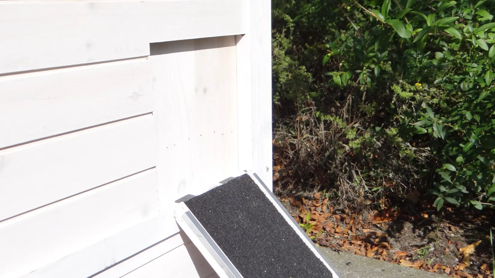 Darüber hinaus steht dieser Hühnerstall auf Gummifüßen und wird standardmäßig mit zwei Rampen geliefert.