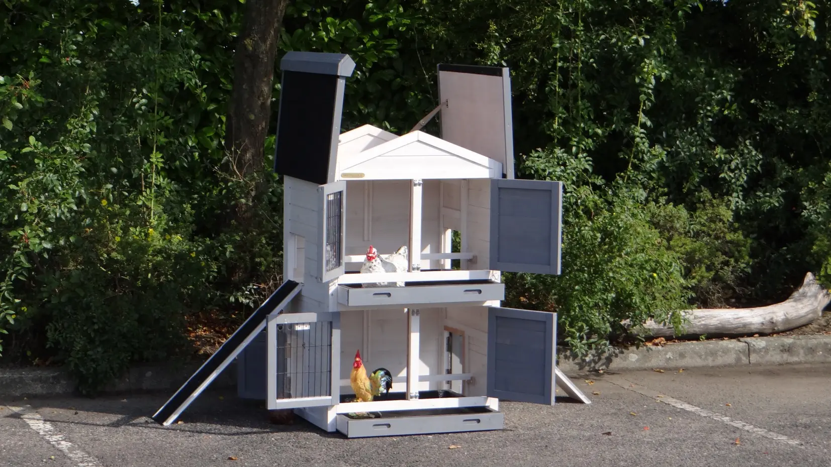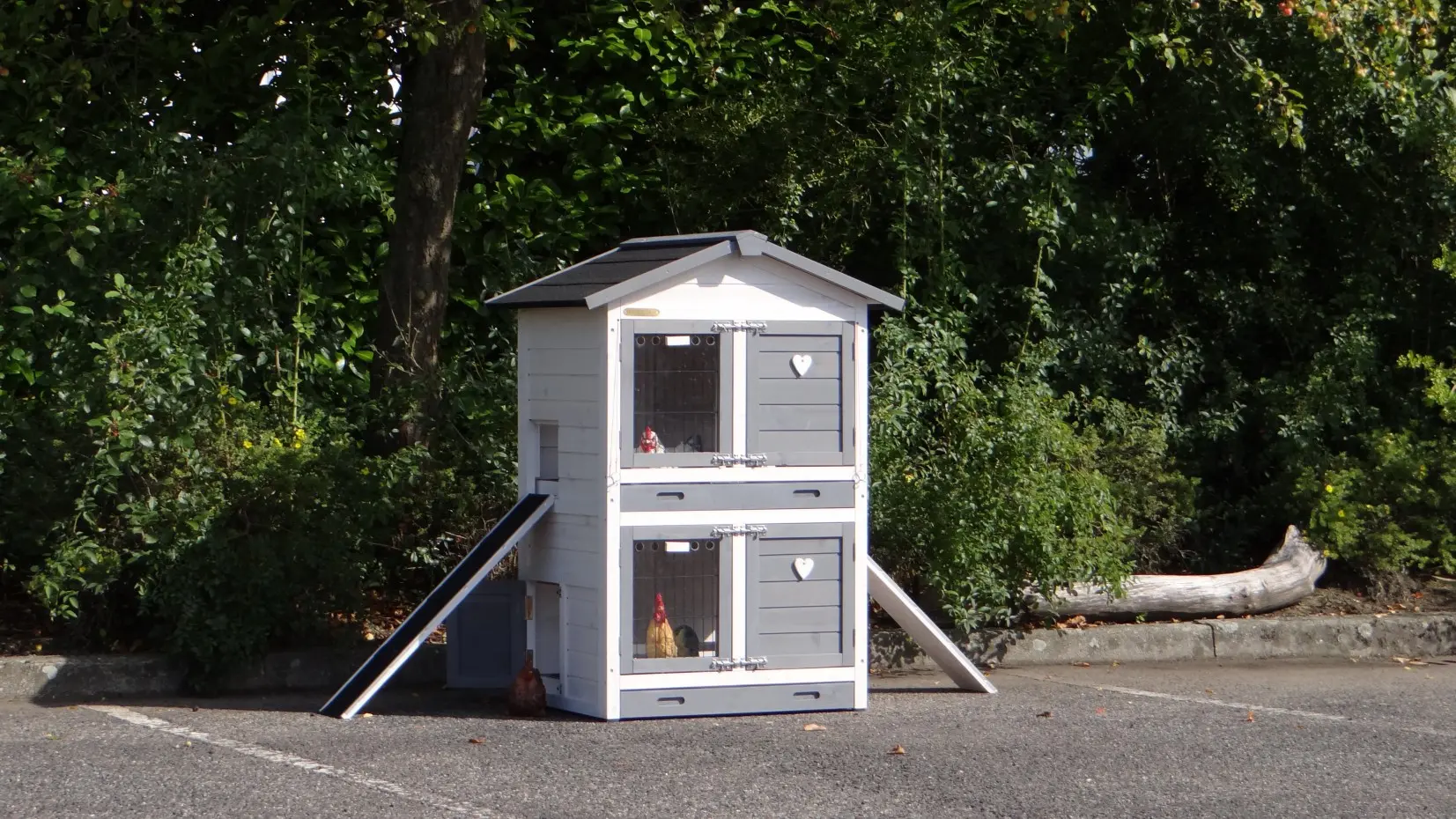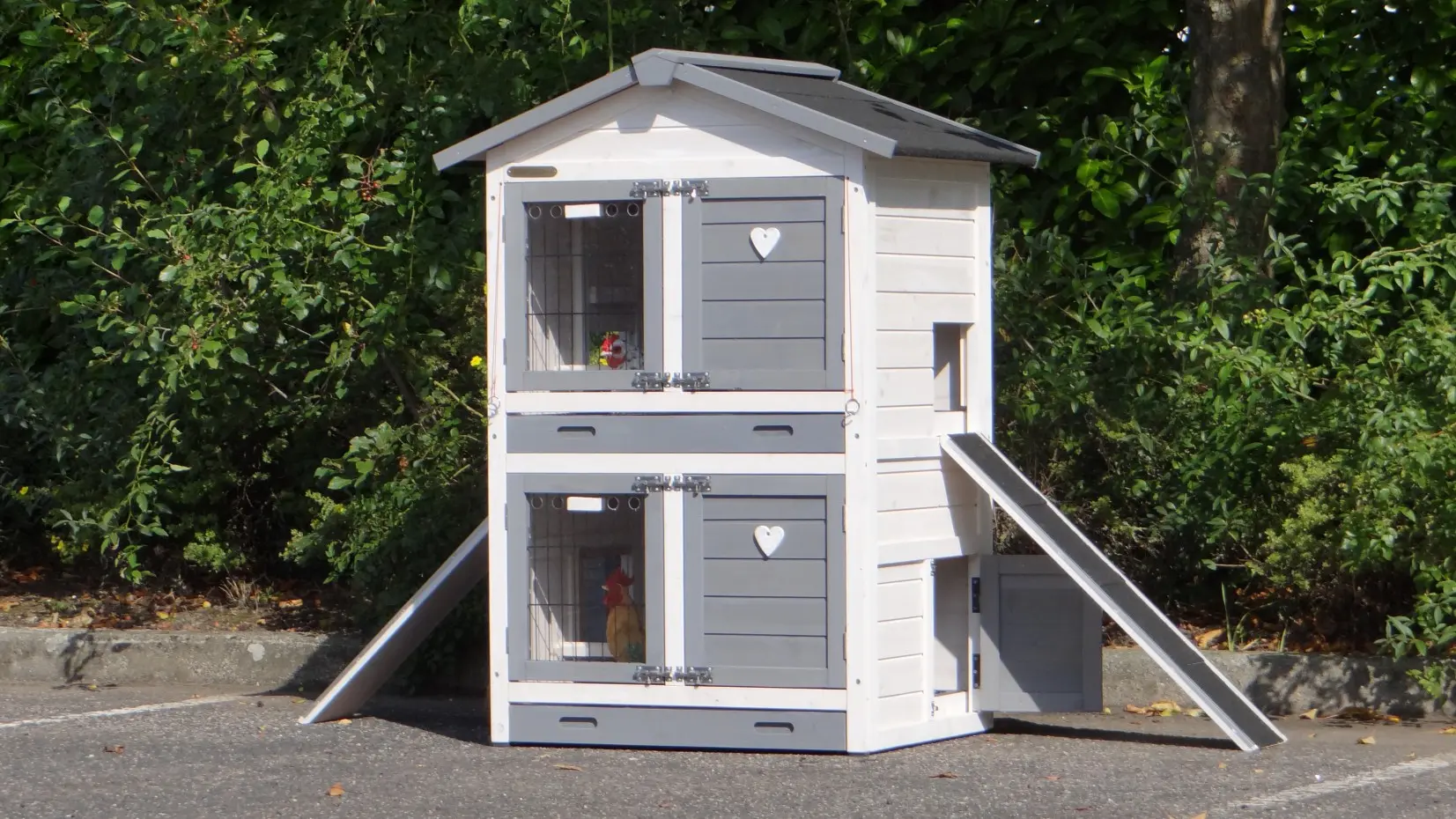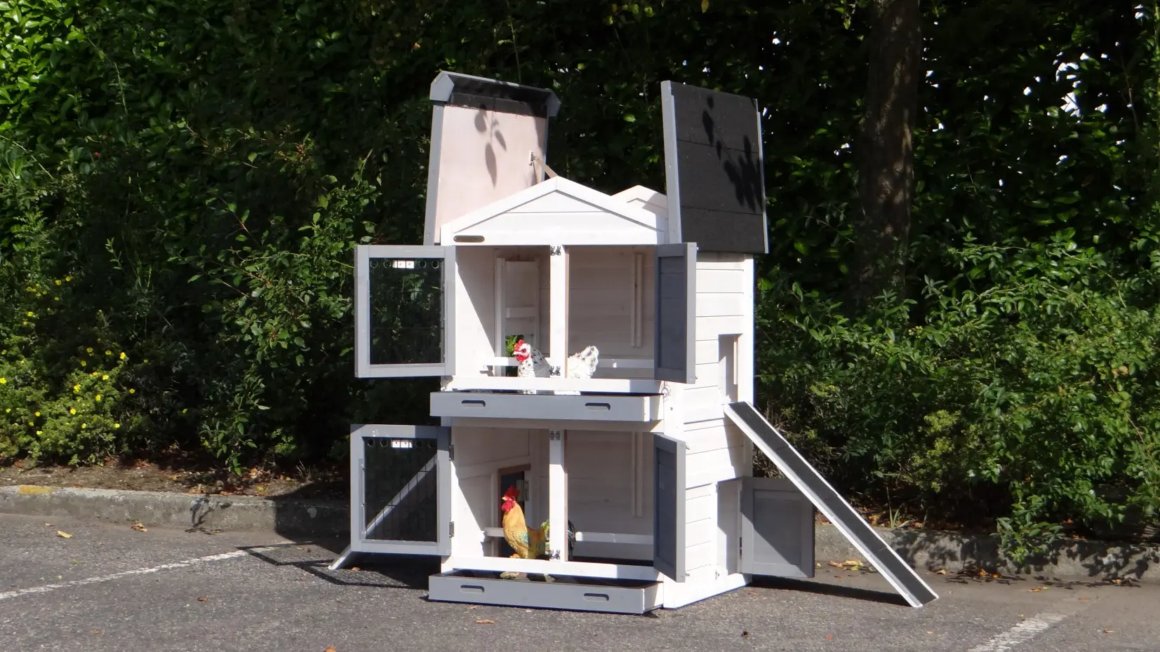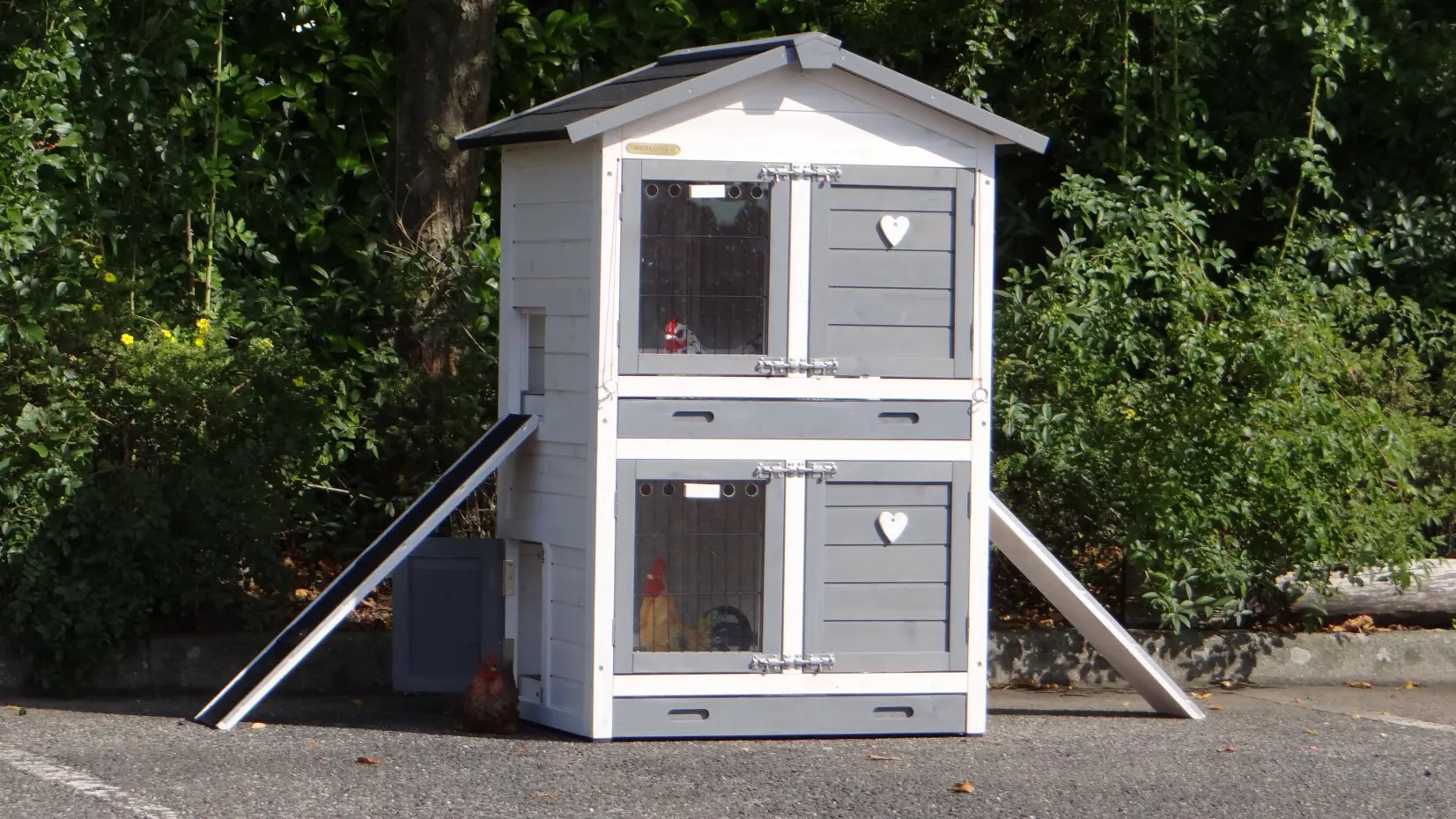 Hühnerstall Double Small ist ein wunderschöner, doppelter Hühnerstall mit großzügigen Türen.