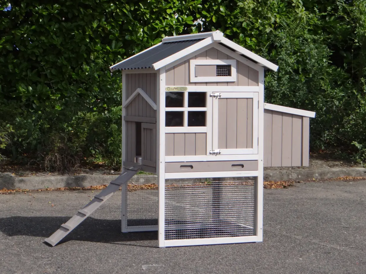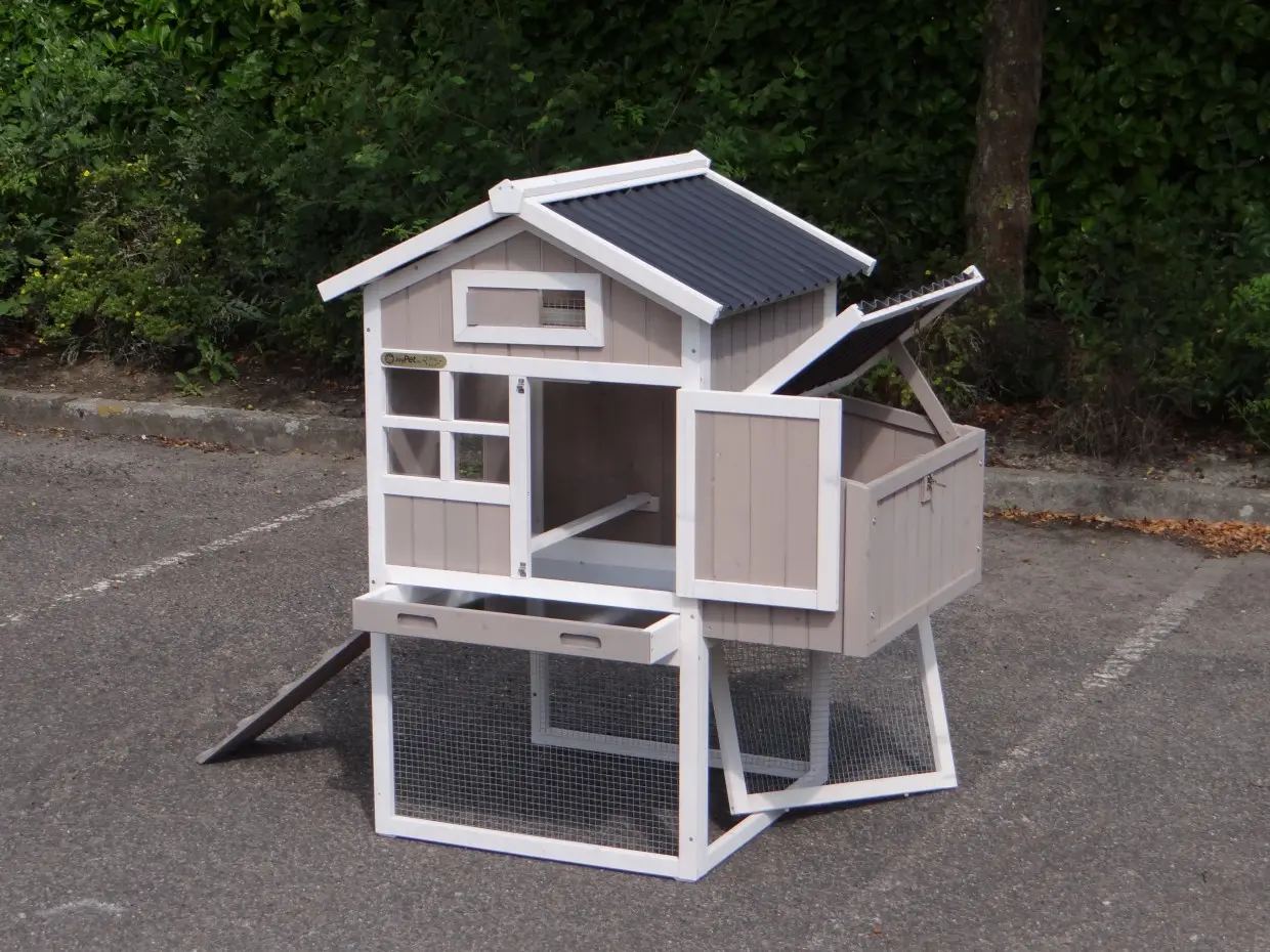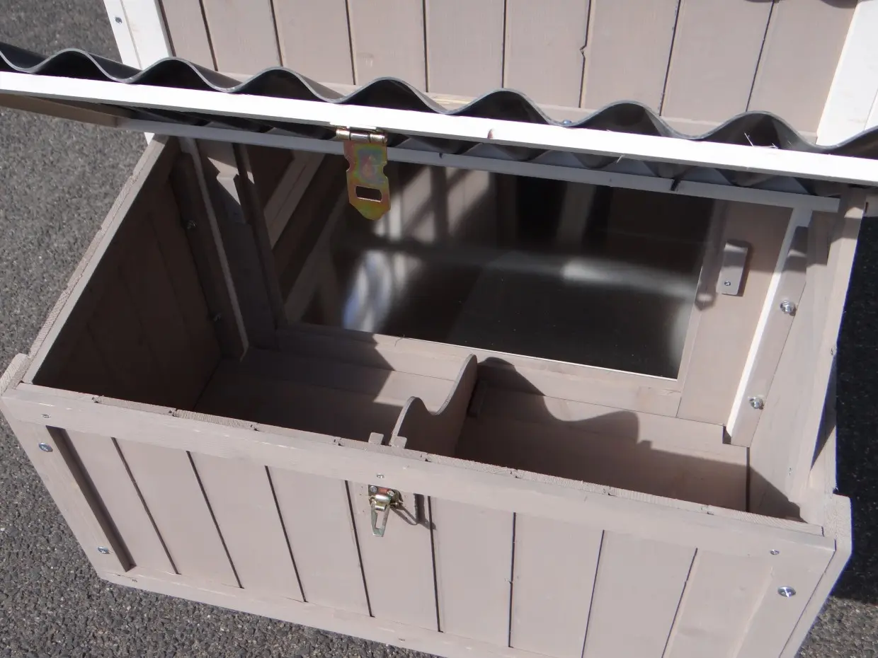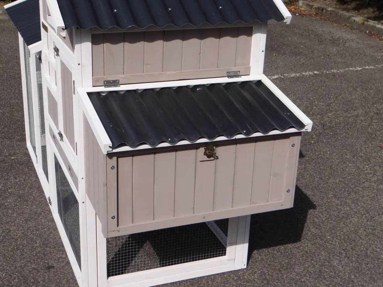 - Das Dach dieses Kaninchenstalls ist von Kunststof.