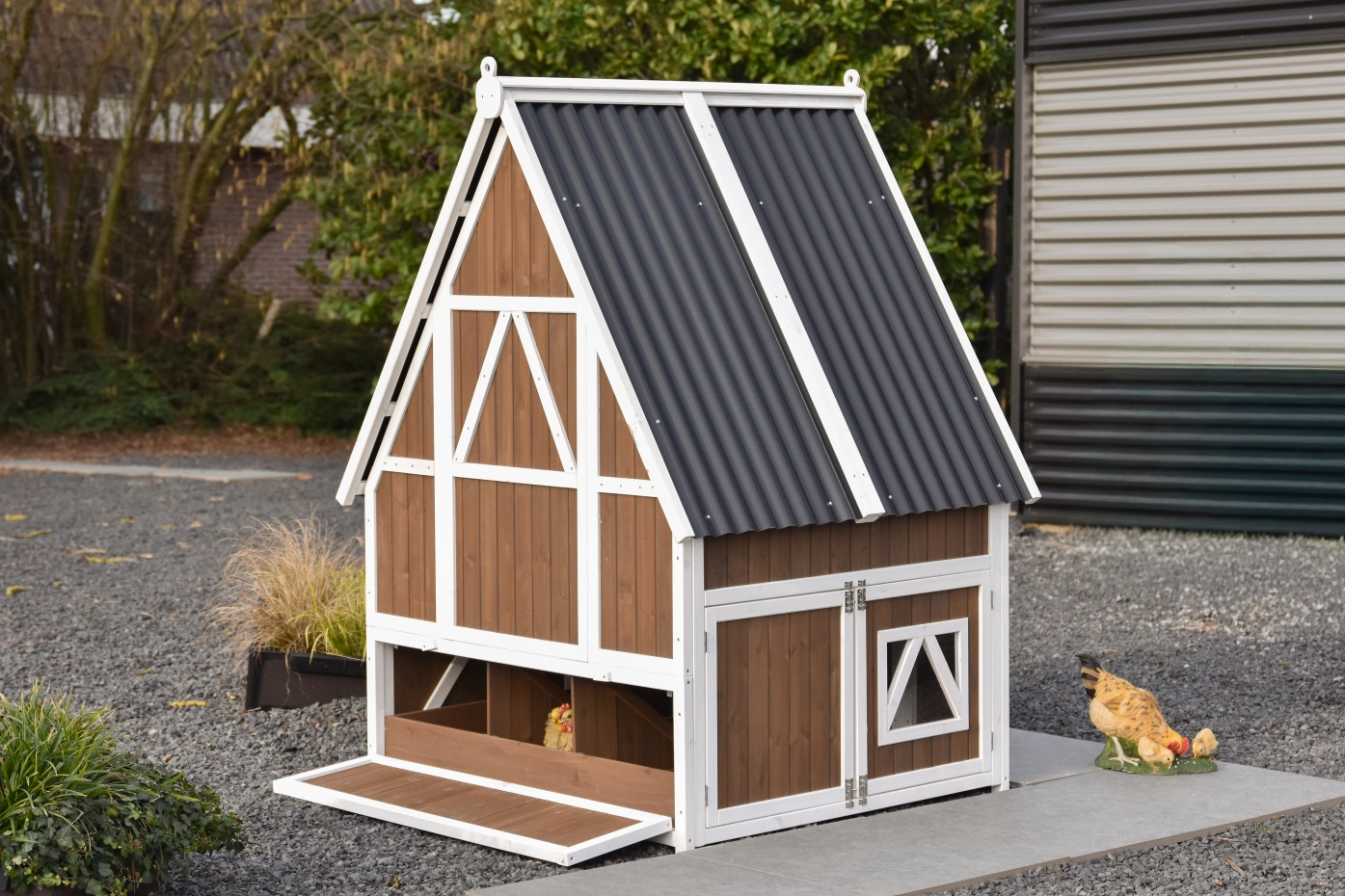 - Dieser Hühnerstall ist mit einem Legenest ausgestattet.