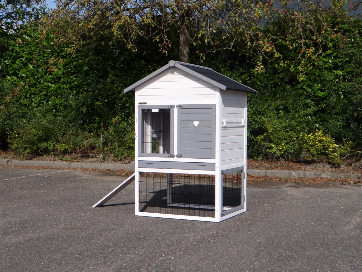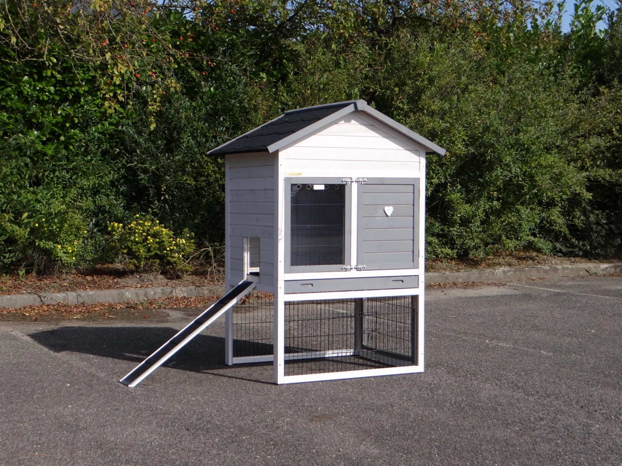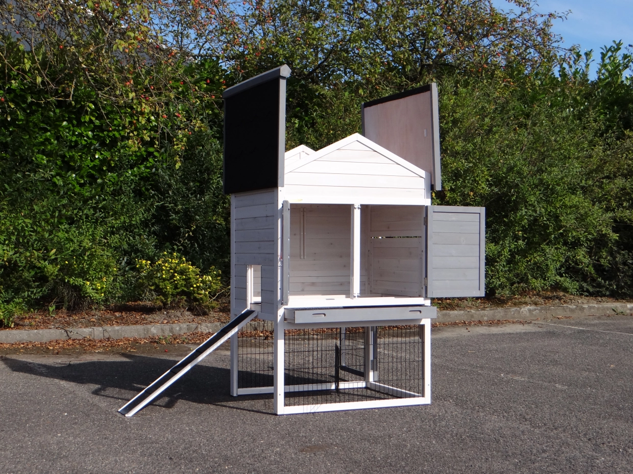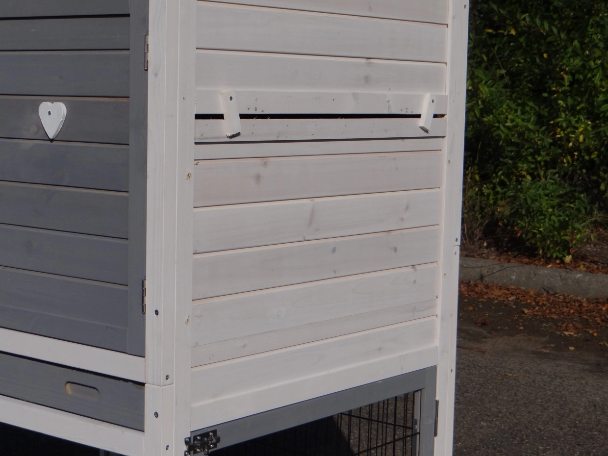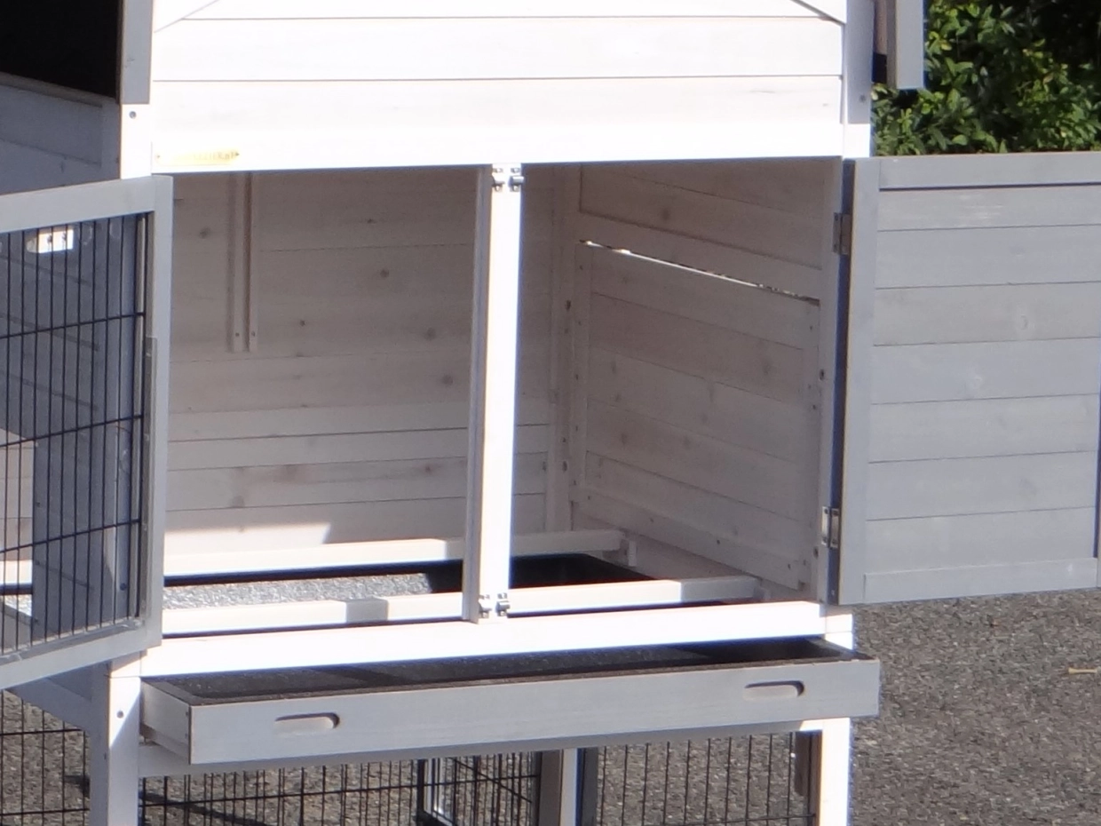 - Die Türen dieses Kaninchenstalls sind mit doppelten Schieberiegeln ausgestattet