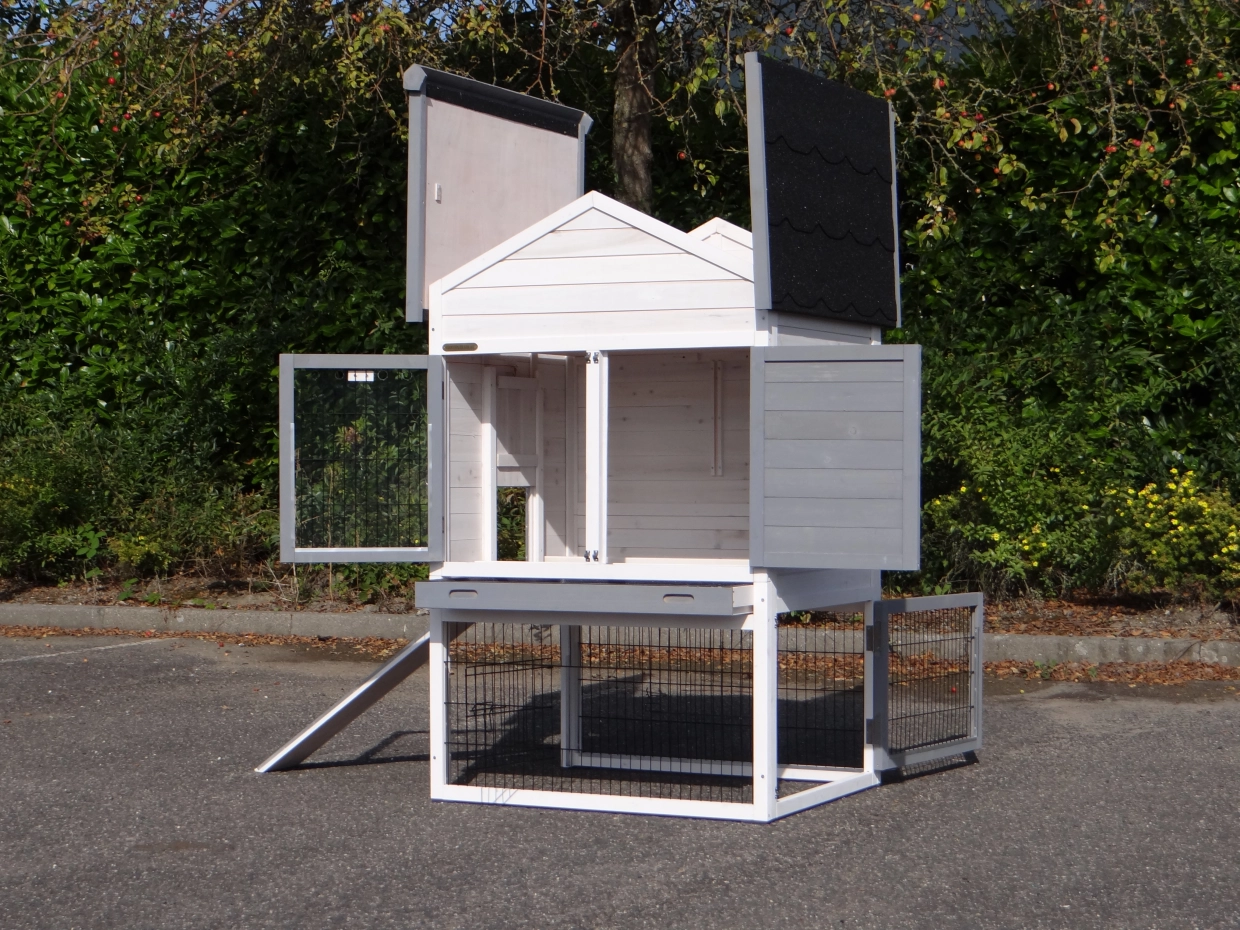 Der Hühnerstall Prestige Medium ist ein großartiger Hühnerstall für Ihre Hühner. Dieser praktische Hühnerstall ist bis ins kleinste Detail perfekt verarbeitet, mit geräumigen Türen und einem großzügigen Nachtstall, der mit 2 Sitzstangen ausgestattet ist. Zum optimalen Schutz steht der Hühnerstall auf Gummifüßen. Außerdem verfügt der Hühnerstall über eine ausziehbare Kunststoff Kotwanne. Das macht den Hühnerstall Prestige Medium sehr praktisch in der Anwendung.