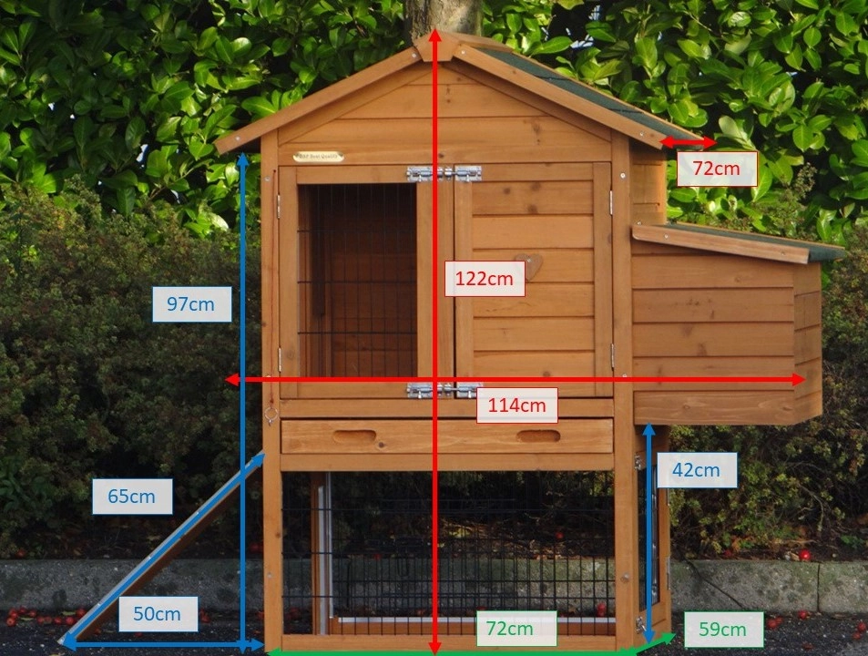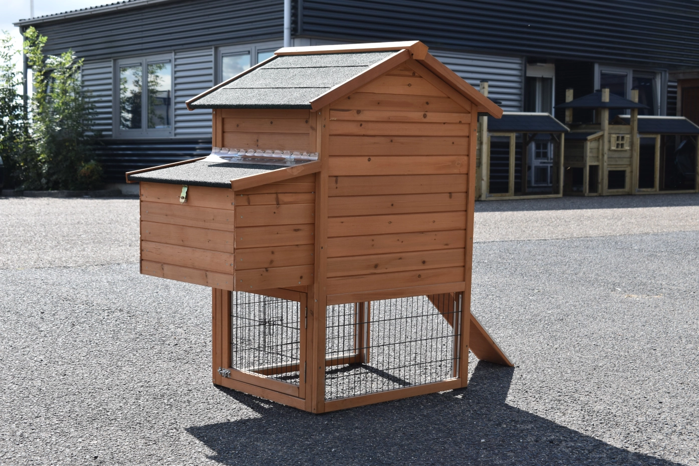 - Dieser Hühnerstall ist mit einem Legenest ausgestattet.