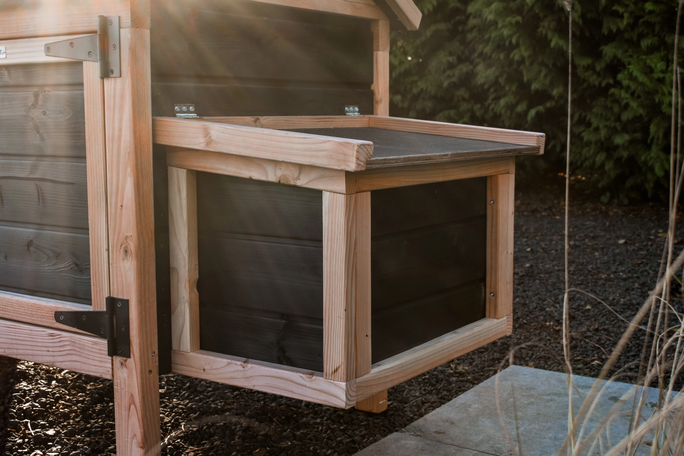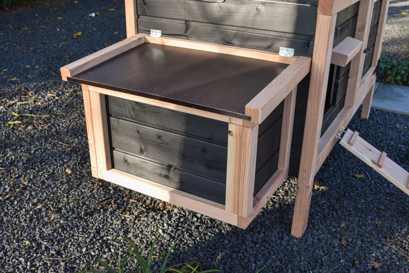 Das Legenest Eggy kann separat bestellt und leicht an Ihr Hühnerhaus Eggy angebaut werden. Frische Eier zum Frühstück genießen! Kein Eggy im Garten? Entdecken Sie die Komplett-Sets aus elegantem Douglasienholz mit schwarzen Details.