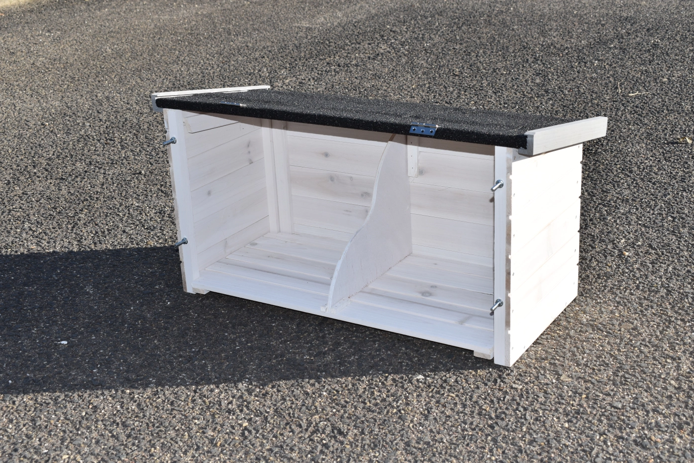 Zur Vermeidung von Rost- und Korrosionsbildung empfiehlt es sich, Schlösser und Beschläge regelmäßig mit Silikonspray oder Schlösserspray zu behandeln. Steht die Tierunterkunft nicht an einem geschützten Ort, empfehlen wir Ihnen, die Tierunterkunft zu verankern.