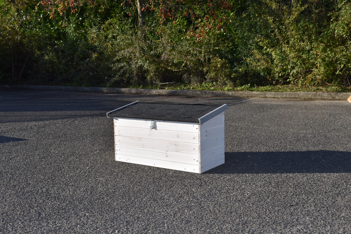 - Wenn möglich stellen Sie den Stall auf einem geschützten Platz.
