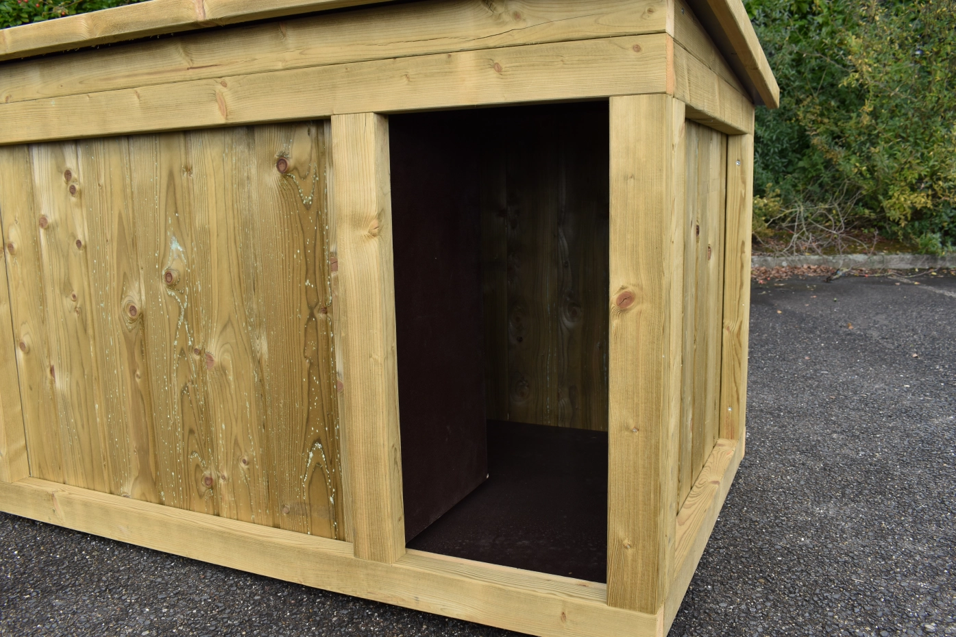 - Die Hundehütte ist versehen mit einer festen Windfang