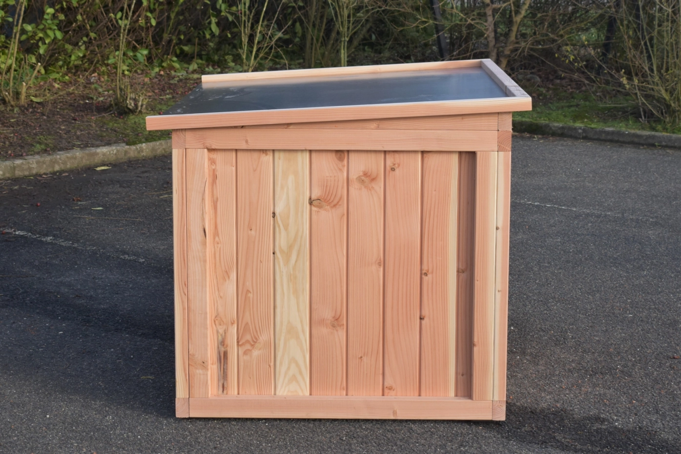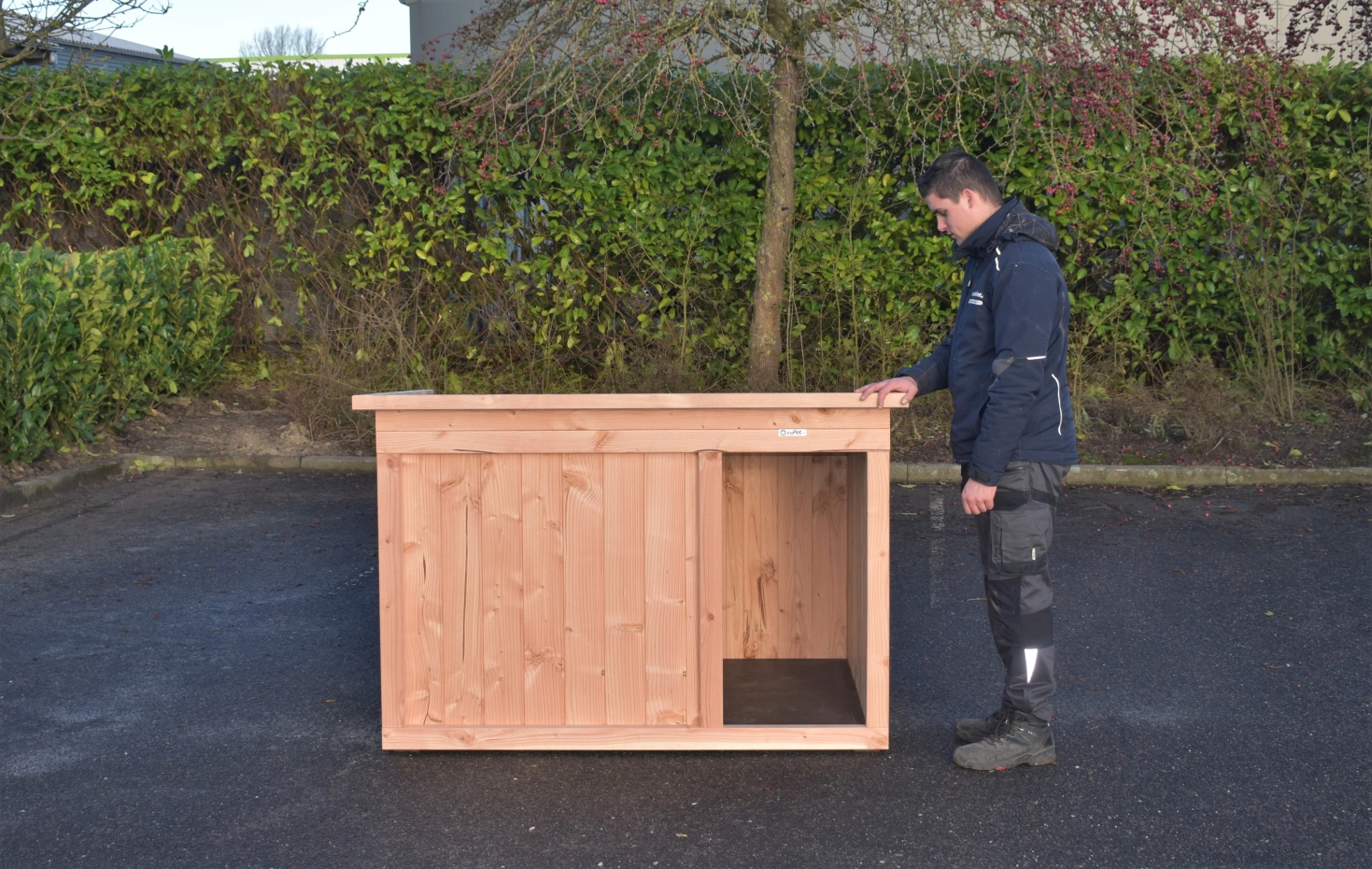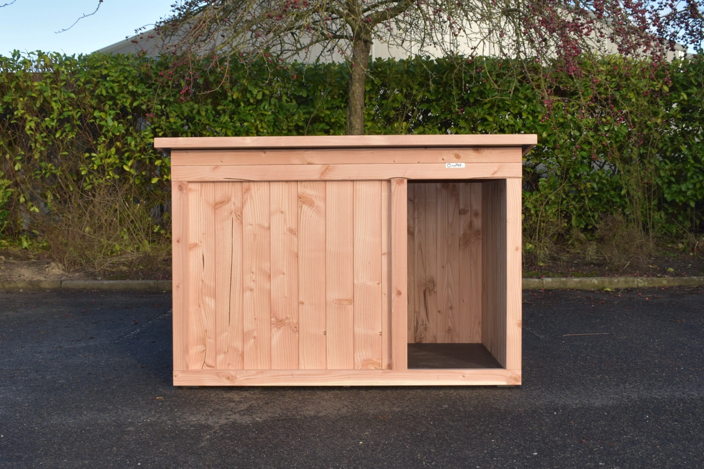 Hundehütte Block Extra Large besteht aus Douglasienholz. Mit seinem robusten und markanten Charakter ein echter Geheimtipp! Dieses Haus ist sehr stabil gebaut und ideal für große Hunde wie Boerboel, Deutsche Dogge, Dänische Dogge, Neufundländer, Bernhardiner, Berner Sennenhund und Tibetmastiff geeignet.