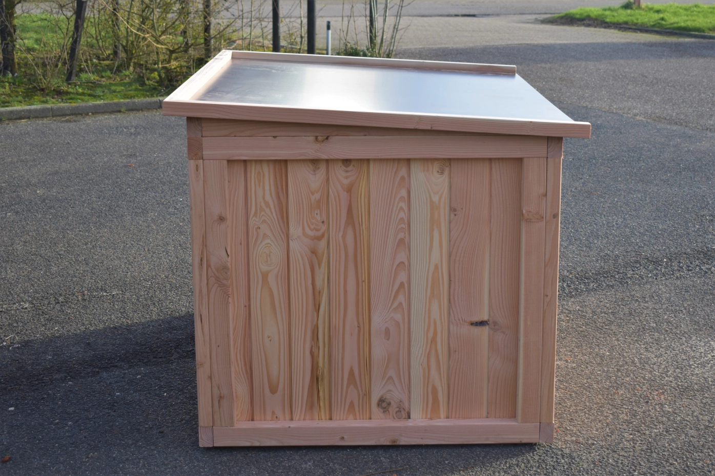 - Wir empfehlen das Holz zu behandeln mit Douglasien-Öl um zu verhindern dass das Holz grau wird
