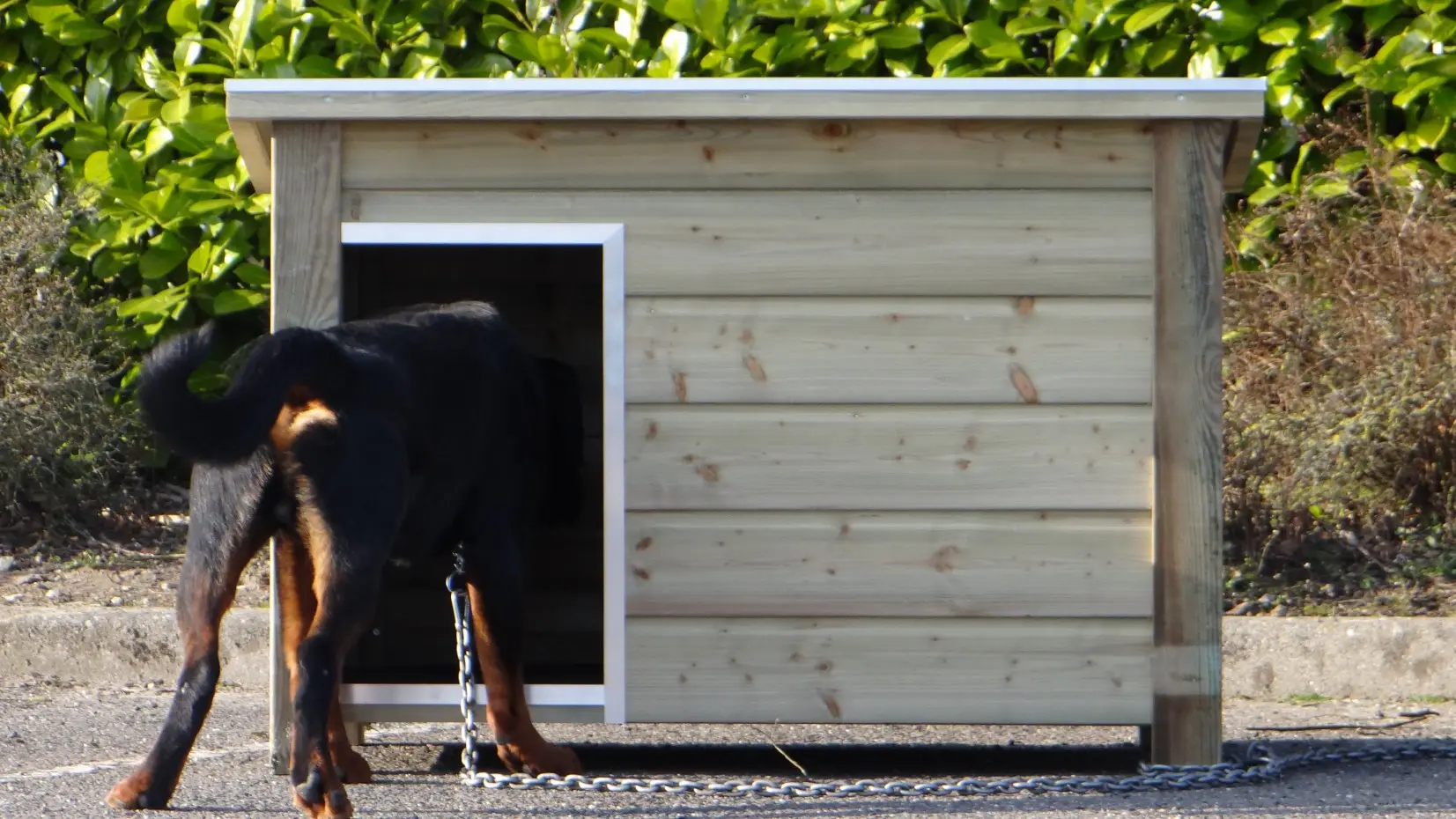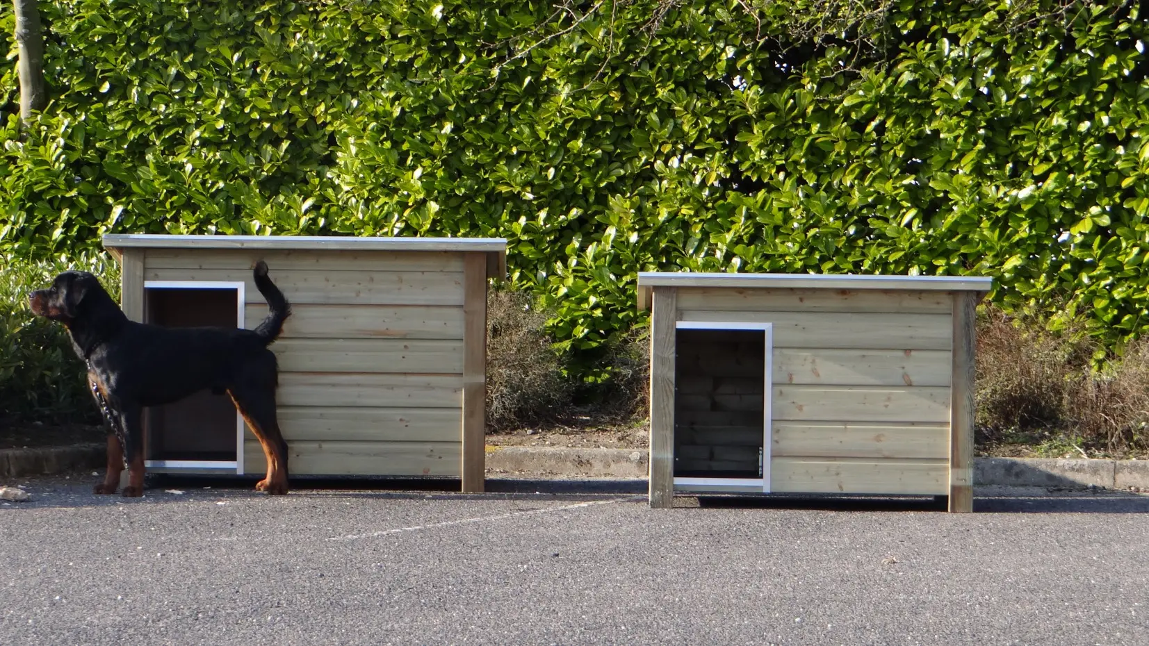 Die Hundehütte eignet sich zum Beispiel für den Englische bulldogge, Rottweiler und Beagle.