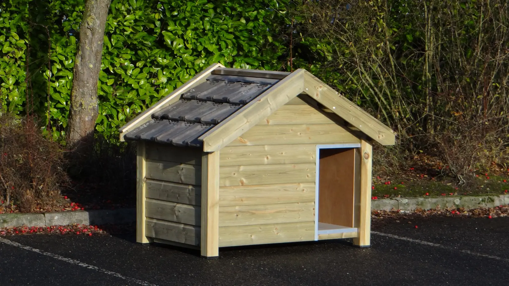 - Hundehütte mit folgenden Eigenschaften: