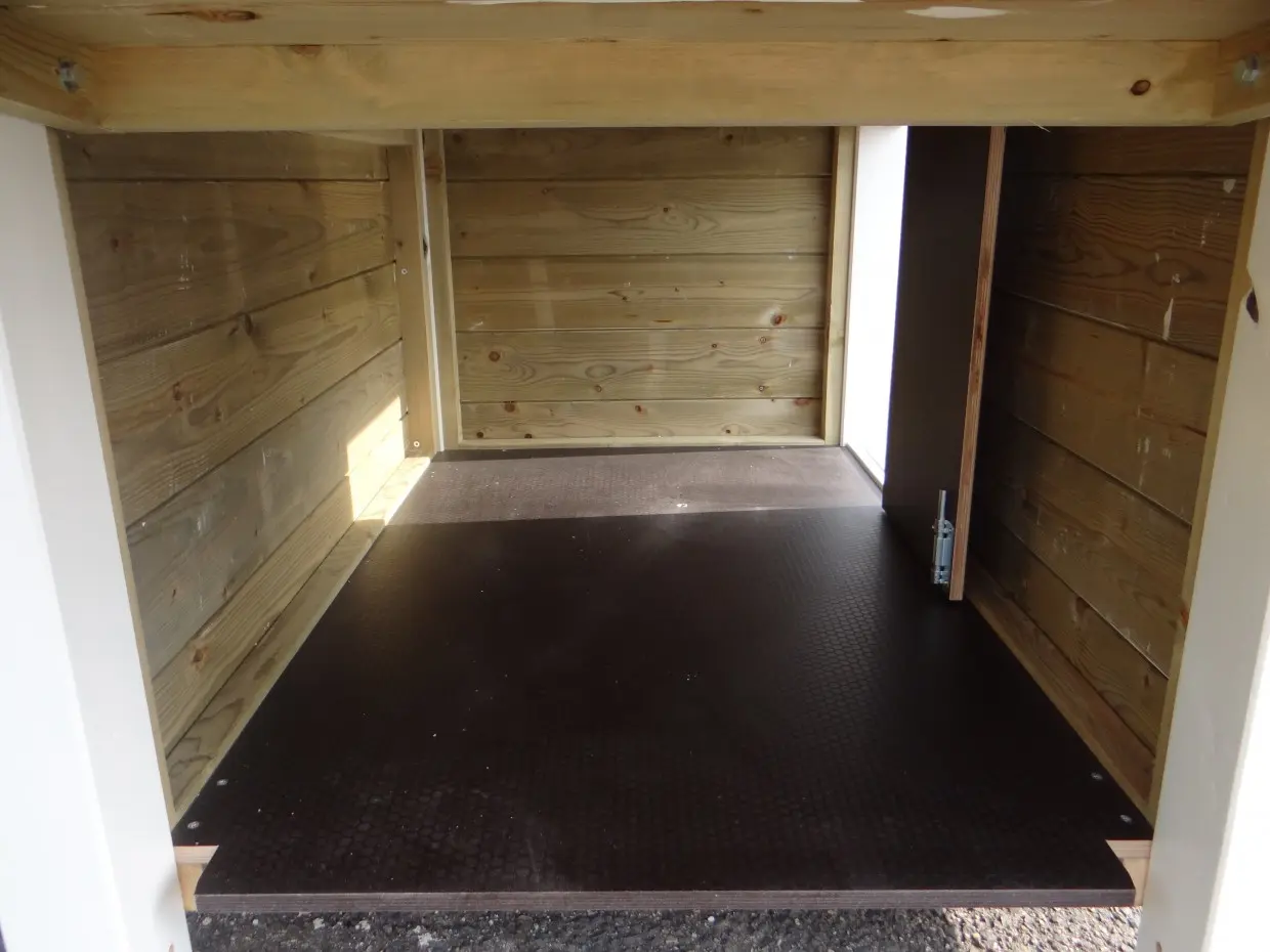 - Die Hütte ist mit einer Seitenklappe ausgestattet.