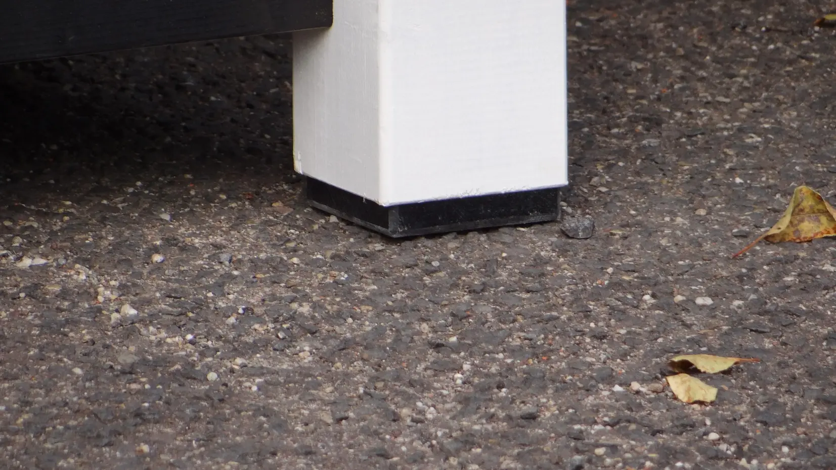 - Die Hundehütte hat schwarze Kunststofffüße, die das Bewegen erleichtern und die Hütte vor Feuchtigkeit schützen