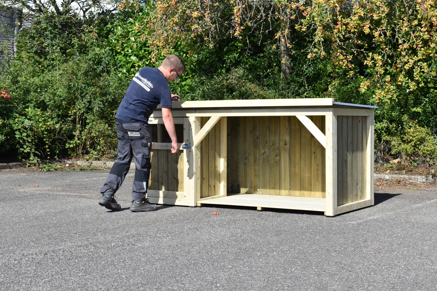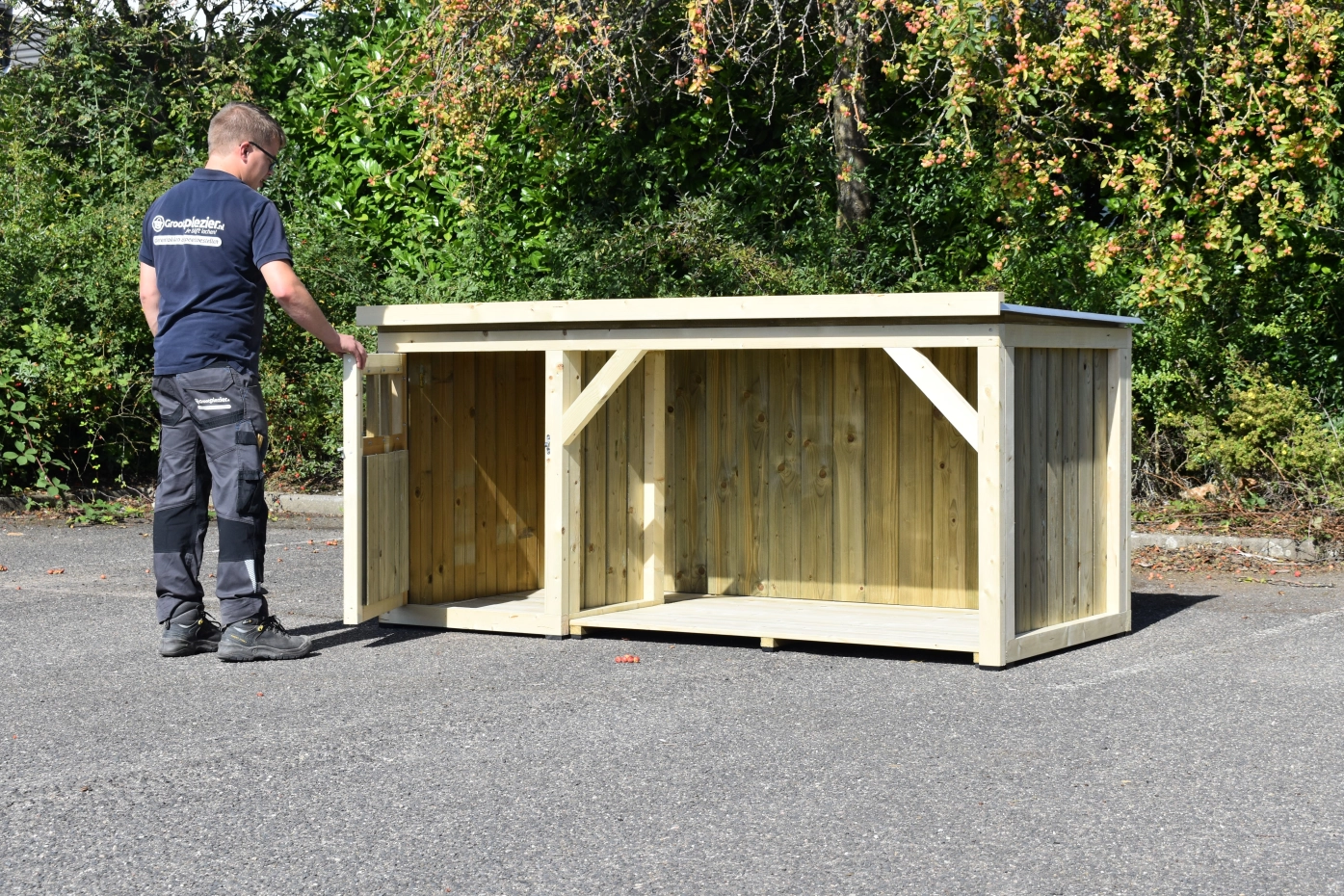 - Die Holzpaneele sind mit 18 mm dicken konservierten Nut- und Federbrettern ausgerüstet.