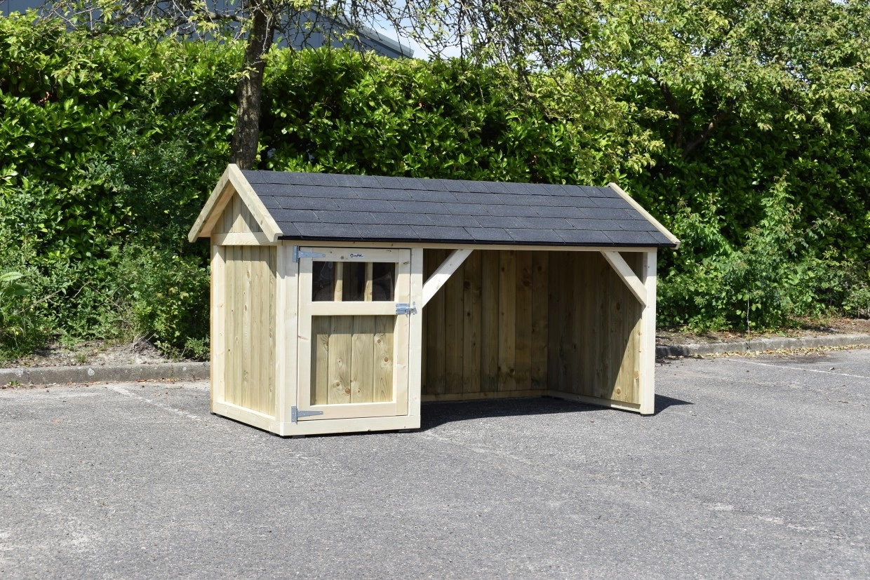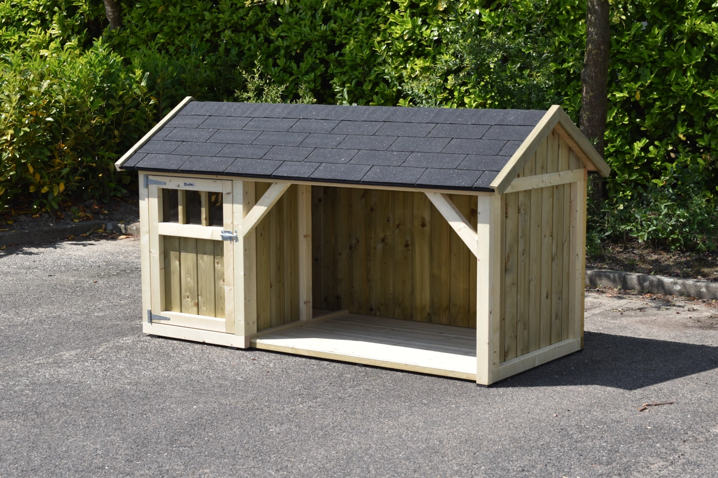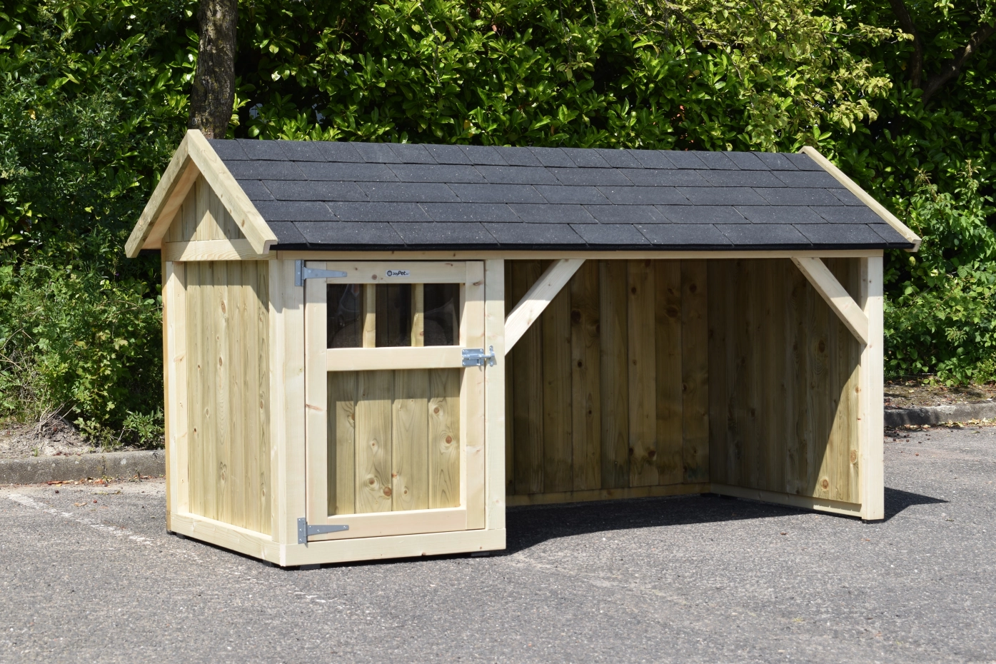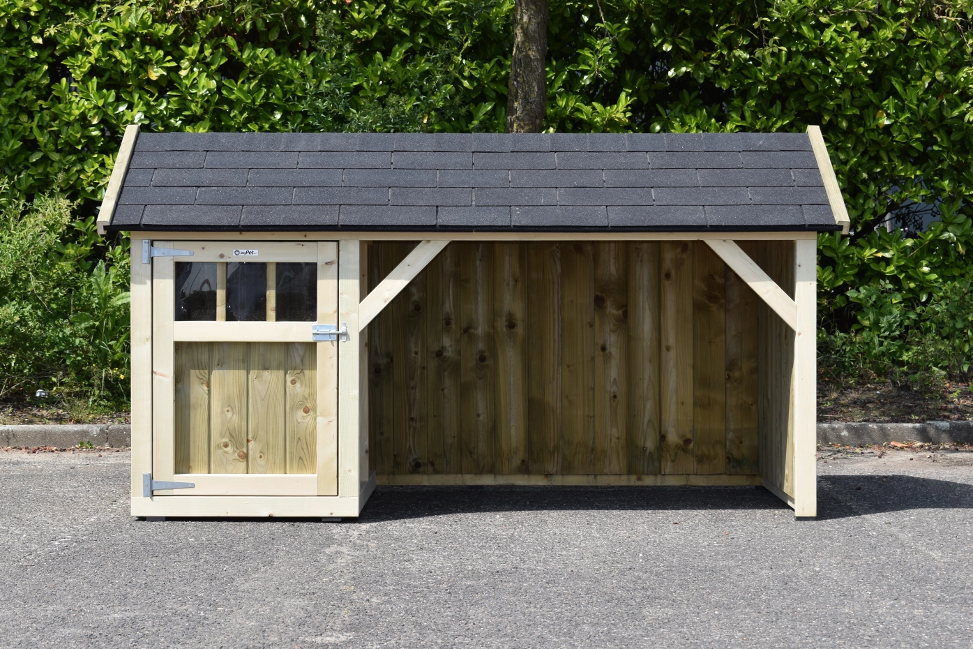 Hundehütte Isa 1 hat ein überdeckte Veranda. Der Hütte ist geeignet für (mittel)große Hunden. Der Schlafraum hat ein Holzboden und ein große Tür. Die Veranda bietet Ihre Hund einen geschützten Platz. Sie können auch ein Boden für den Veranda mitbestellen. Wir herstellen die Hütte aus imprägniertes Fichtenholz, so es ist wartungsfrei.