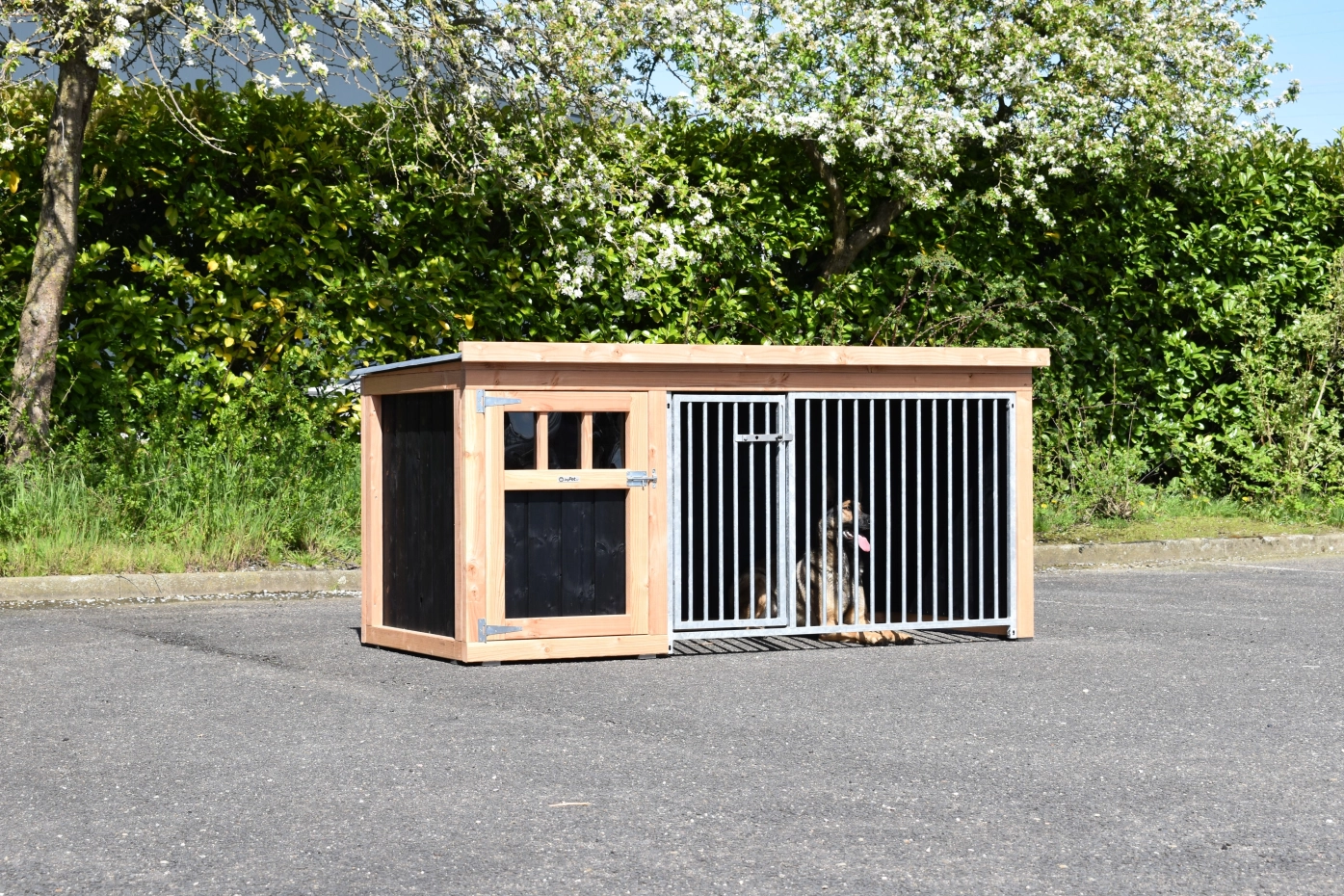 Hundezwinger Isabelle 1 ist geeignet für (mittel)große Hunden. Der Schlafraum hat ein dichte Holzboden und ist ausgestattet mit ein große Tür. Der Isabelle 1 ist ausgestattet mit viele dichte Wanne und ein Gitterpaneel. Es bietet ein schöne Platz für Ihre Hund.