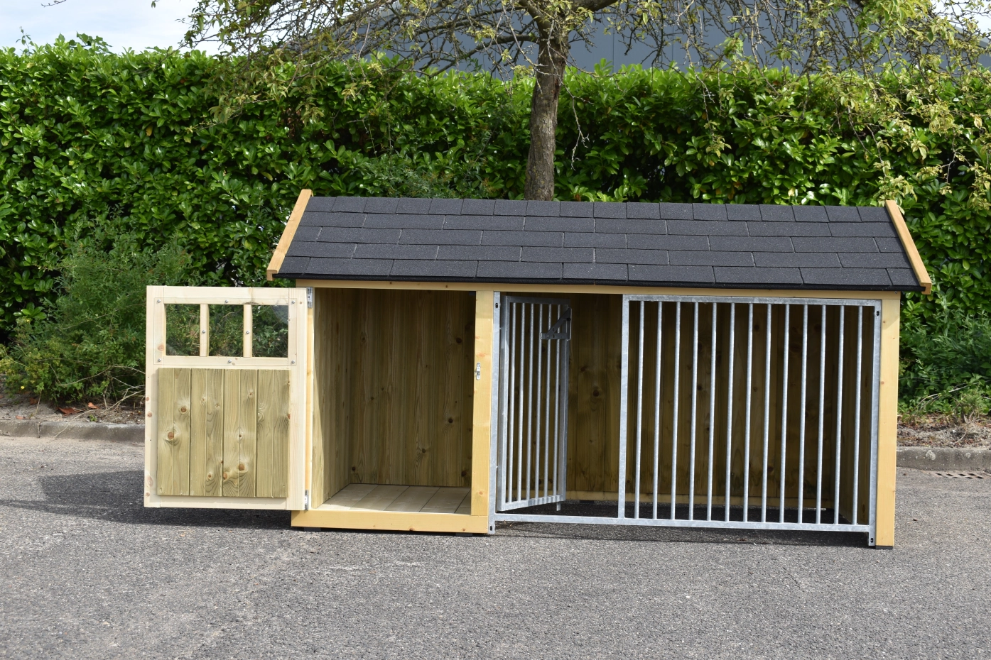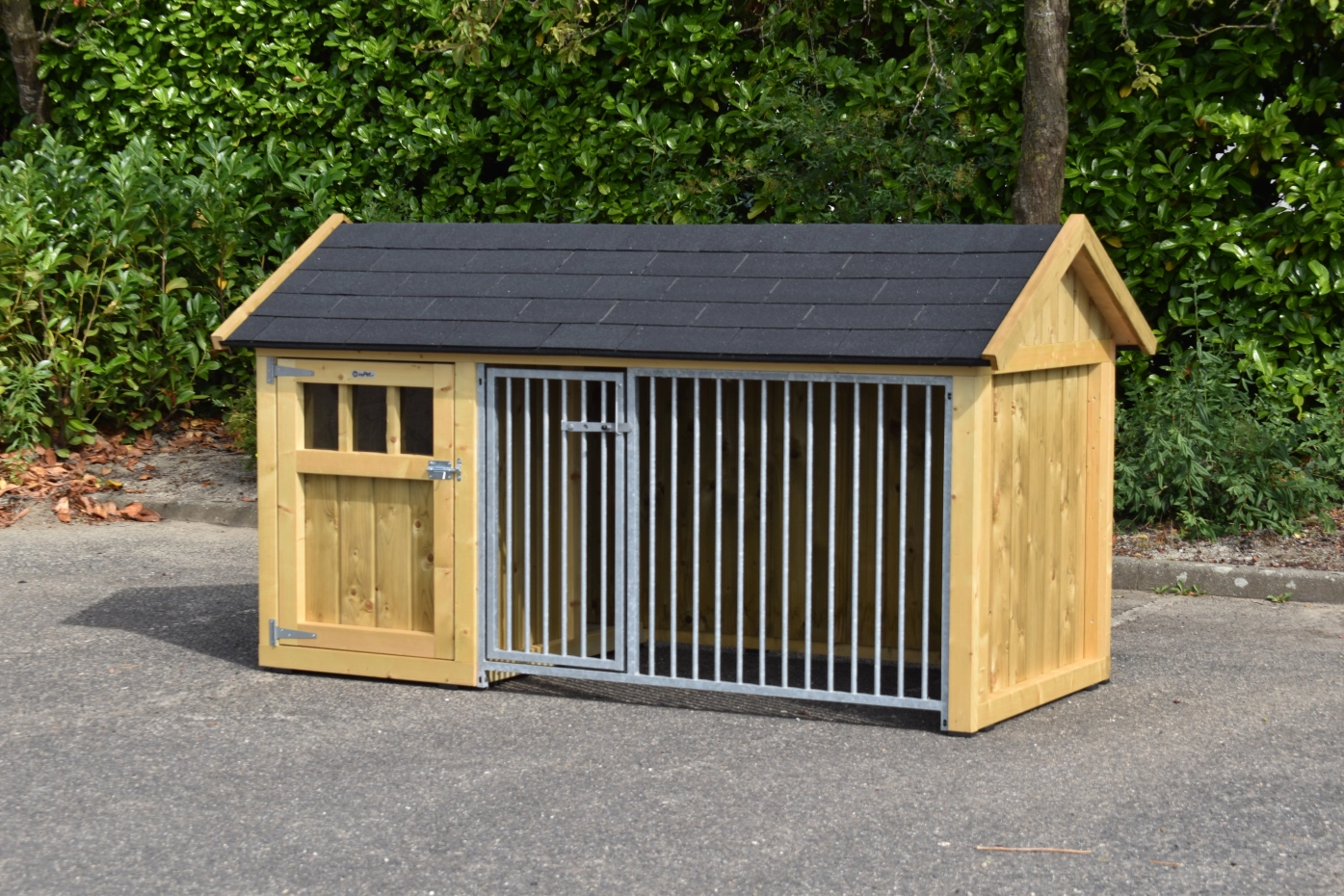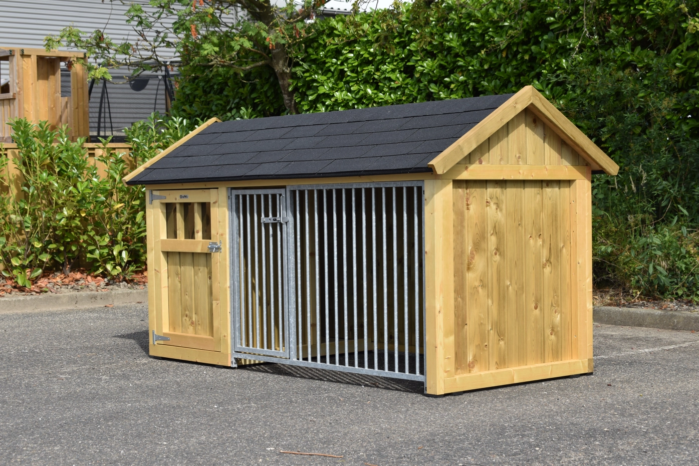 Hundezwinger Isabelle 1 ist geeignet für (mittel)große Hunden. Der Schlafraum hat ein dichte Holzboden und ist ausgestattet mit ein große Tür. Der Isabelle 1 ist ausgestattet mit viele dichte Wande und ein Gitterpaneel. Es bietet ein schöne Platz für Ihre Hund.