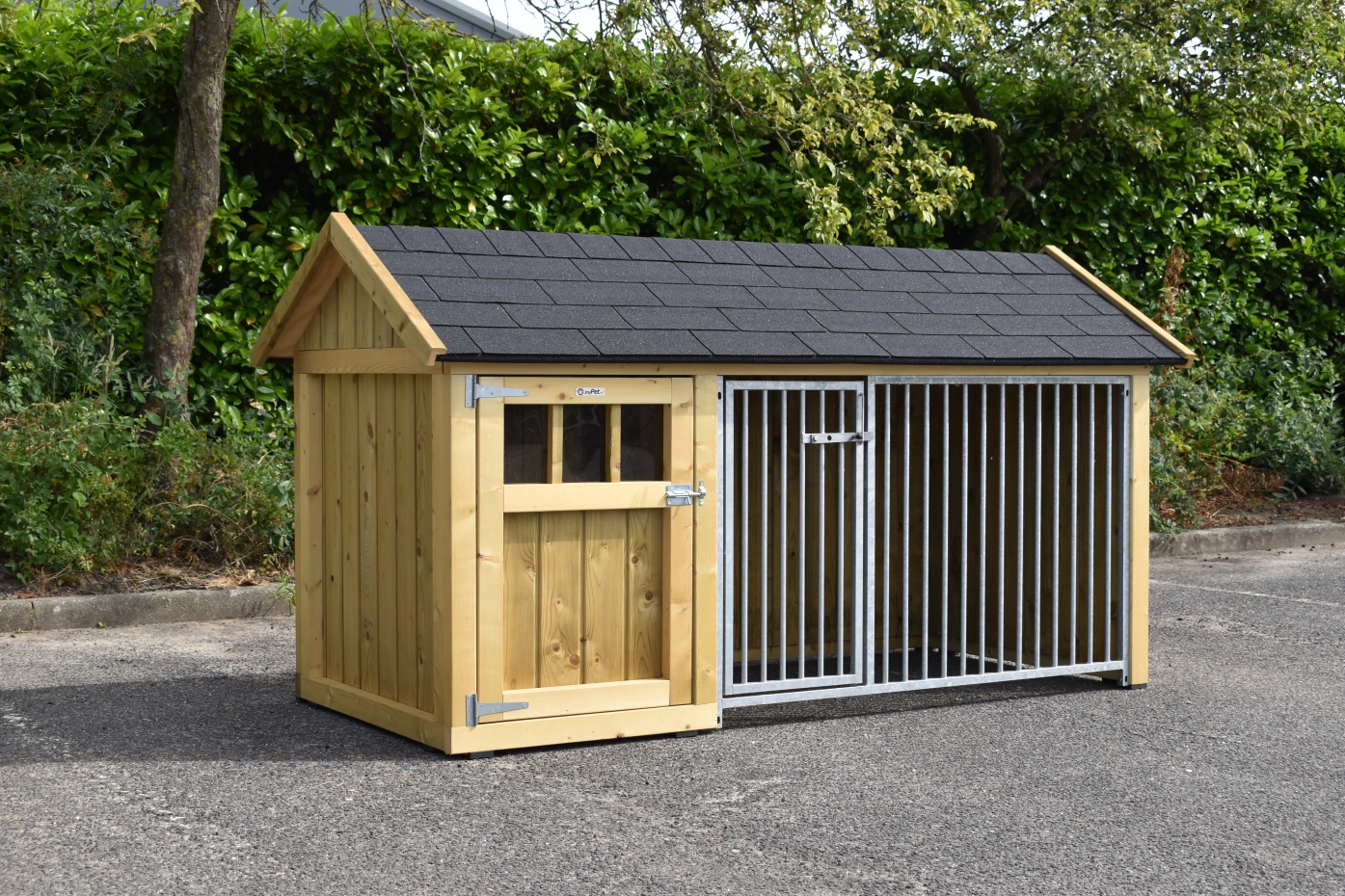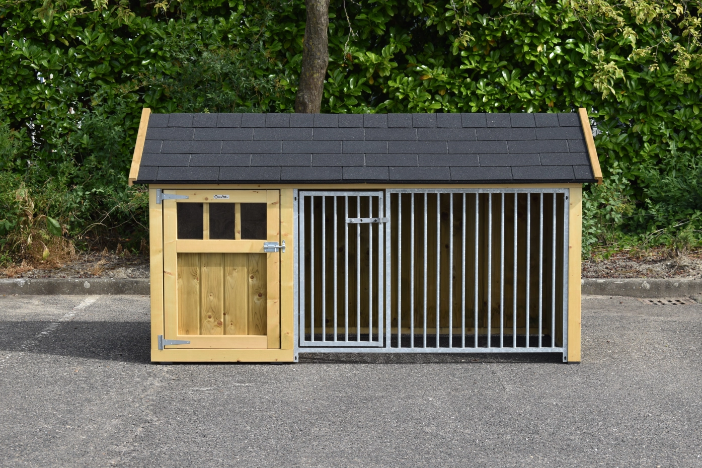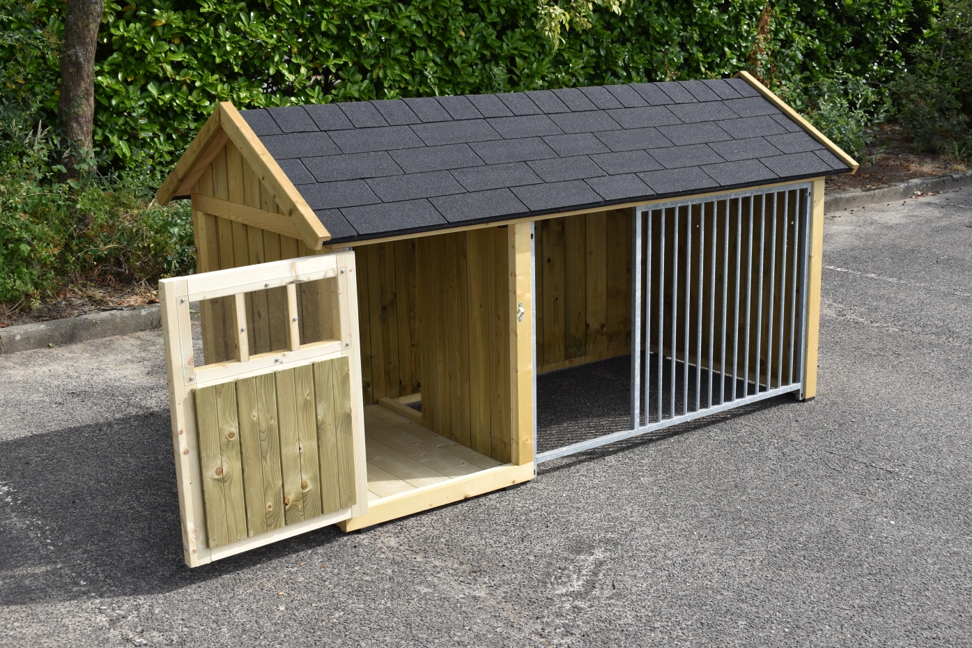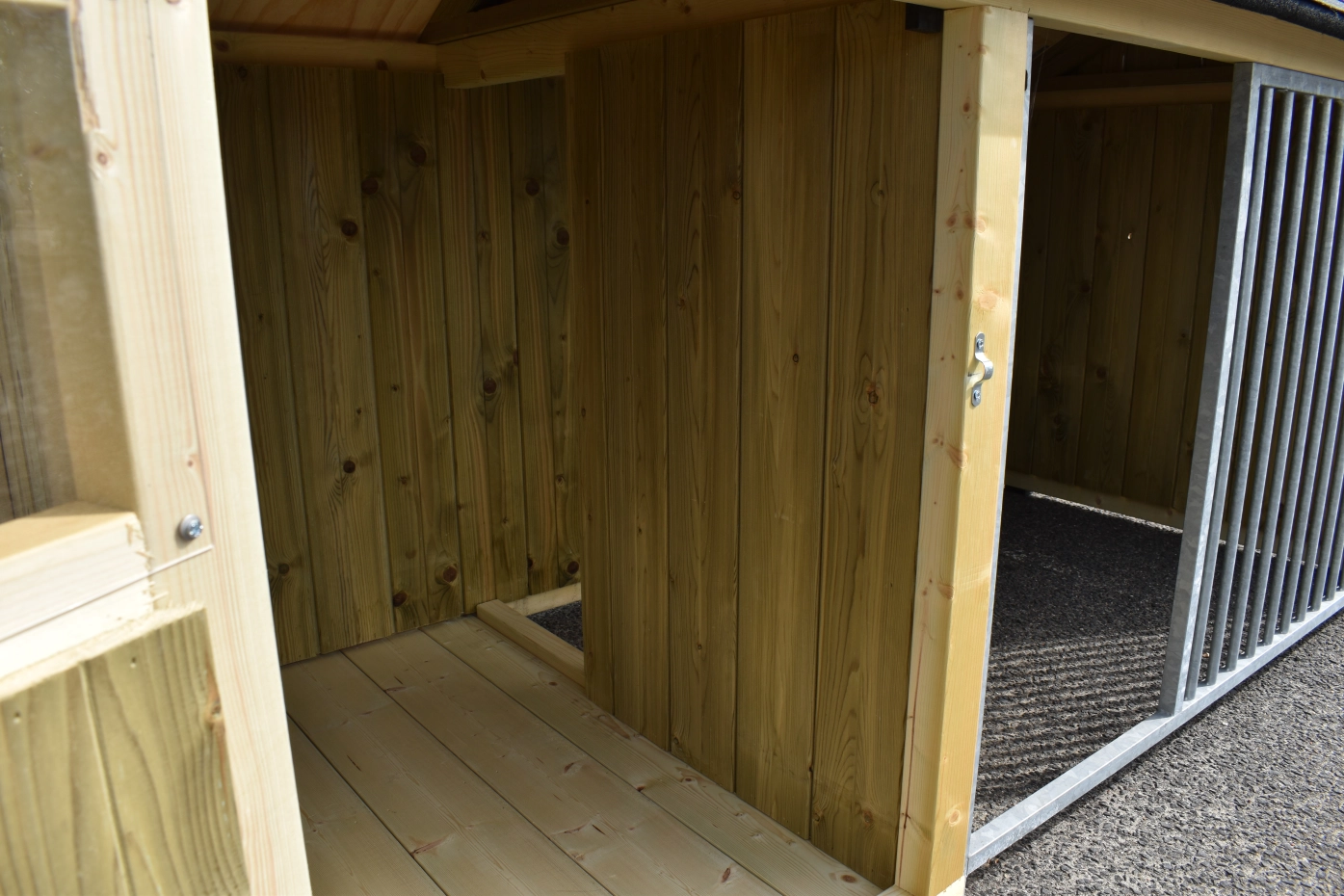 Hundezwinger Isabelle 1 ist geeignet für (mittel)große Hunden. Der Schlafraum hat ein dichte Holzboden und ist ausgestattet mit ein große Tür. Der Isabelle 1 ist ausgestattet mit viele dichte Wande und ein Gitterpaneel. Es bietet ein schöne Platz für Ihre Hund.