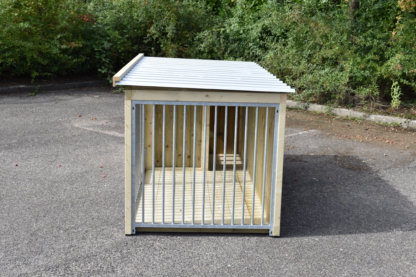 - Diese Version 2 ist versehen mit 2 Zwingerpaneele: 1 an der Vorseite (mit Tür) und 1 an der Seite.