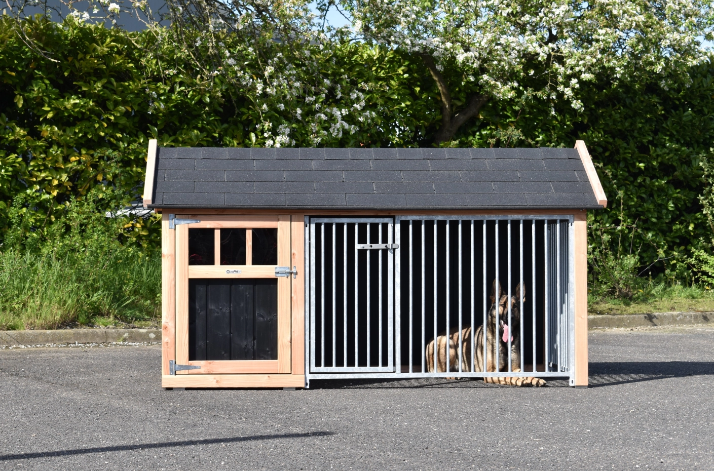 Hundezwinger Isabelle 2 ist geeignet für (mittel)große Hunden. Der Schlafraum hat ein dichte Holzboden und ist ausgestattet mit ein große Tür. Der Isabelle 2 ist ausgestattet mit ein dichte Wande und zwei Gitterpaneele. Es bietet ein schöne Platz für Ihre Hund.