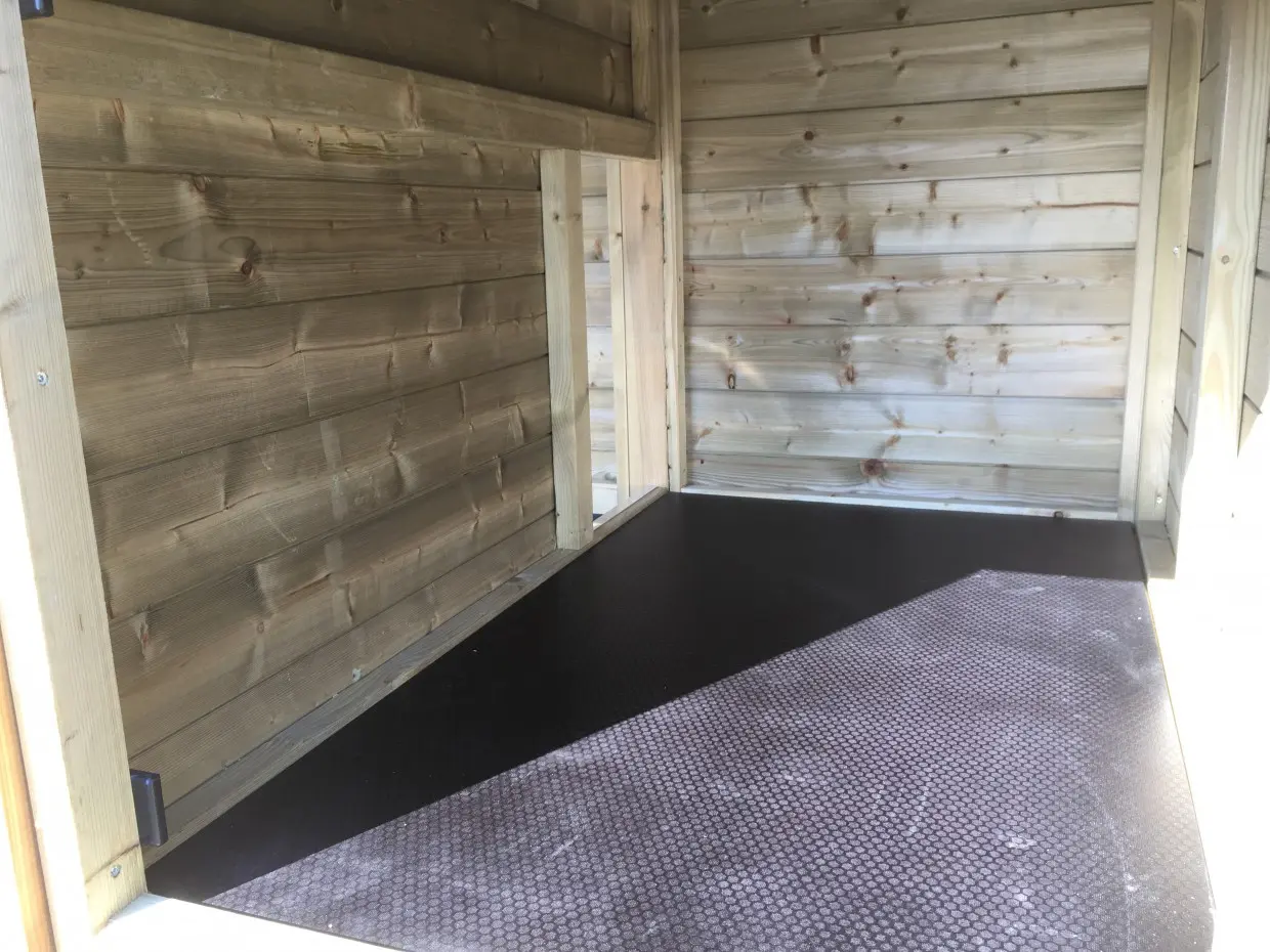 - Ungeschützte Holzkanten können mit Aluminiumstreifen versehen werden, um das Nagen zu verhindern. Sie können dies per E-Mail anfordern. Der Preis beträgt € 9,00 pro Meter (inkl. Montage).