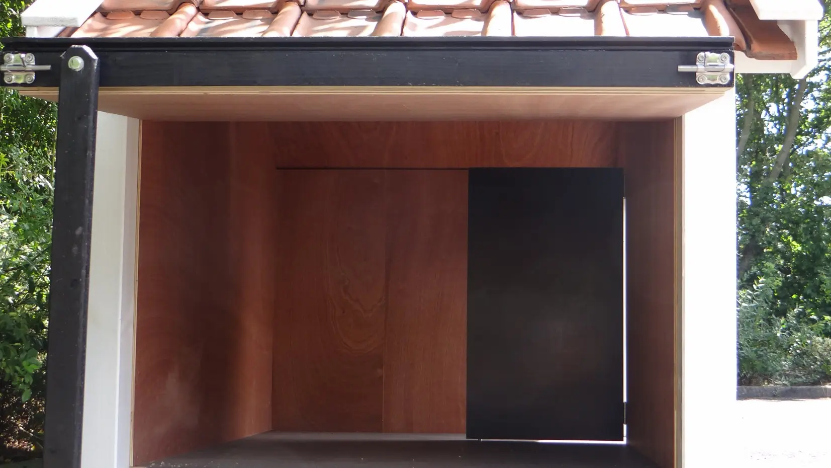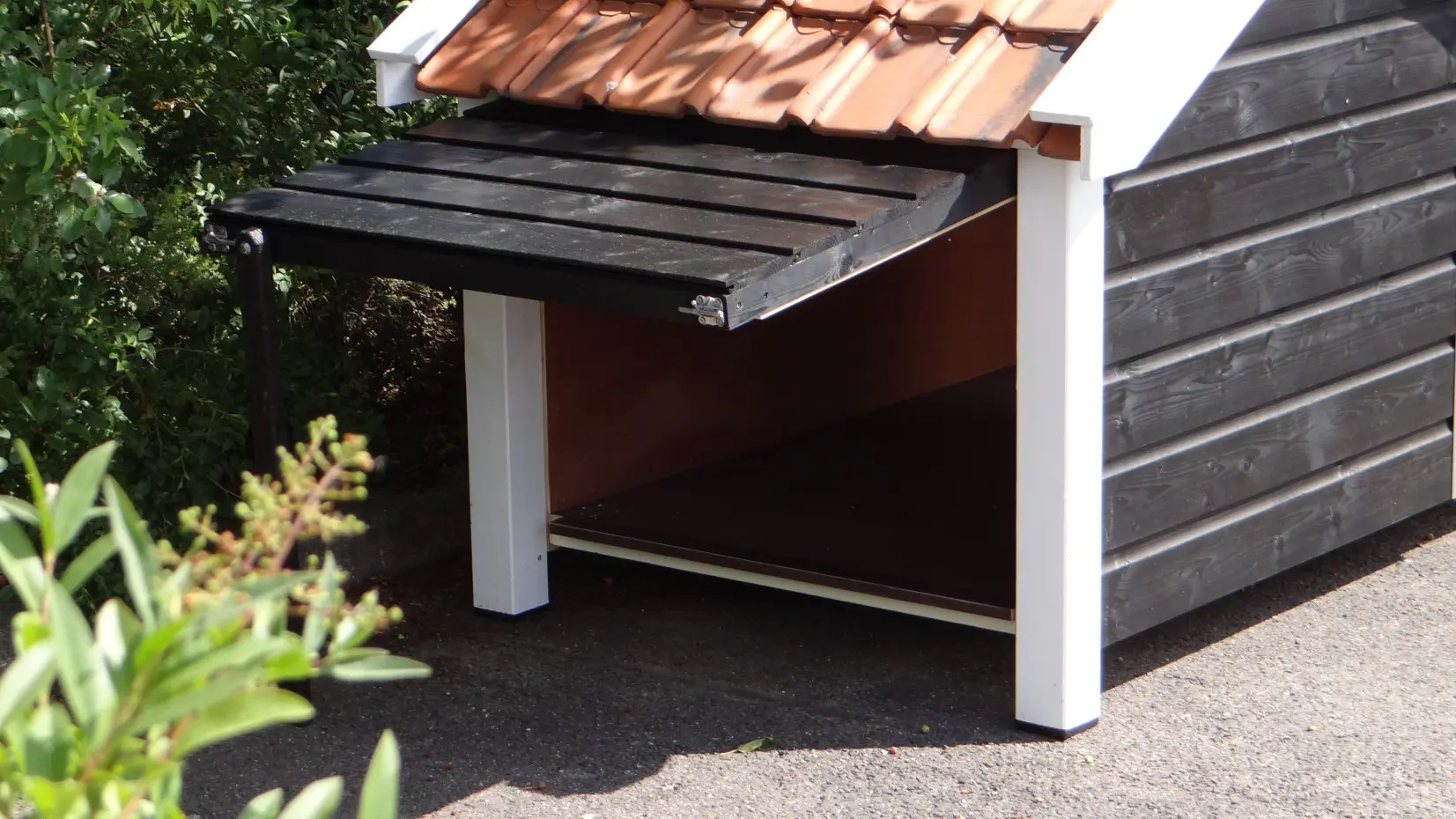 - Die Hütte ist mit einer Seitenklappe ausgestattet.