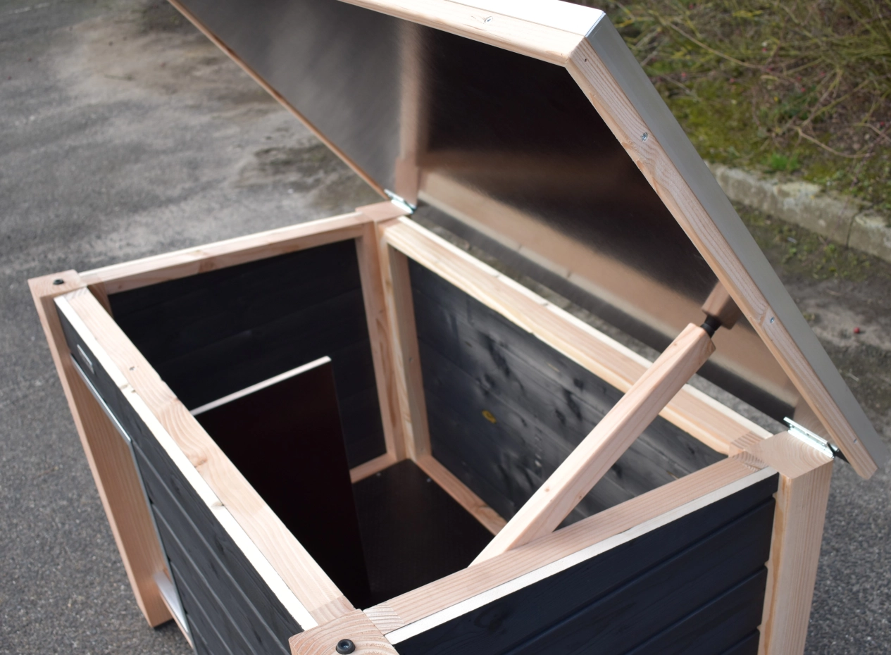 - Ungeschützte Holzkanten können mit Aluminiumstreifen versehen werden, um das Nagen zu verhindern. Sie können dies per E-Mail anfordern. Der Preis beträgt € 9,00 pro Meter (inkl. Montage).