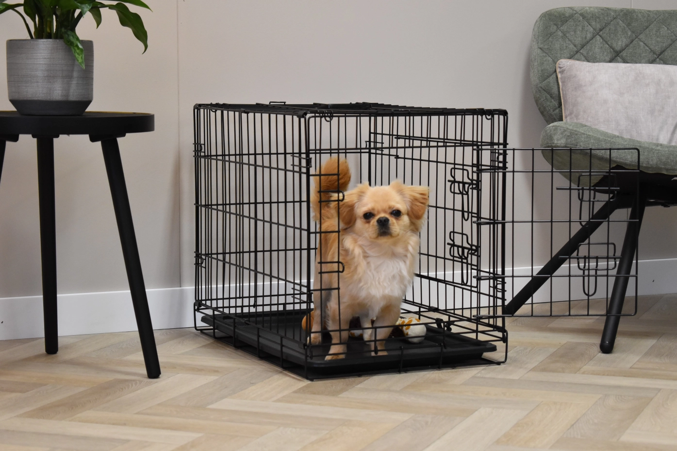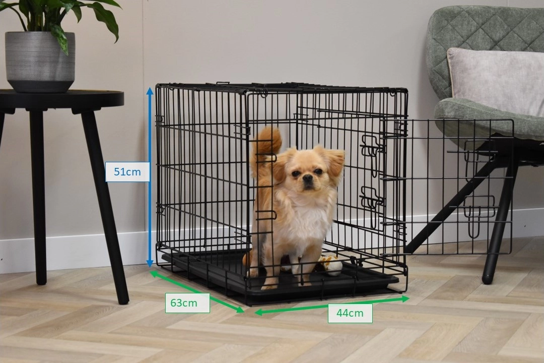 Der Hundekäfig Profit hat Abmessungen von 63x44x51cm. Der Käfig ist ausgestattet mit 2 Türen mit Schlosse. Der faltbare Käfig hat ein Kunststoff Schublade. Dadurch ist unsere Hundekäfig einfach zu reinigen. Geeignet als Käfig für kleinere Hunde wie Boomer, Cavalier King Charles Spaniel, Jack Russel, Malteser, Pekinese, Dackel, West Highland White Terrier, Yorkshire Terrier und Zwergspitz. Der schwarze Hundekäfig Profit ist verfügbar in 3 verschiedene Größe: [63cm] / 92cm / 122cm.