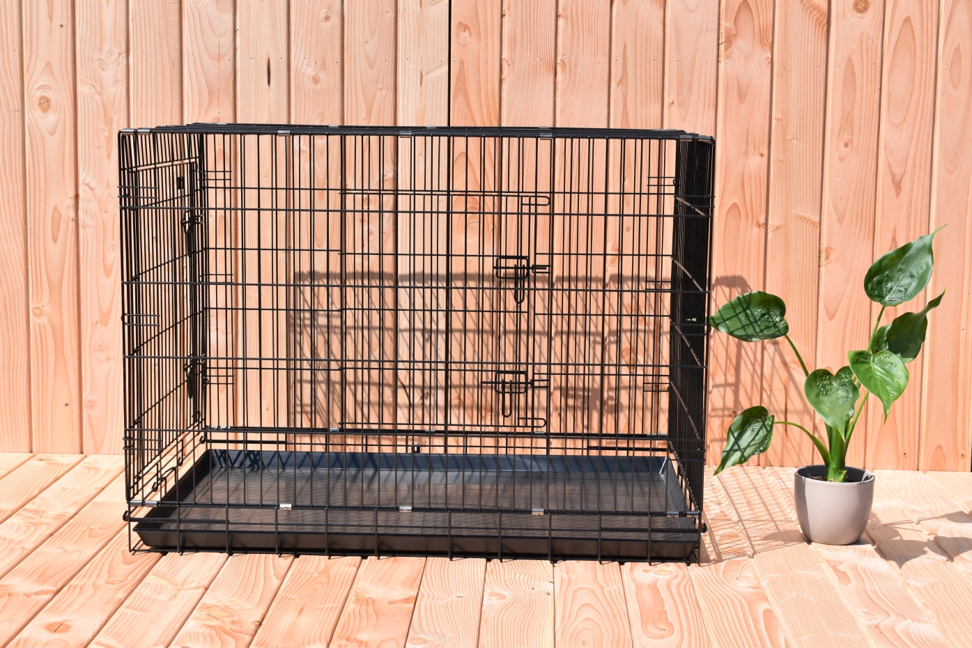 - Dieser Hundekäfig verfügt über eine stabile, herausziehbare Kunststofflade