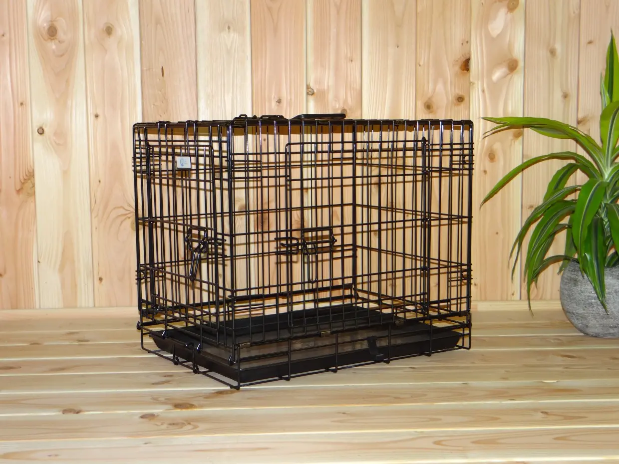 Stabiler, schwarzer Hundekäfig mit 3 Türen. Die Maße dieses Hundekäfigs betragen 63x45x52cm (LxBxH). Dieser Drahtkäfig mit robusten, dickwandigen, schwarz pulverbeschichteten Stäben verfügt über 3 stabile Türen mit speziellen Schiebeverschlüssen. Ein praktischer, faltbarer Hundekäfig, der mit gummierten Anti-Rutsch-Füßen und einer herausnehmbaren Kunststoffschale ausgestattet ist. Geeignet als Käfig für kleinere Hunde wie Boomer, Cavalier King Charles Spaniel, Zwergspitz, Malteser, Pekinese, Dackel, West Highland White Terrier und Yorkshire Terrier. Unser robuster, schwarzer Hundekäfig ist in 7 verschiedenen Größen erhältlich: 48cm / [63cm] / 78cm / 93cm / 109cm / 124cm / 136cm.