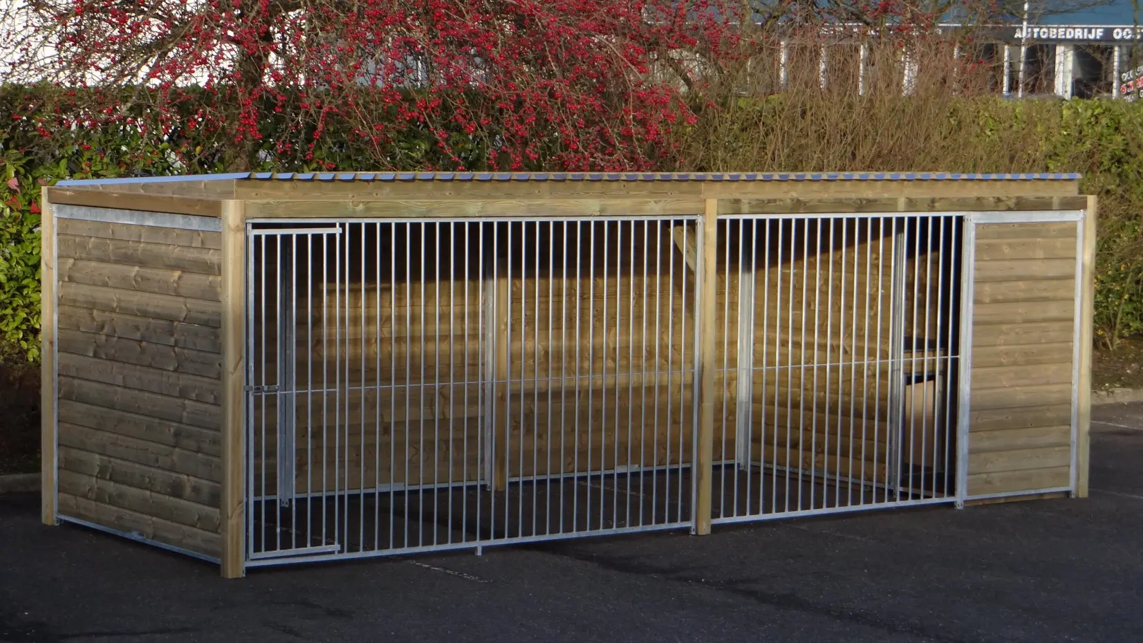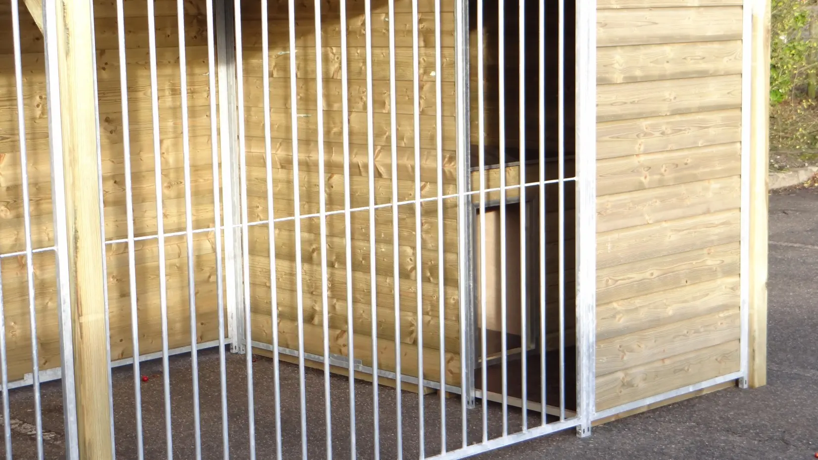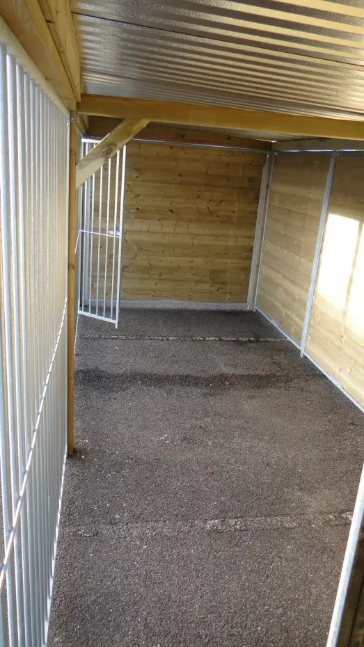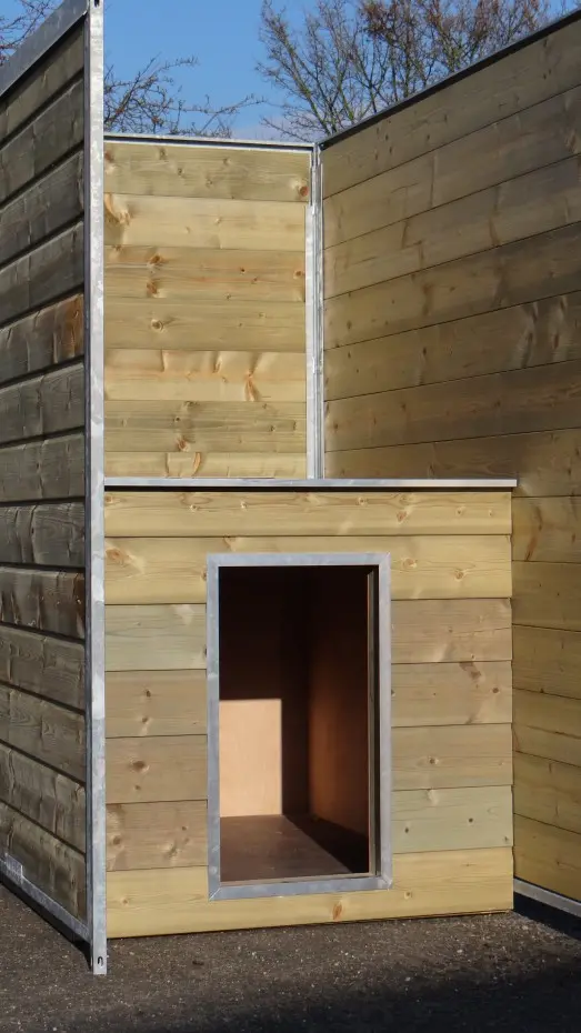 - * Der Zwinger ist mit einem luxuriöseren Dachsystem ausgestattet, so dass vorne und an den Seiten ein Überhang entsteht.
