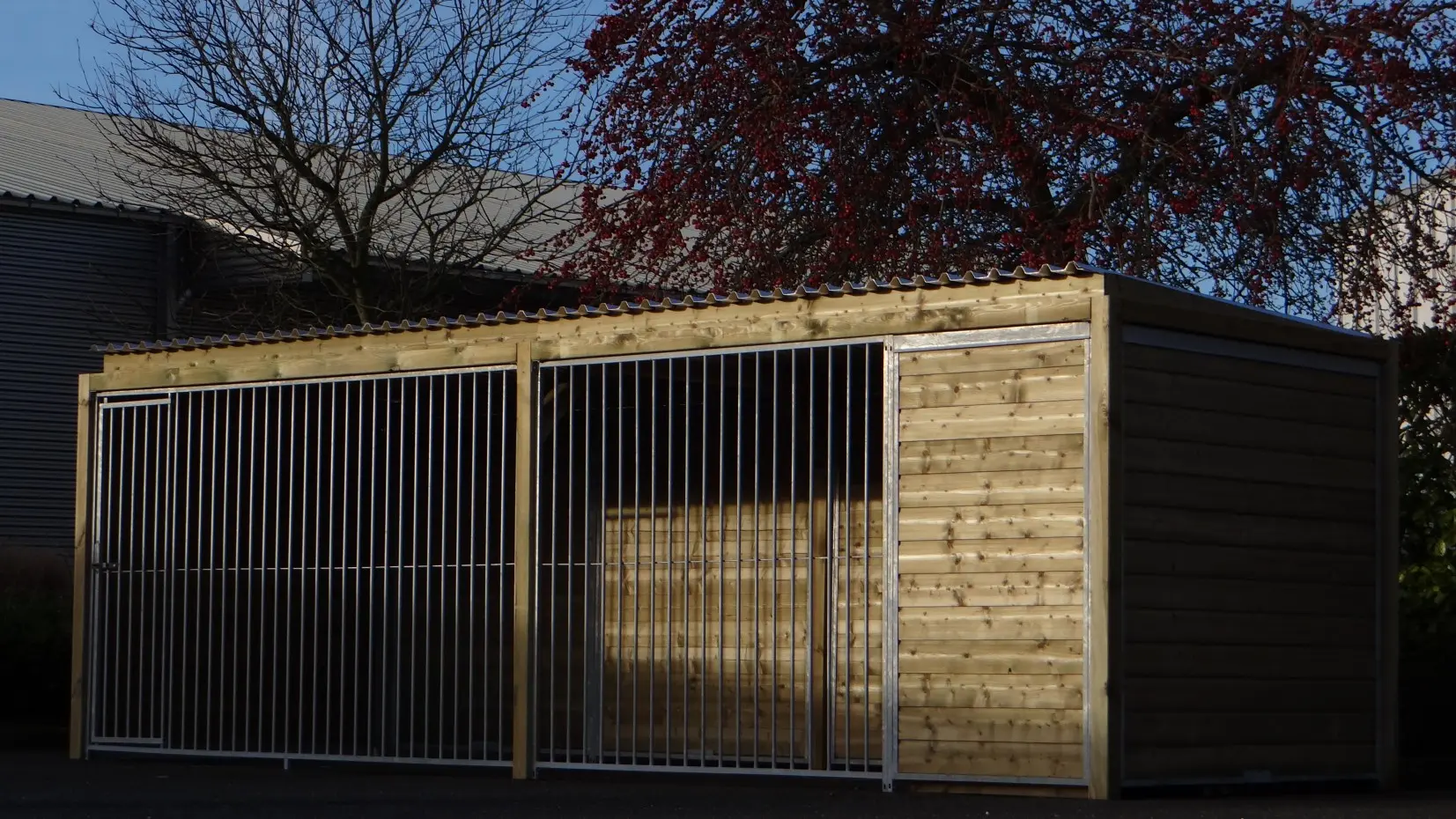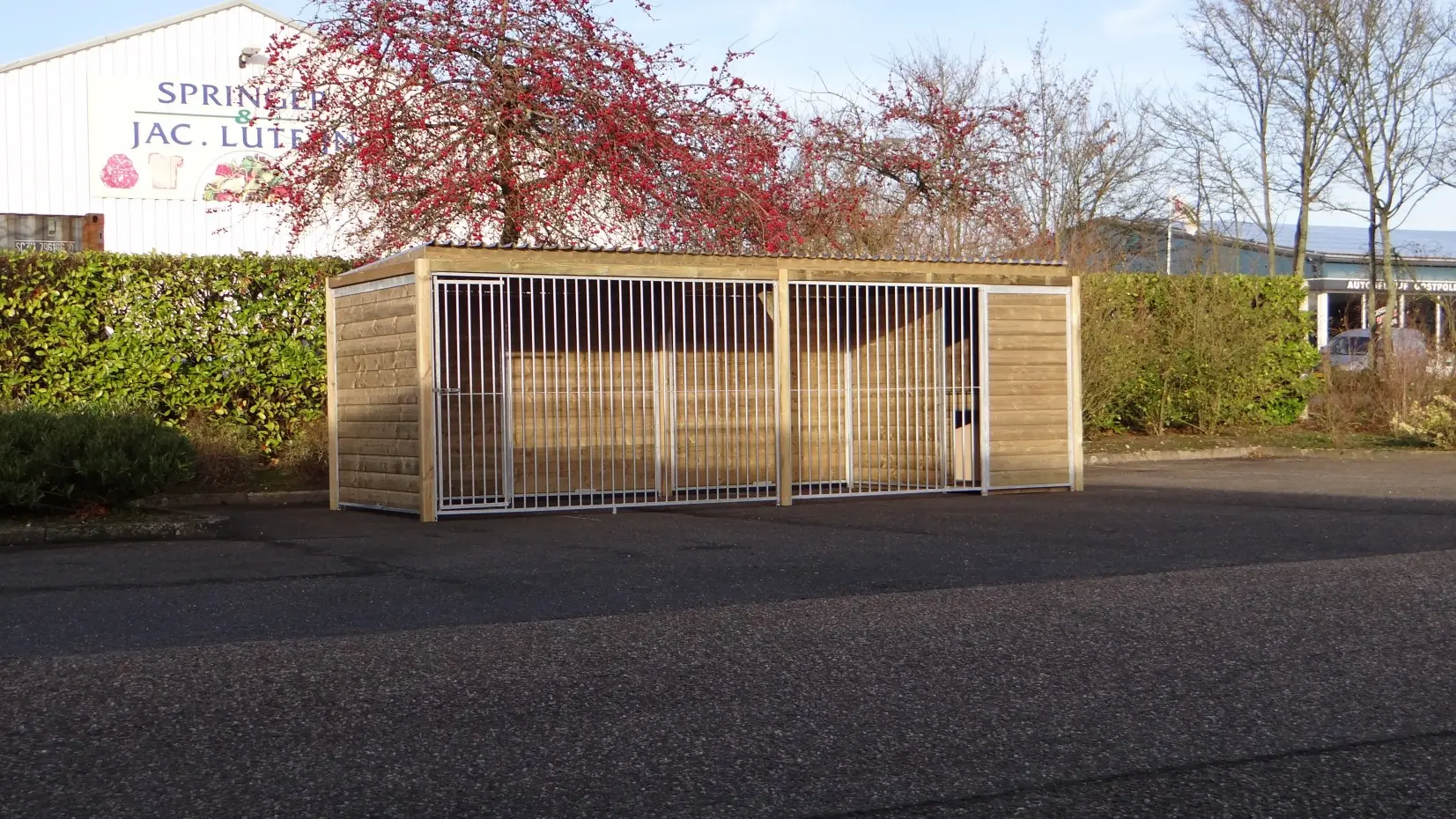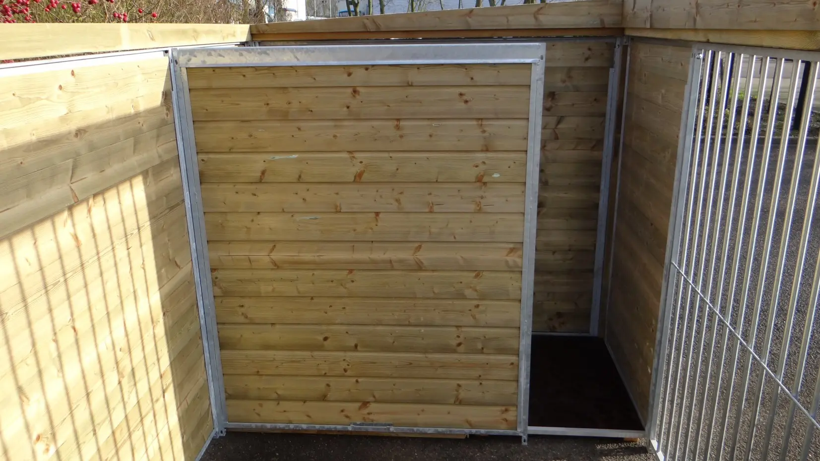 - * Der Zwinger ist mit einem luxuriöseren Dachsystem ausgestattet, so dass vorne und an den Seiten ein Überhang entsteht.