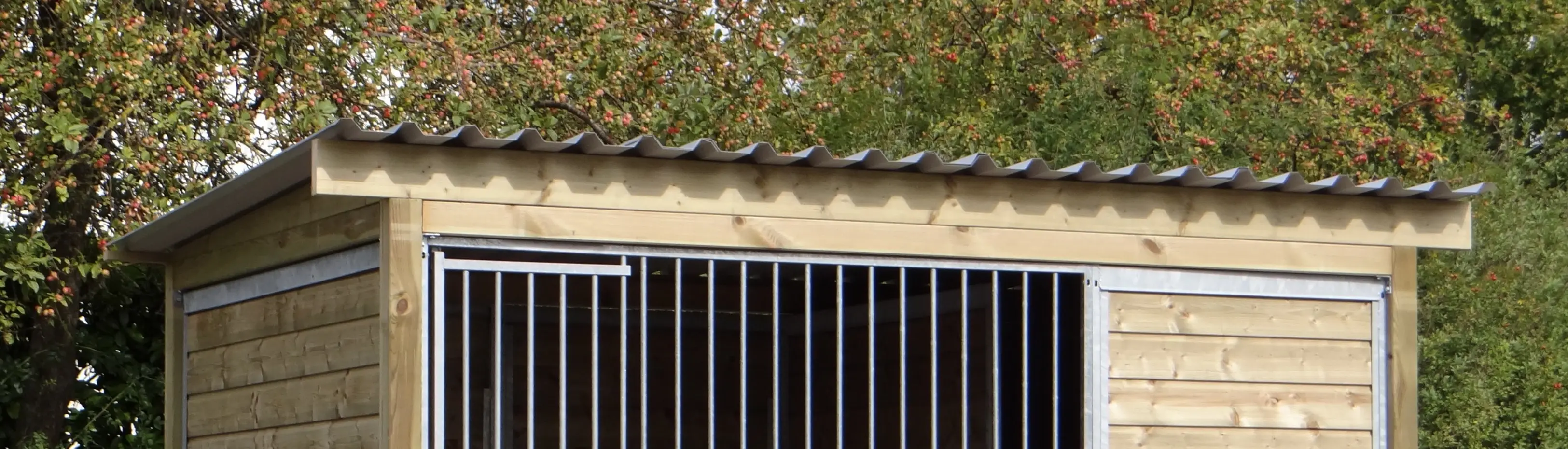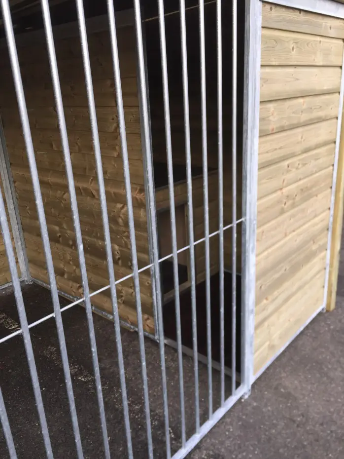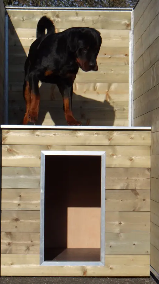 - * Der Zwinger ist mit einem luxuriöseren Dachsystem ausgestattet, so dass vorne und an den Seiten ein Überhang entsteht.