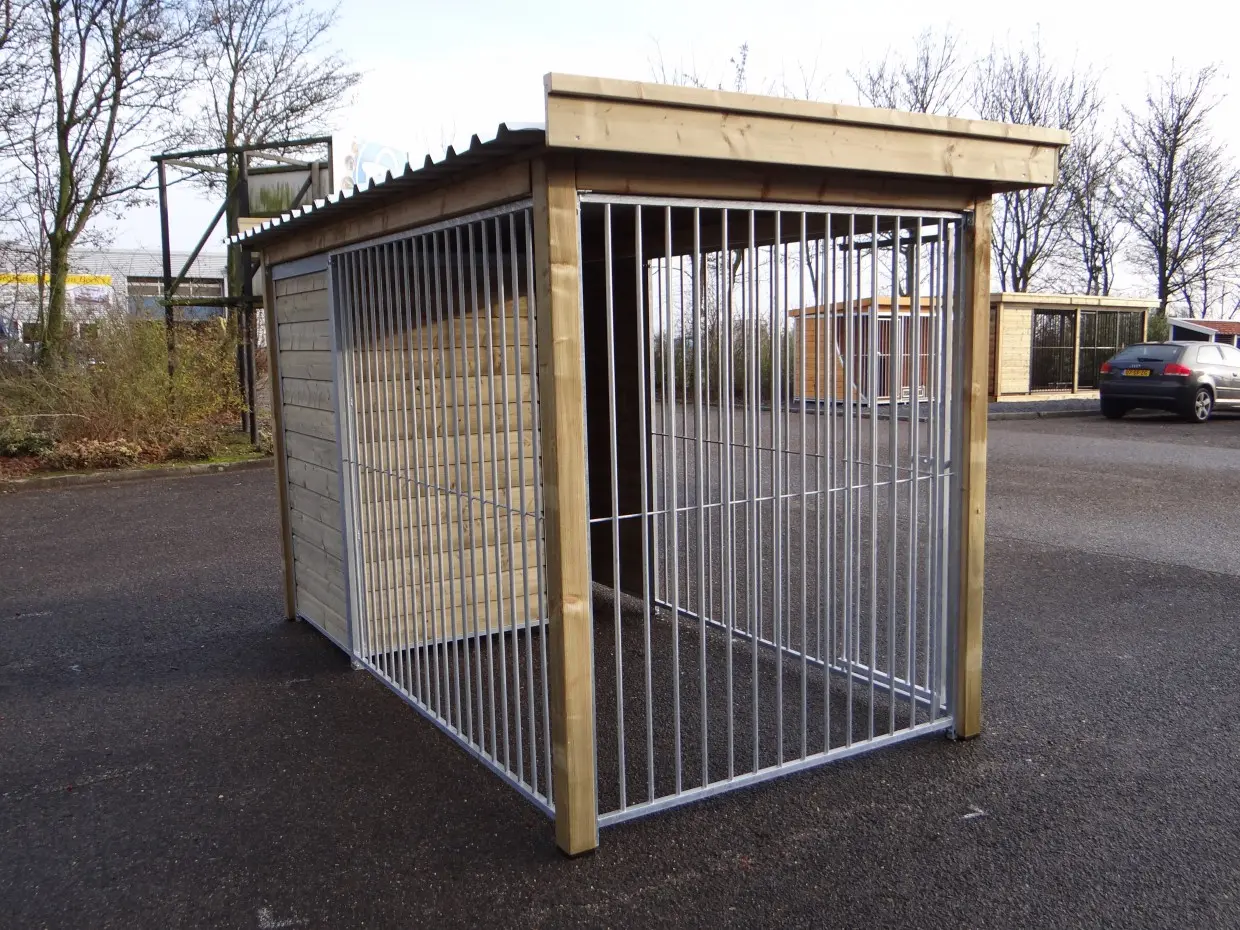 Dieser Hundezwinger ist einen schönen aber auch praktischen Hundezwinger. Das Holzrahmen sieht bestimmt sehr vernünftig aus und Ihren Hund ist wegen das Dach, Schutzteil und Rückwand aus Holz gut geschützt. Die Zwingerpaneele sind verzinkt und von stärken Qualität.
